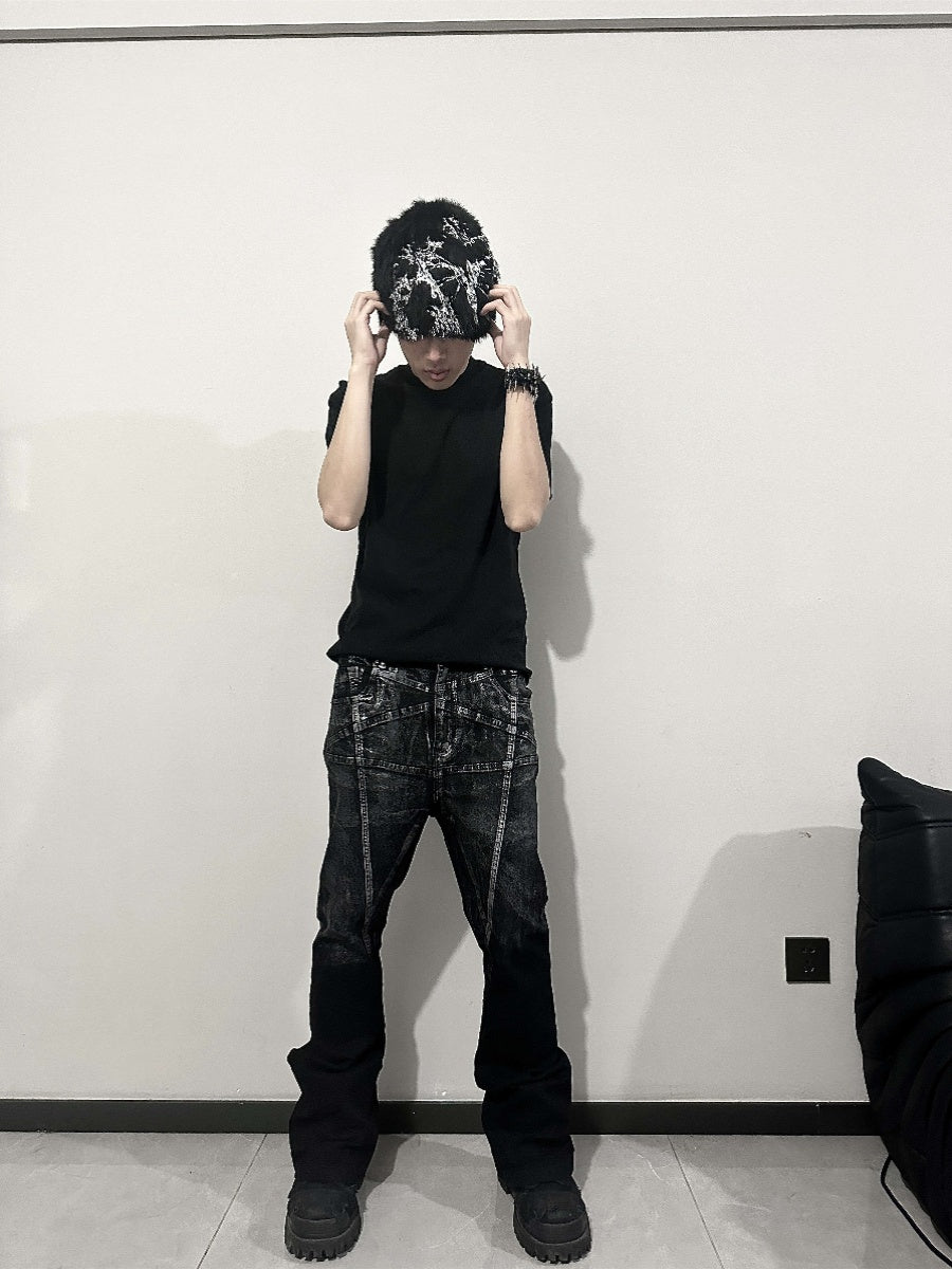 Gradient Paint Deconstructed Flare Denim Jeans WN15744