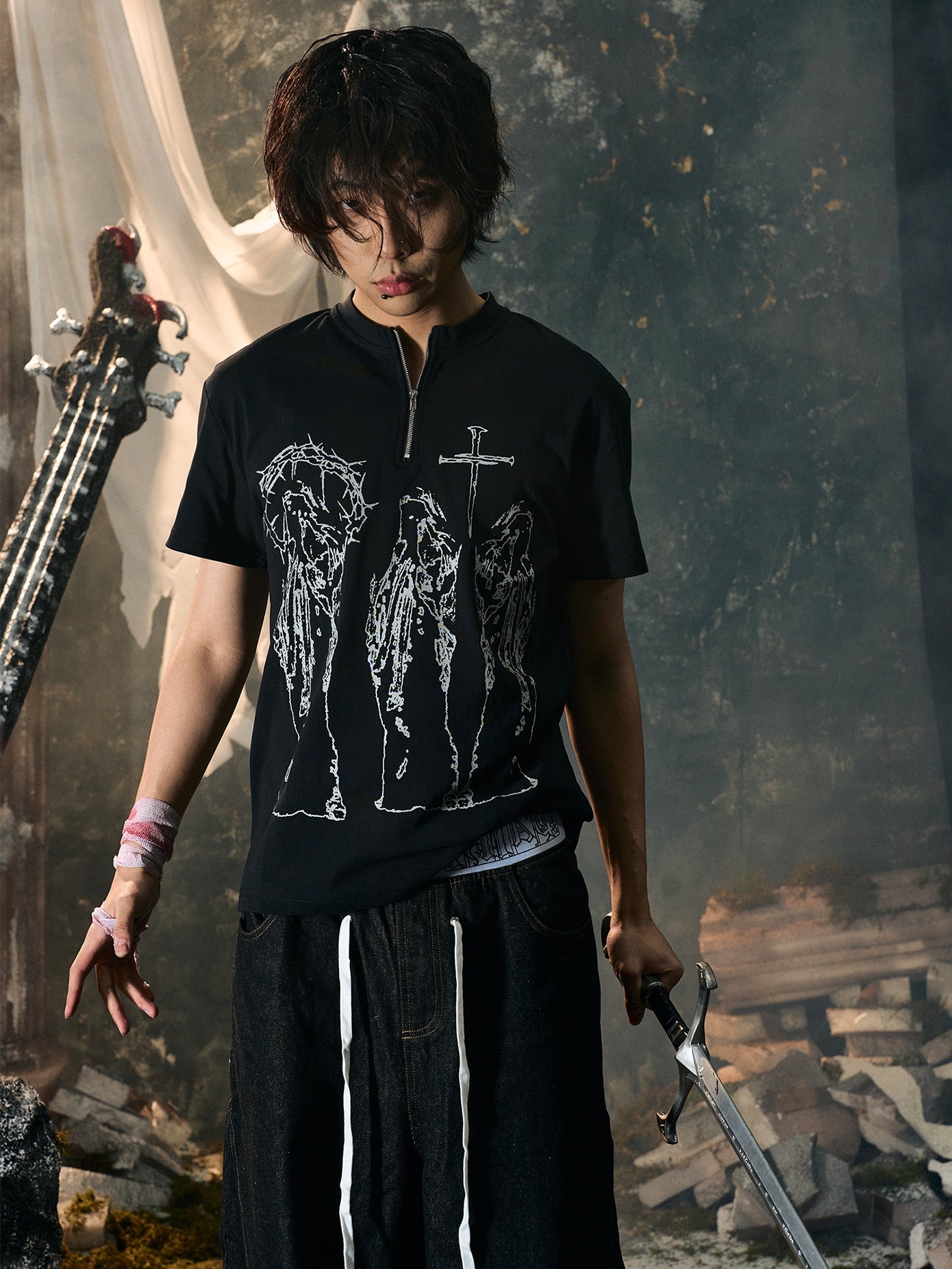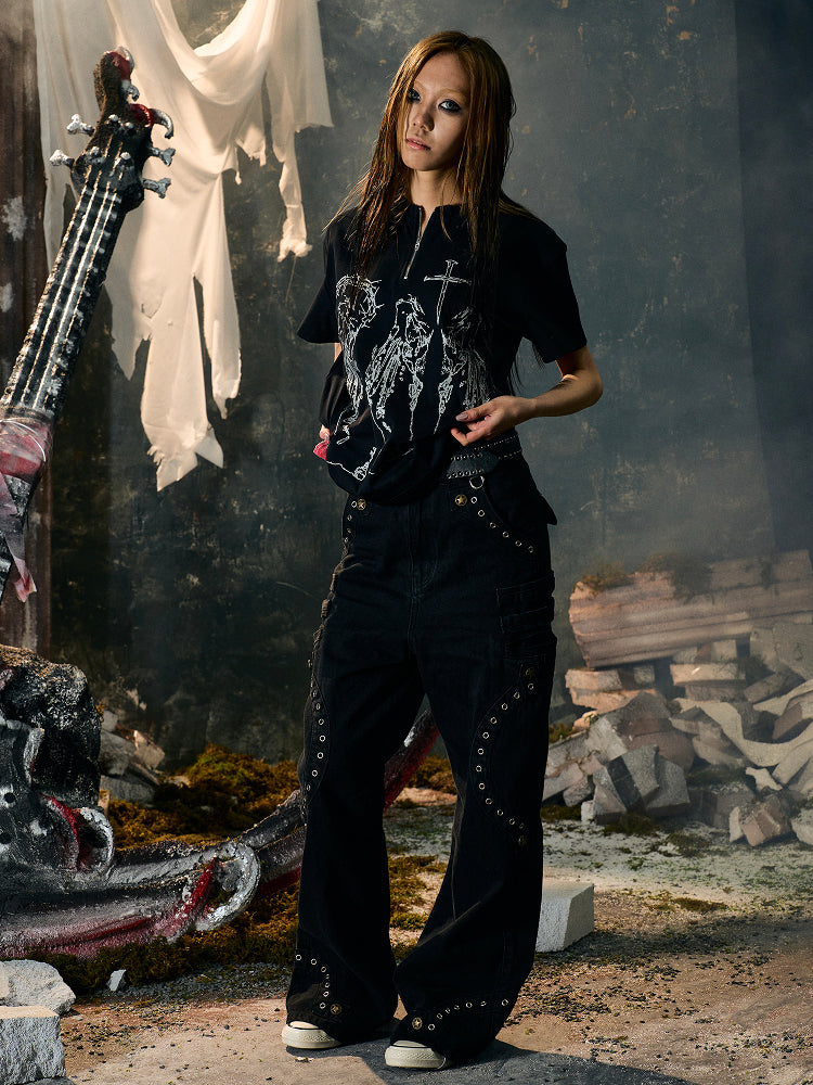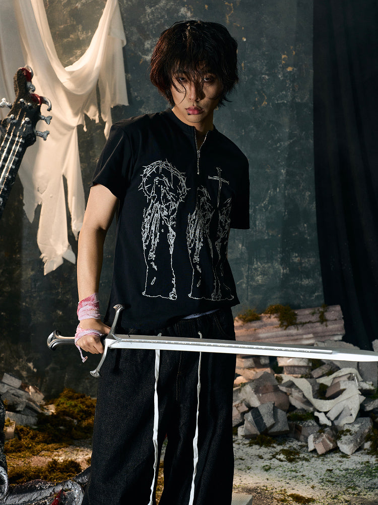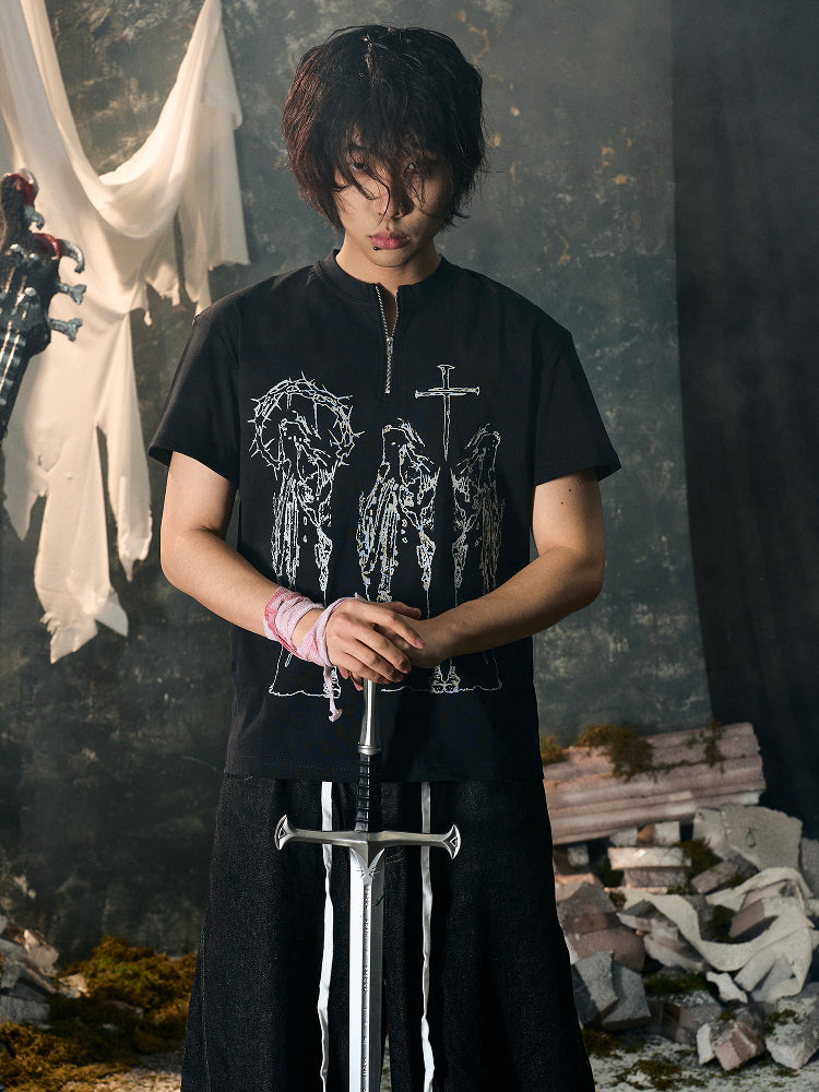 Butterfly Effect Cross Half Zip Short Sleeve T-Shirt WN15851