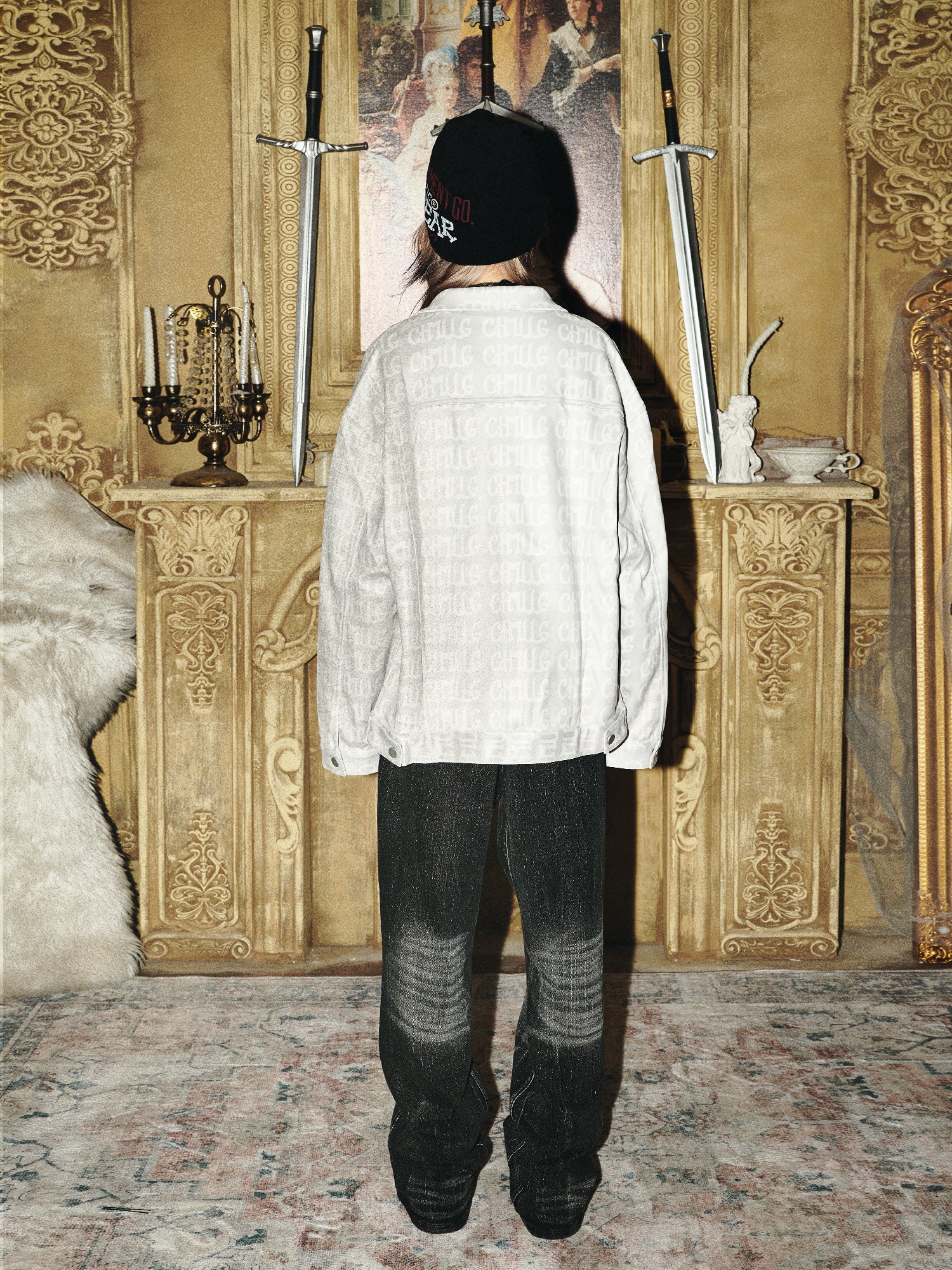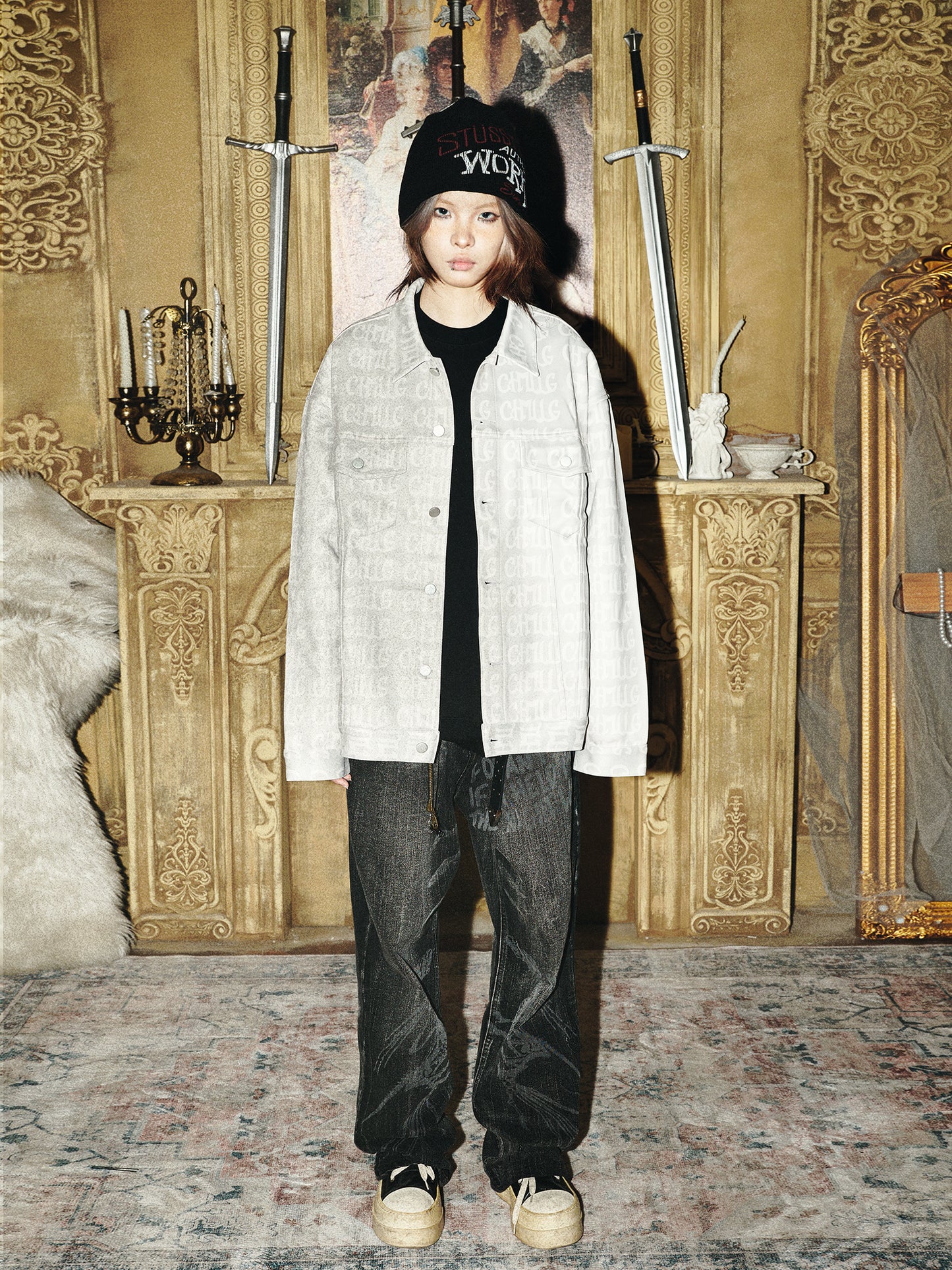 Suede All-Over Letter Print Oversize Jacket WN15870