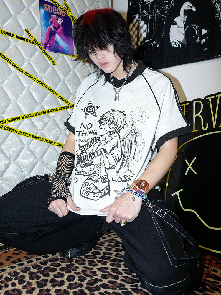 Illustration Bicolor Short Sleeve T-Shirt WN15904