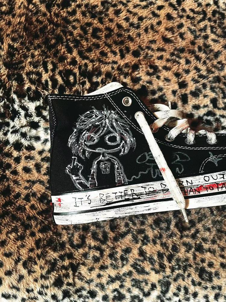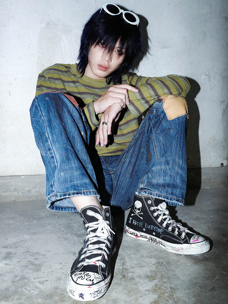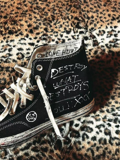 Hand-Drawn Washed High-Top Canvas Shoes WN15934