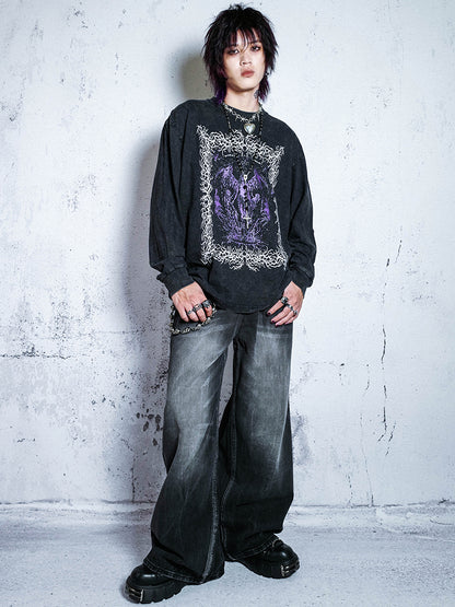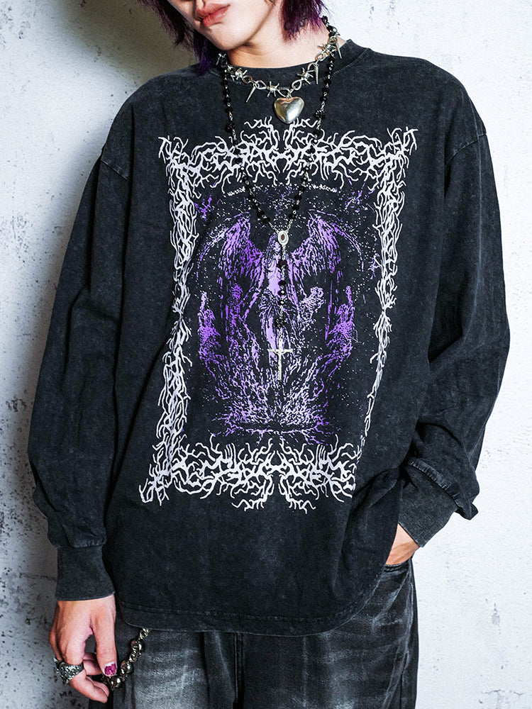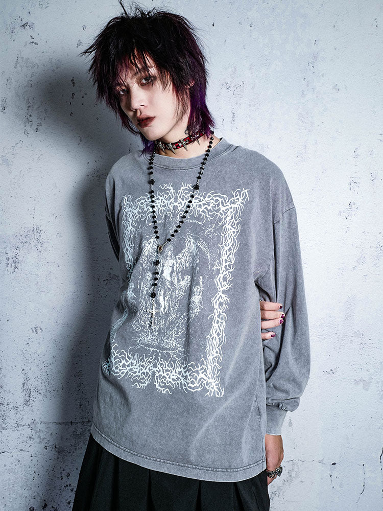 Graphic Design Washed Oversize Long Sleeve T-Shirt WN15946