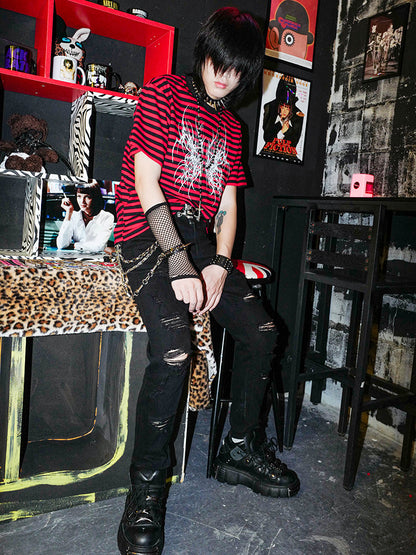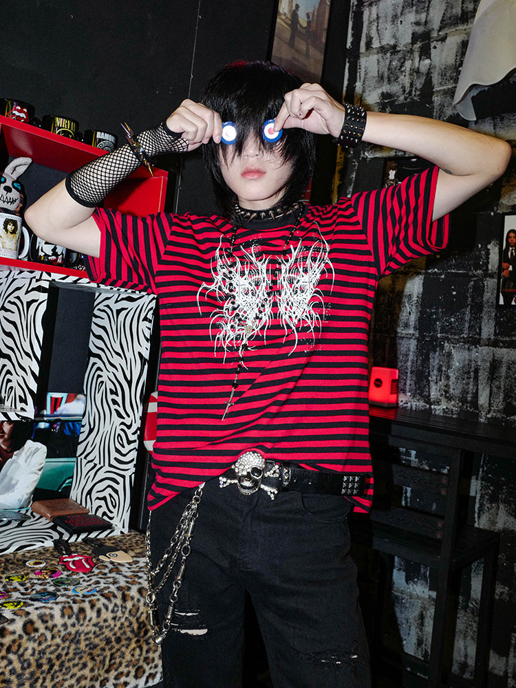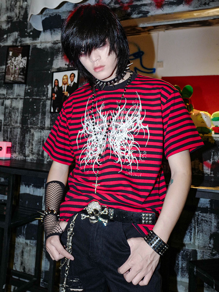 Graphic Design Stripe Short Sleeve T-Shirt WN15960