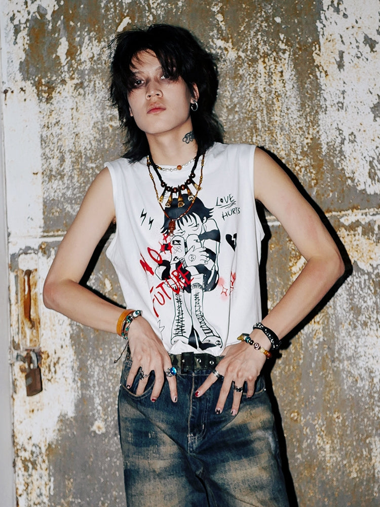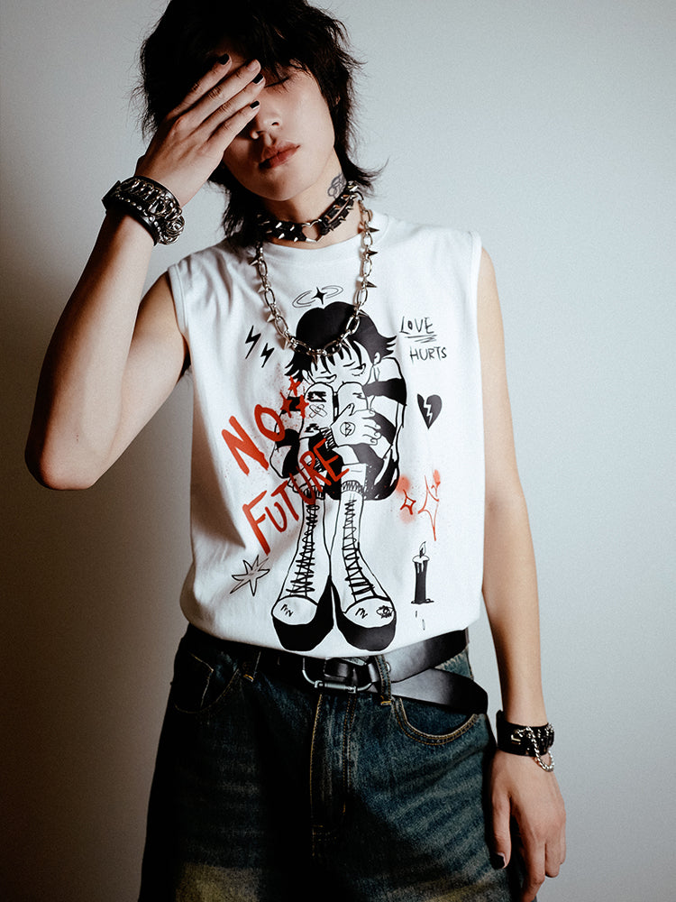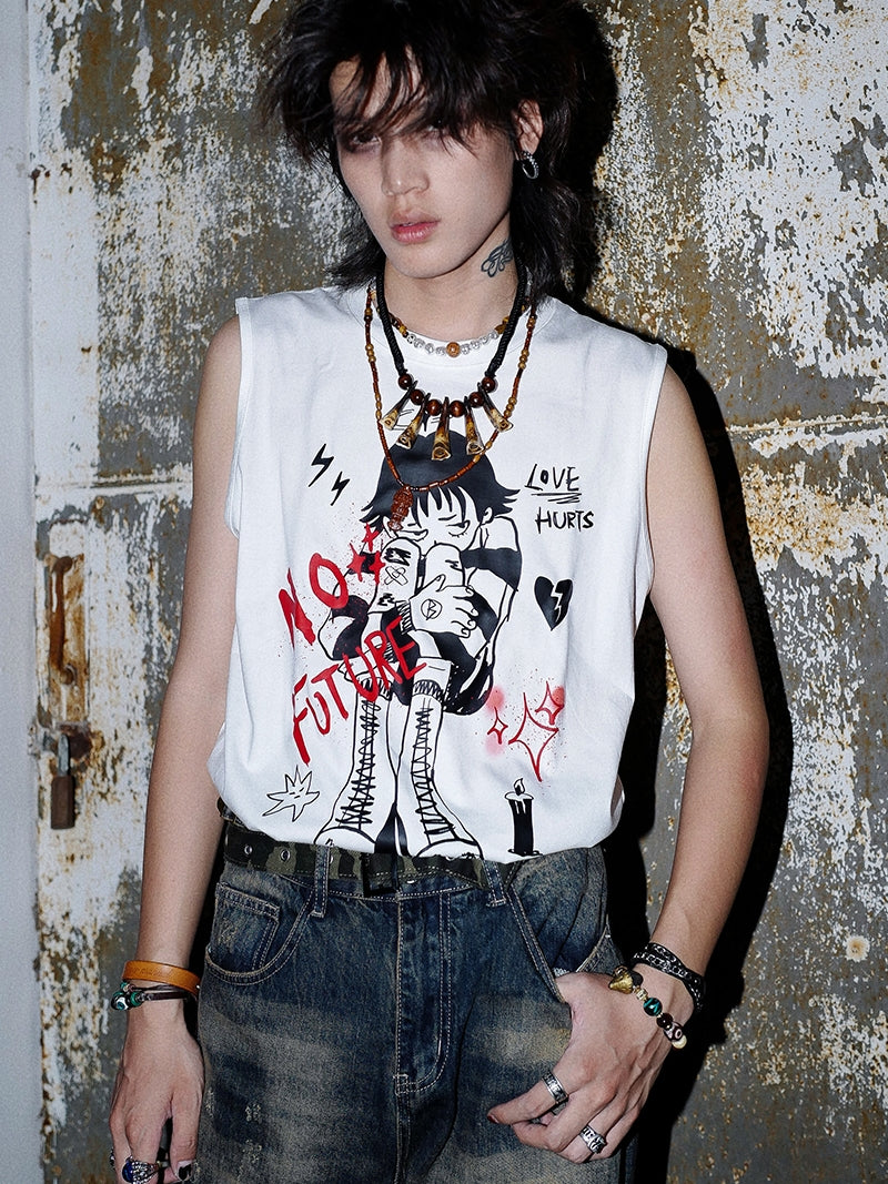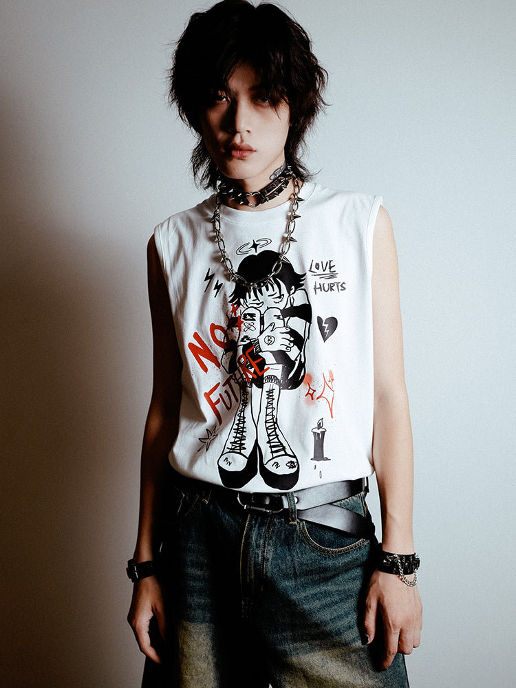 Anime-Inspired Sleeveless T-Shirt WN15974