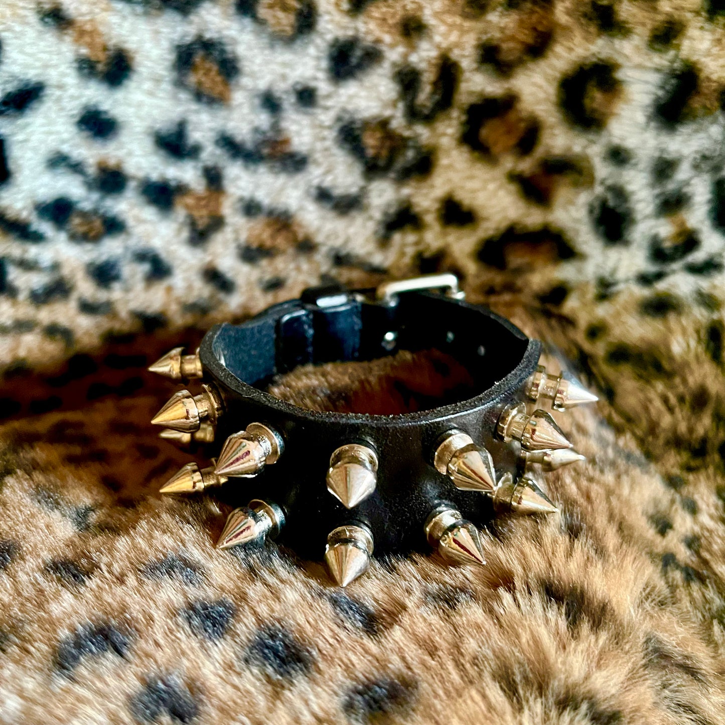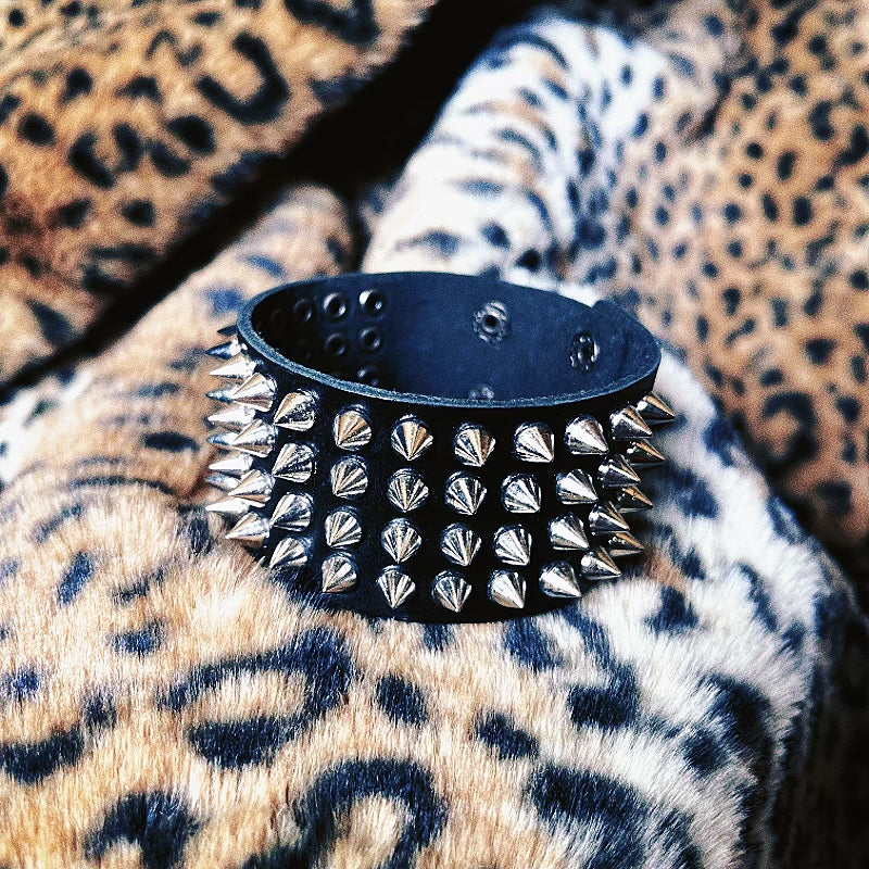 double rivet cowhide wristband: adjustable