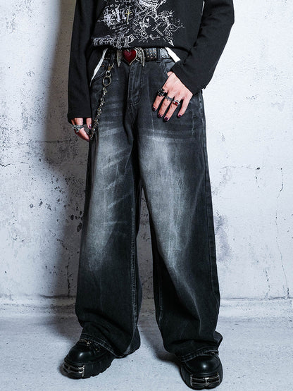 Washed Wide Leg Denim Jeans WN16055