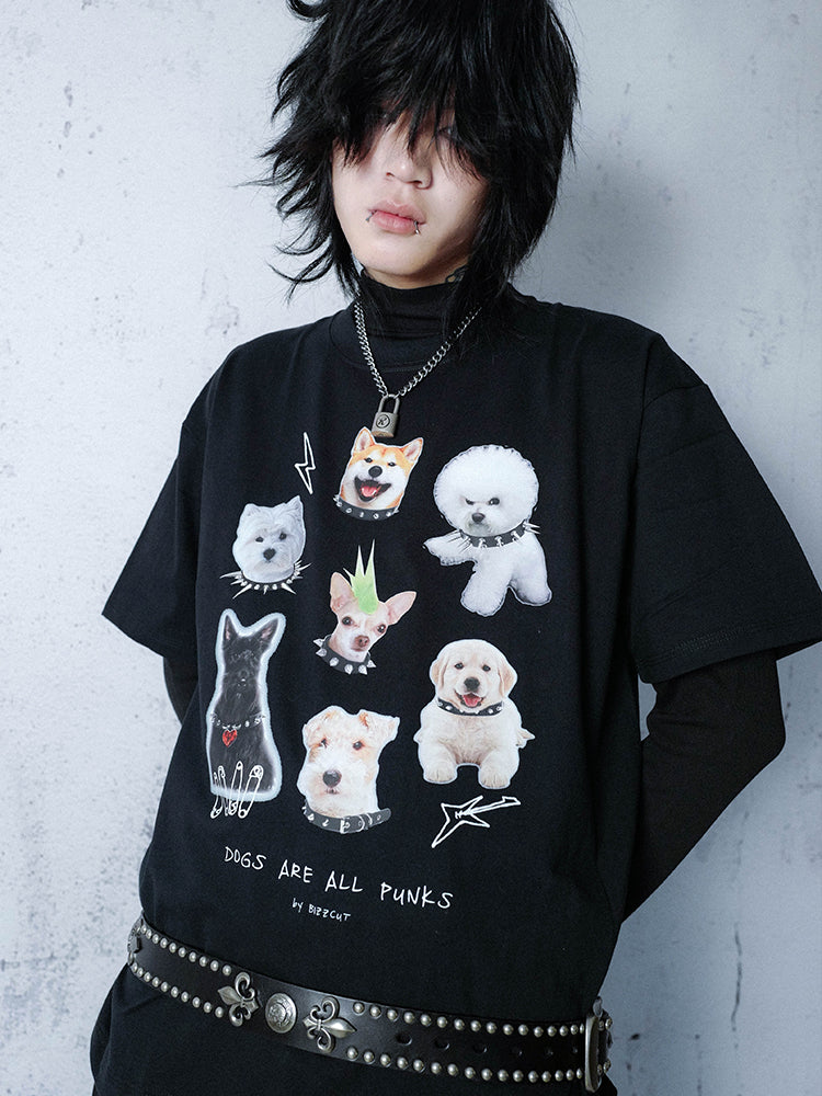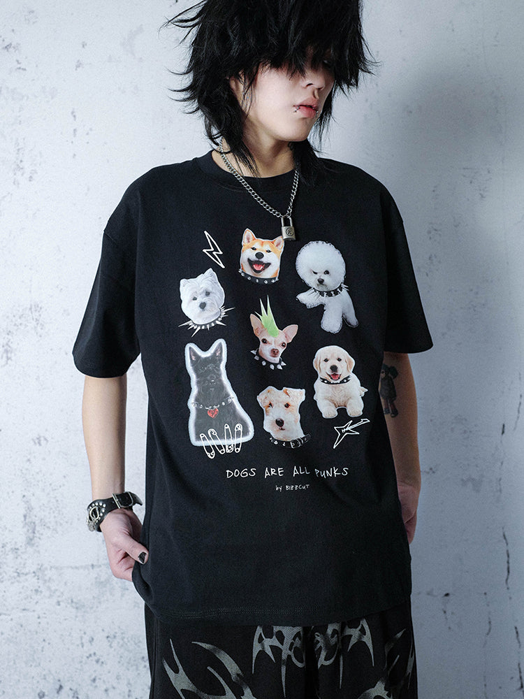 Dog Print Oversize Short Sleeve T-Shirt WN16069