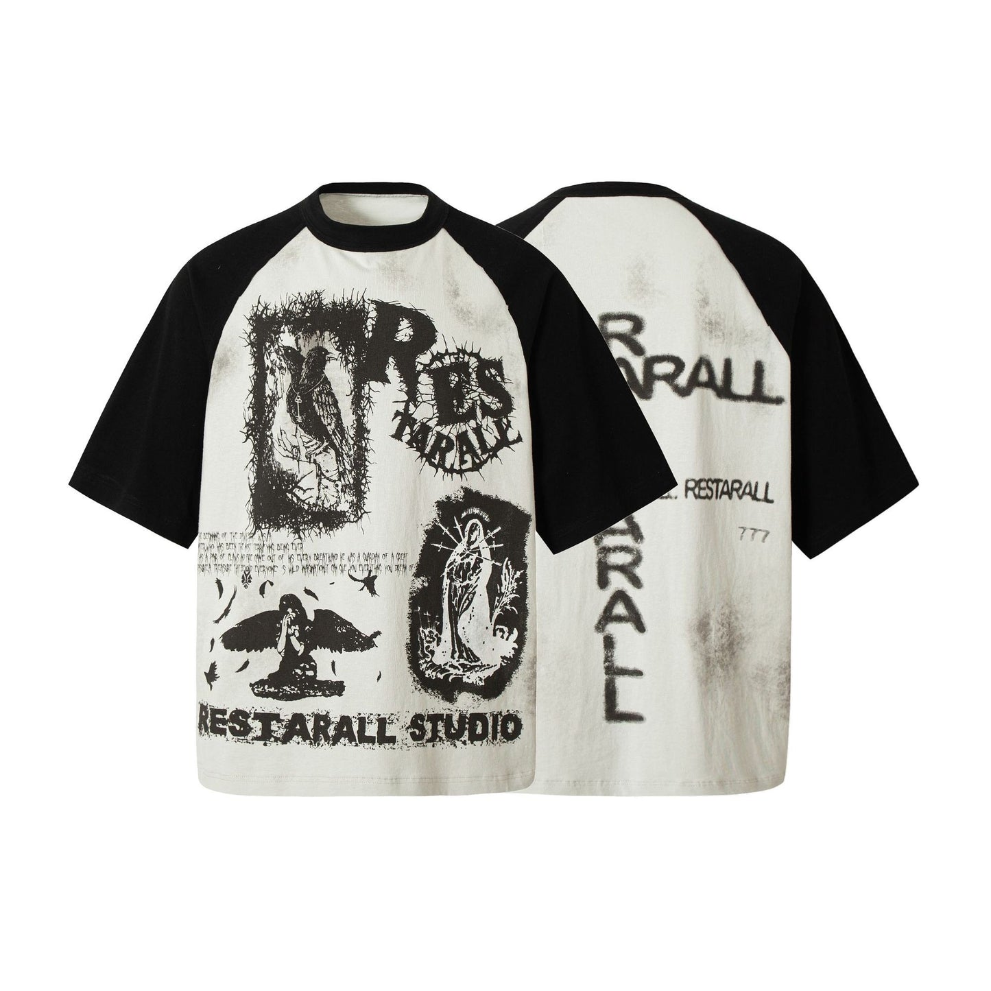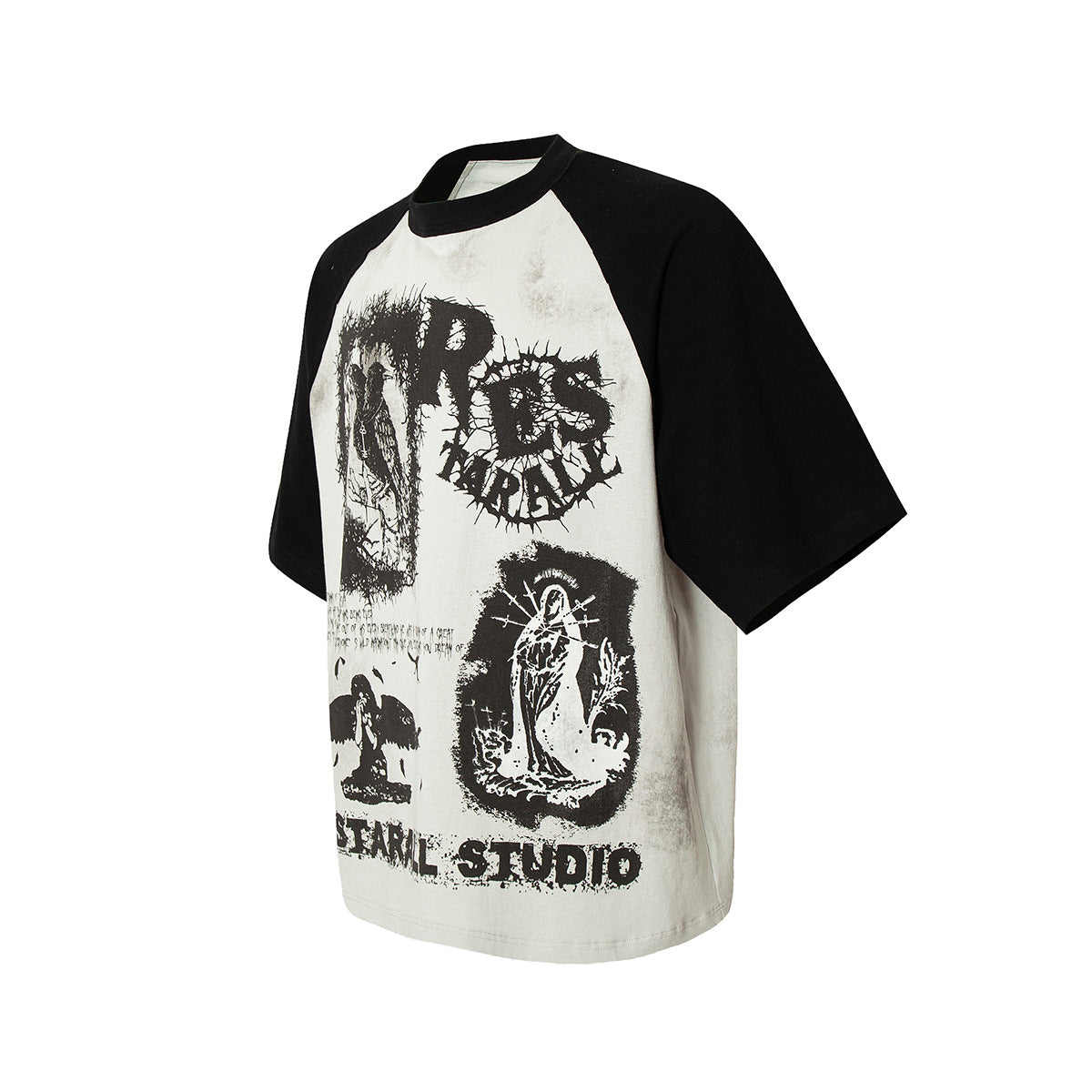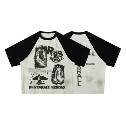 Bicolor Graphic Design Short Sleeve T-Shirt WN16103