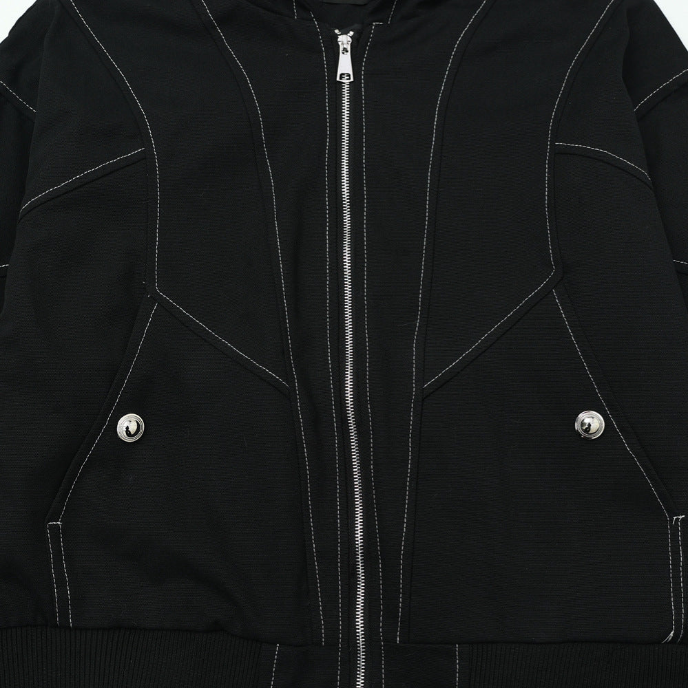 Metal Buttons Patchwork Hooded Jacket WN16109