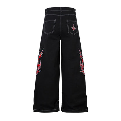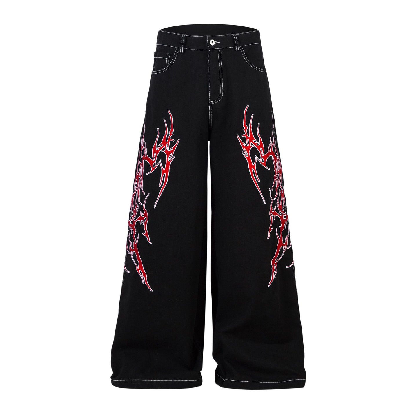 Heavyweight Embroidery Wide Leg Denim Jeans WN16195