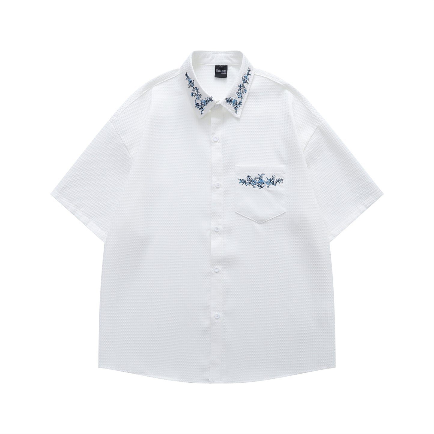 Floral Embroidery Waffle Short Sleeve Shirt WN16201