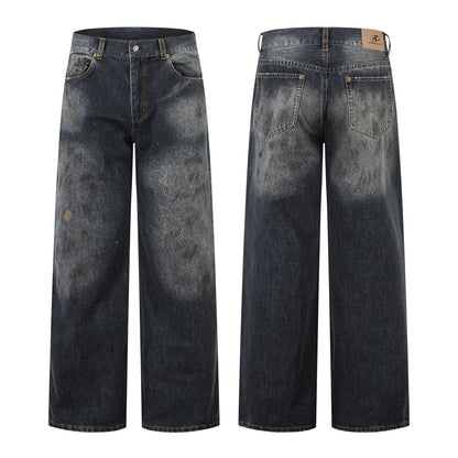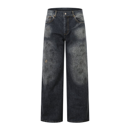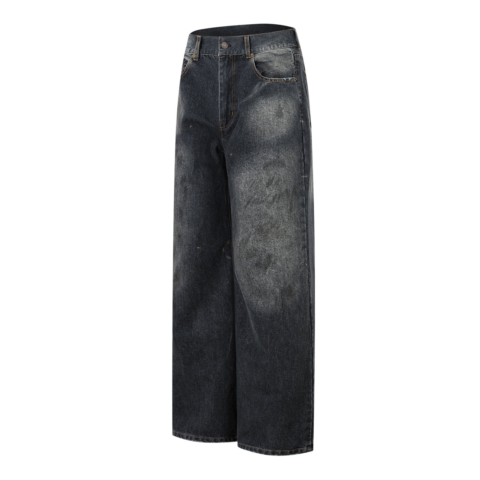 Washed Gradient Wide-Leg Straight Denim Jeans WN16211