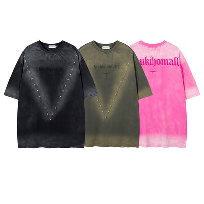 Washed Beaded Letter Embroidery Short Sleeve T-Shirt WN16214