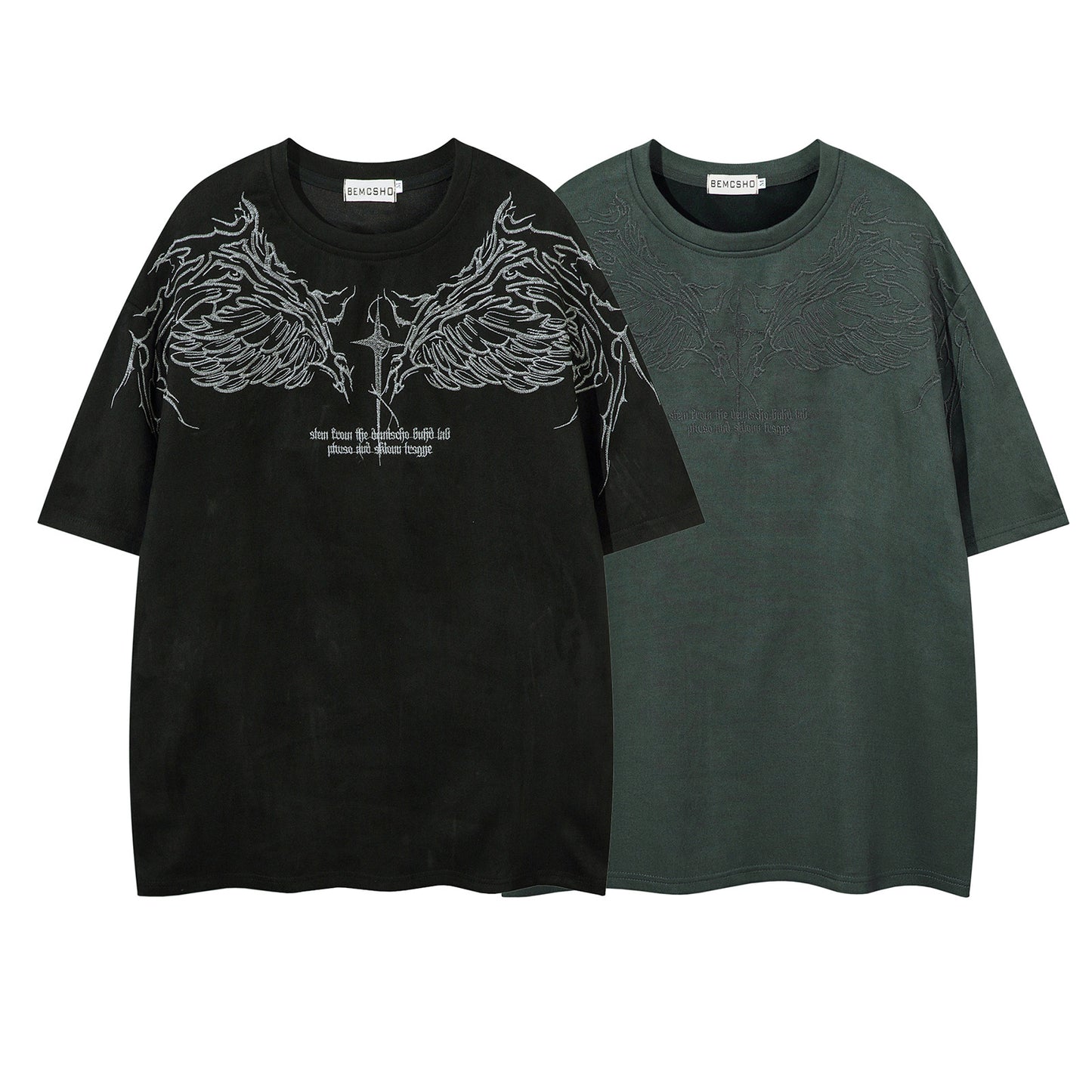 Heavyweight Embroidery Suede Oversize Short Sleeve T-Shirt WN16221
