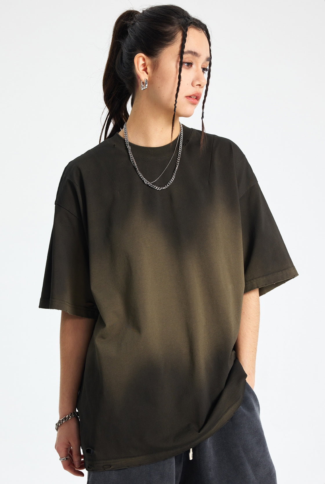 Spray Dye Washed Damage Short Sleeve T-Shirt WN16276
