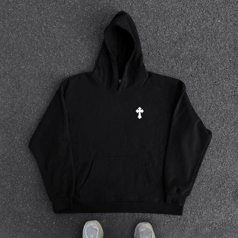 Cross Print Heavyweight Pullover Hoodie WN16419