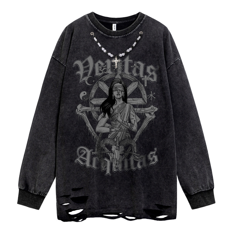Washed Damage Print Long Sleeve T-Shirt WN16487