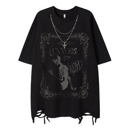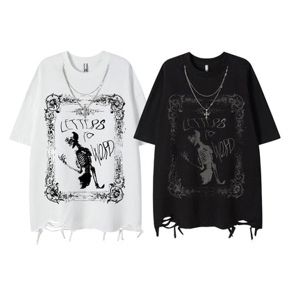 Oversize Damage Chain Short Sleeve T-Shirt WN16506