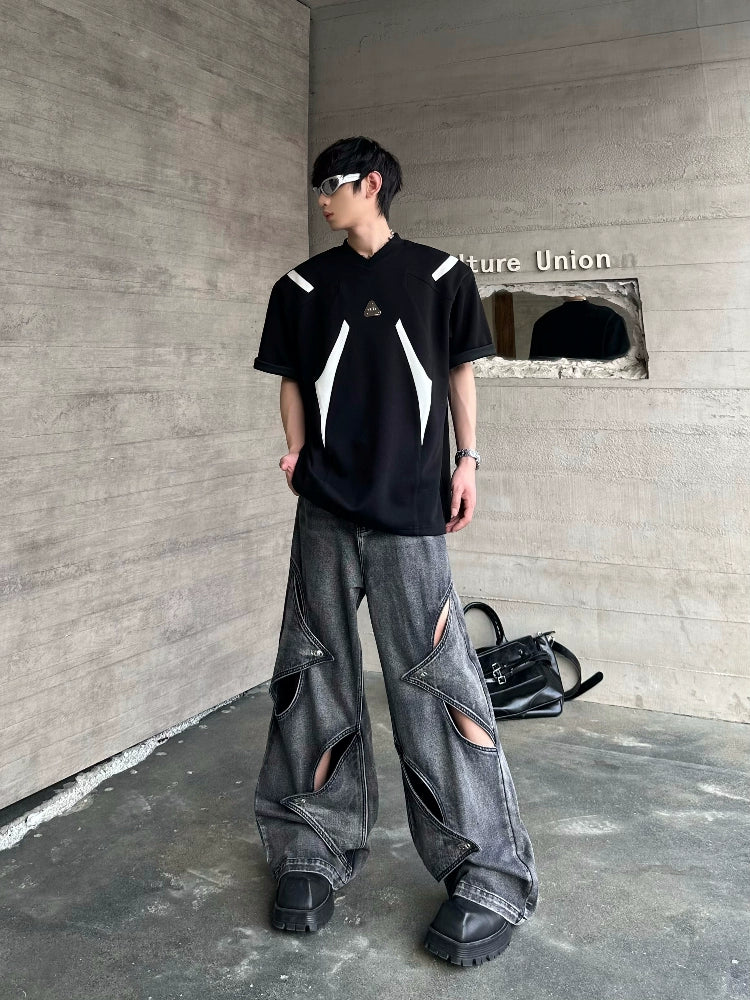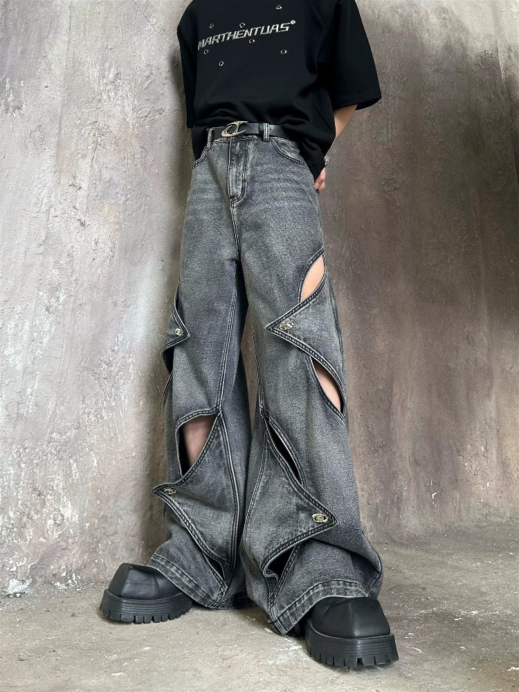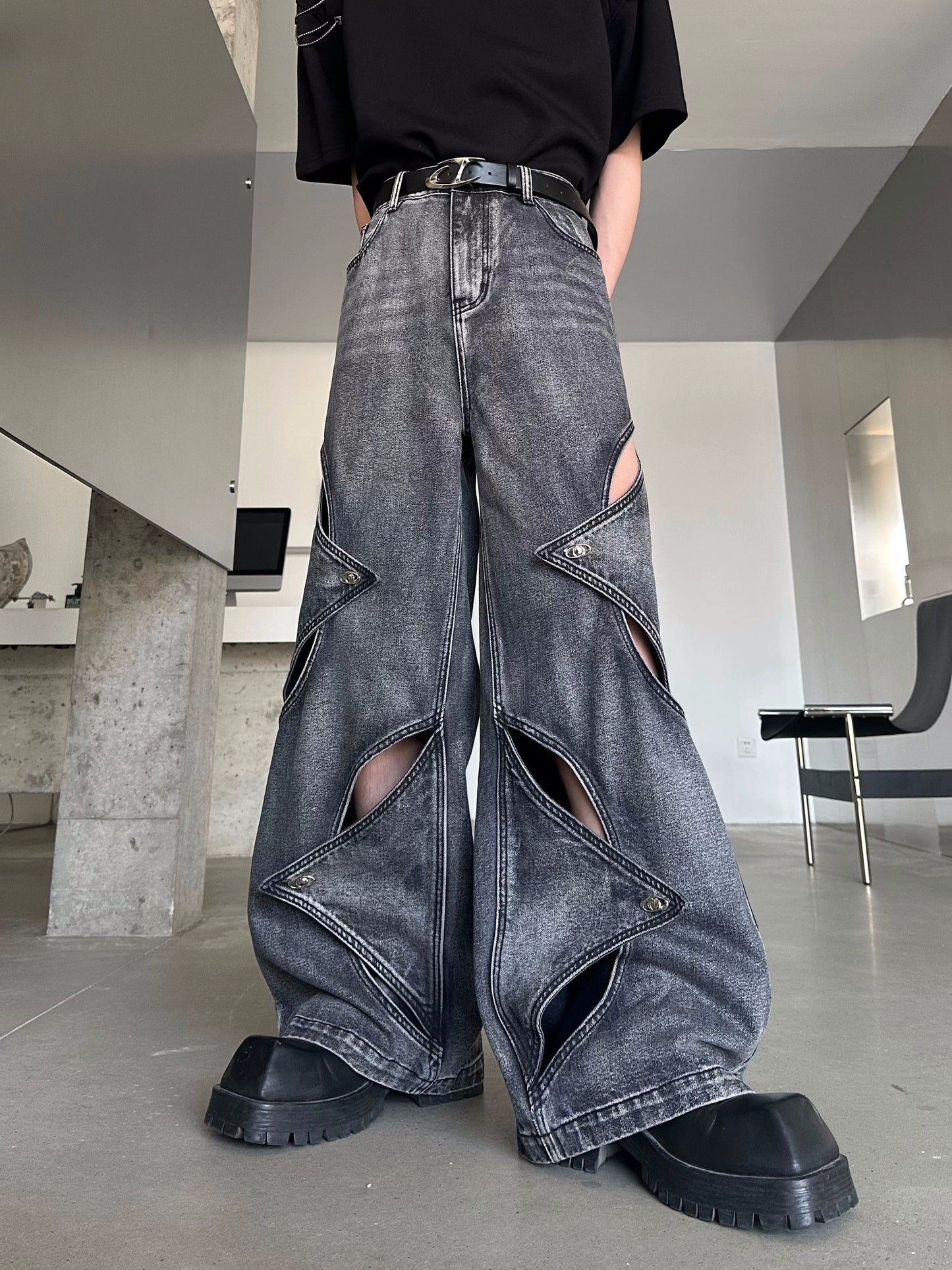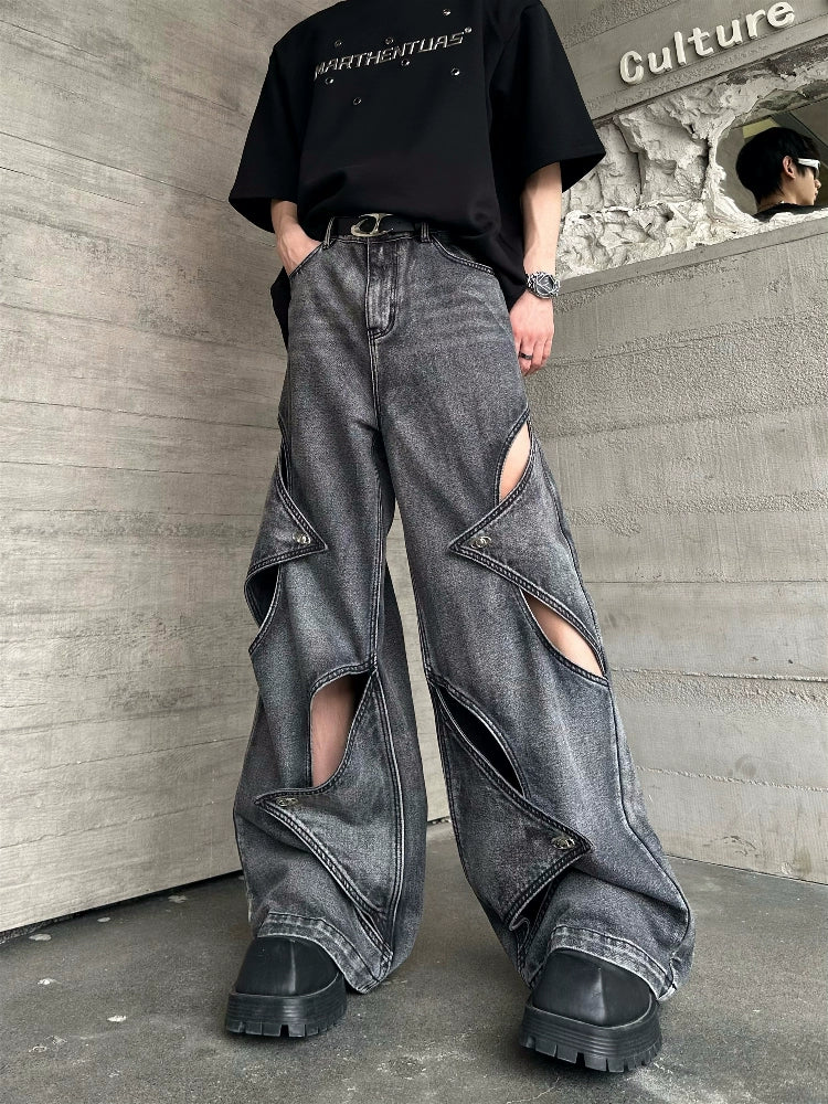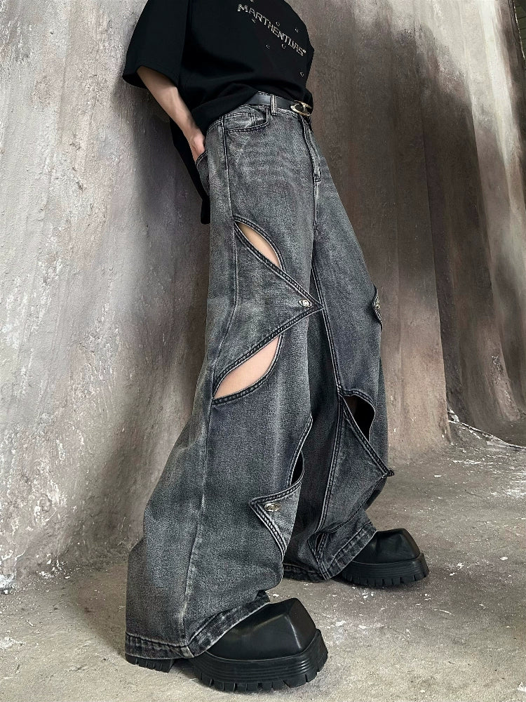 Hollow Deconstructed Washed Wide Leg Denim Jeans WN16772