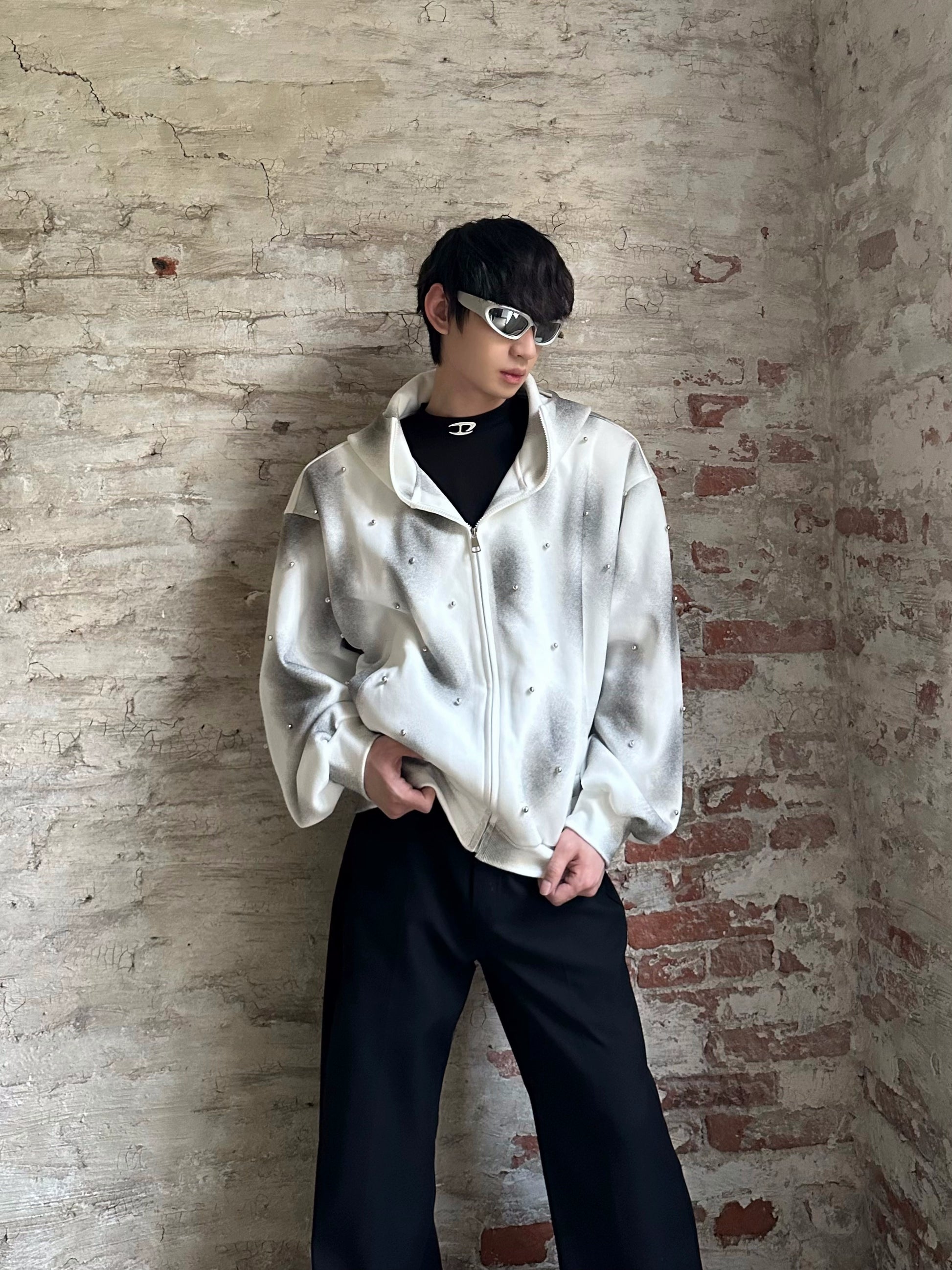 Metal Detail Oversize Zipper Hoodie WN16774