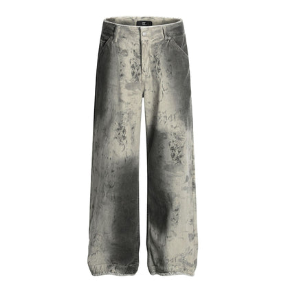 Washed Graphic Design Wide-Leg Straight Denim Jeans WN16807