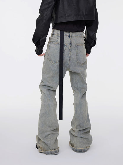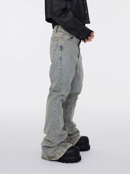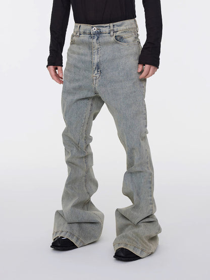 Washed Wrinkle Stacked Flare Denim Jeans WN16974