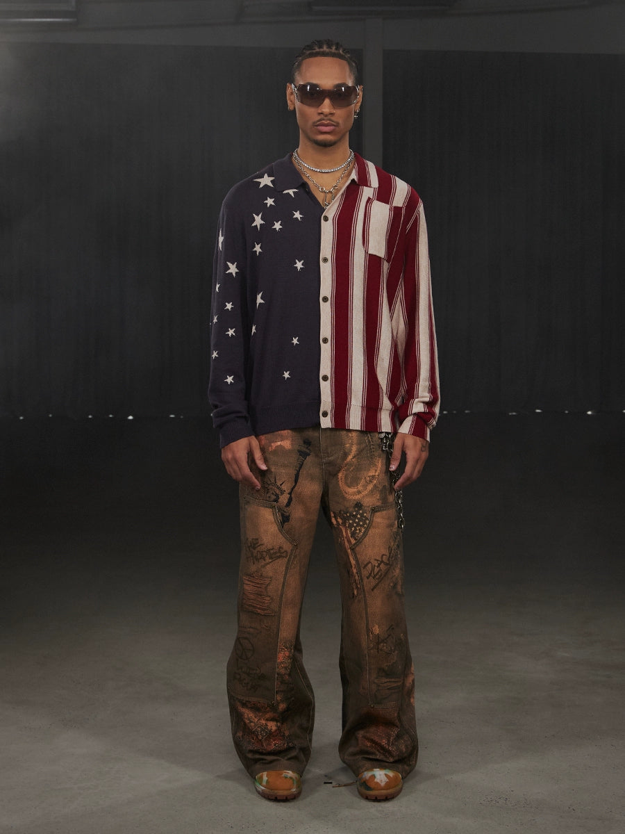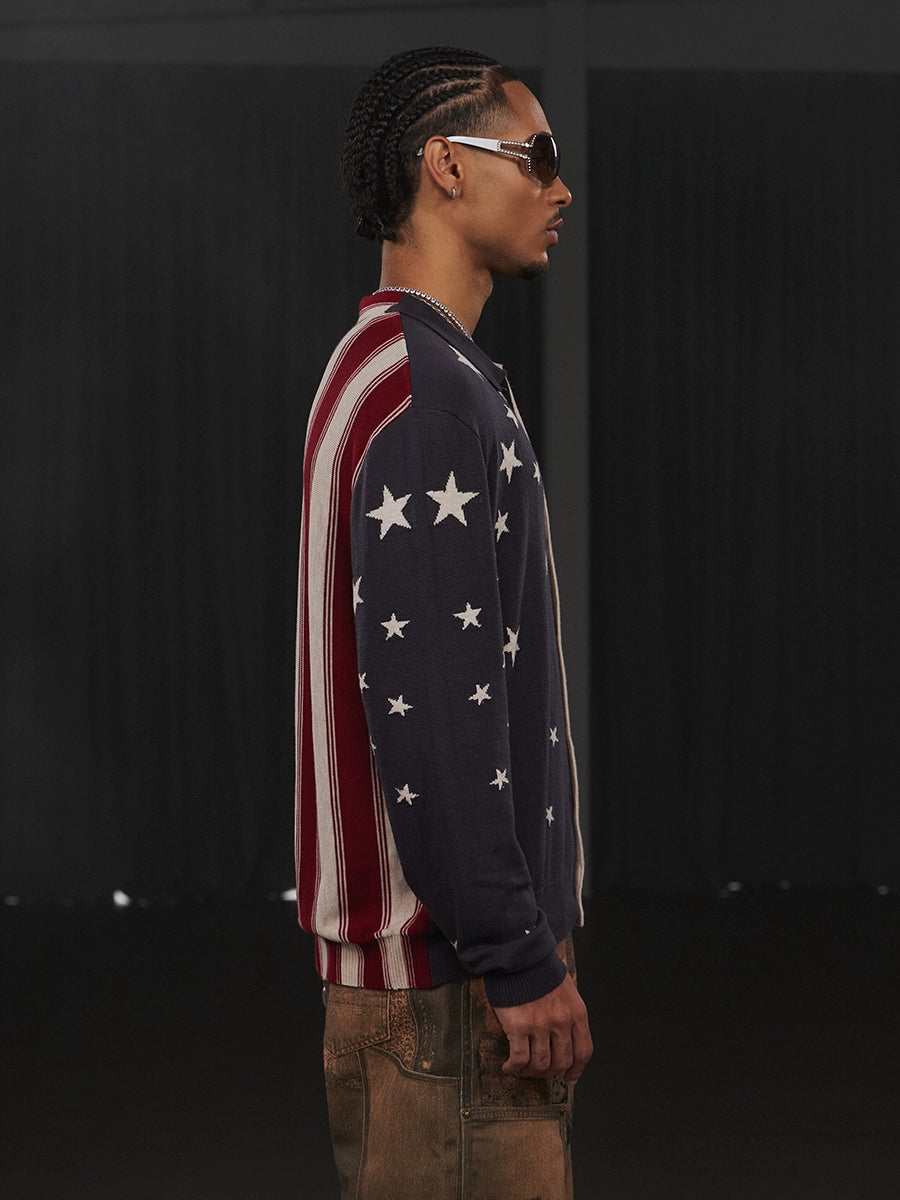 Flag Star Stripe Polo Knit Cardigan WN17025