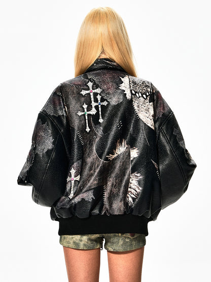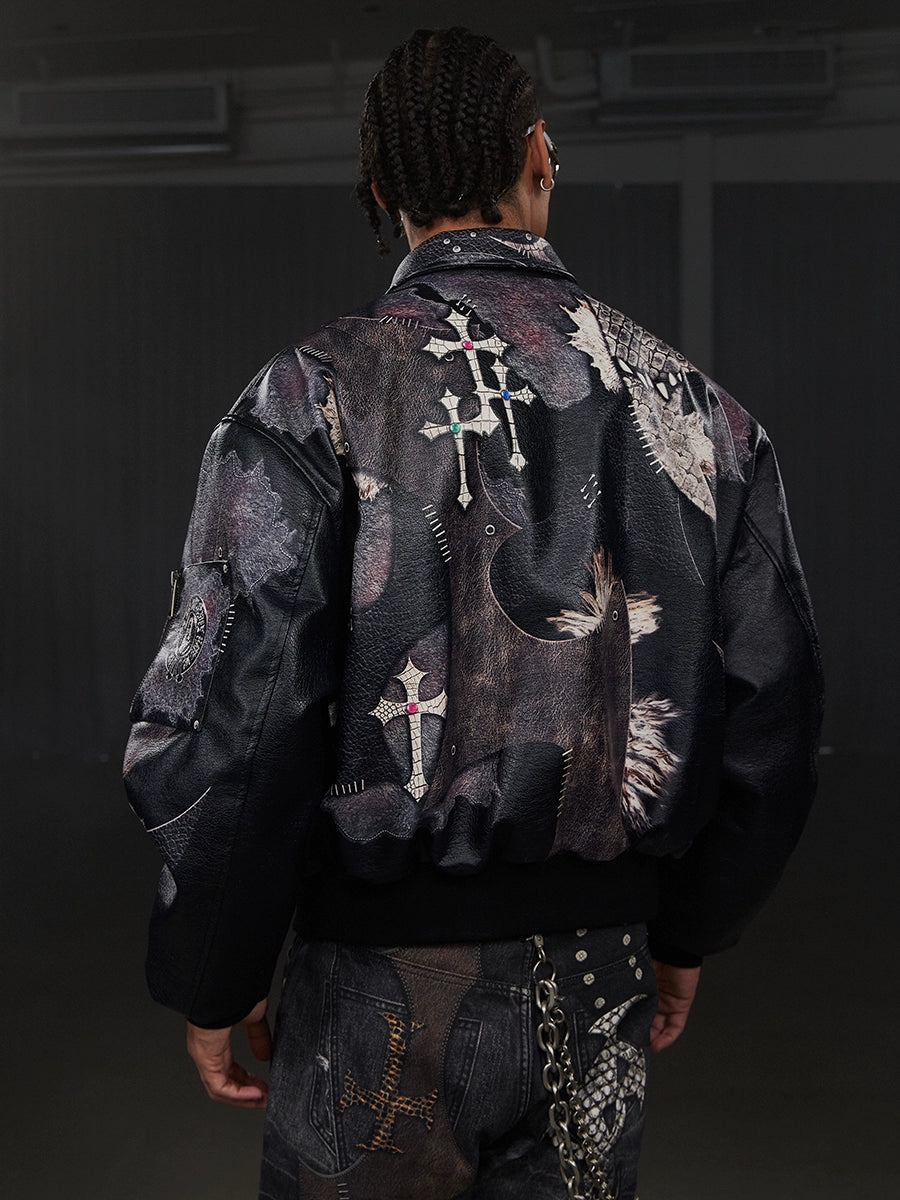 Cross Patchwork Snake Print PU Leather Jacket WN17085