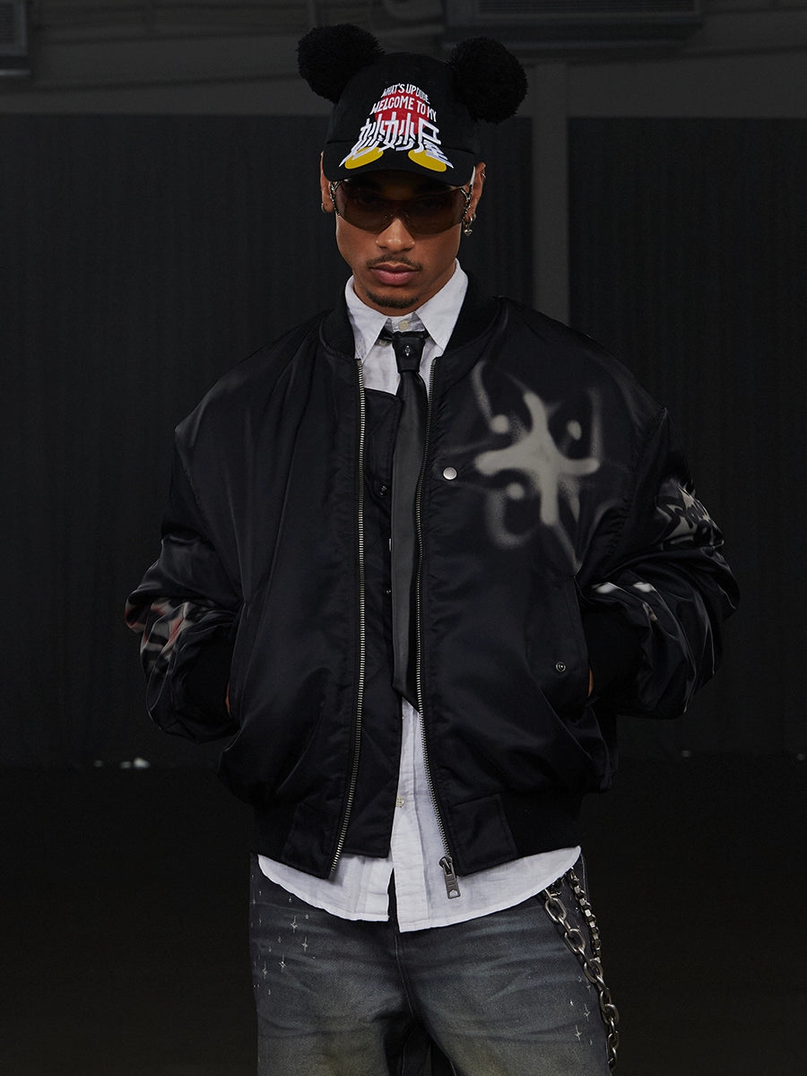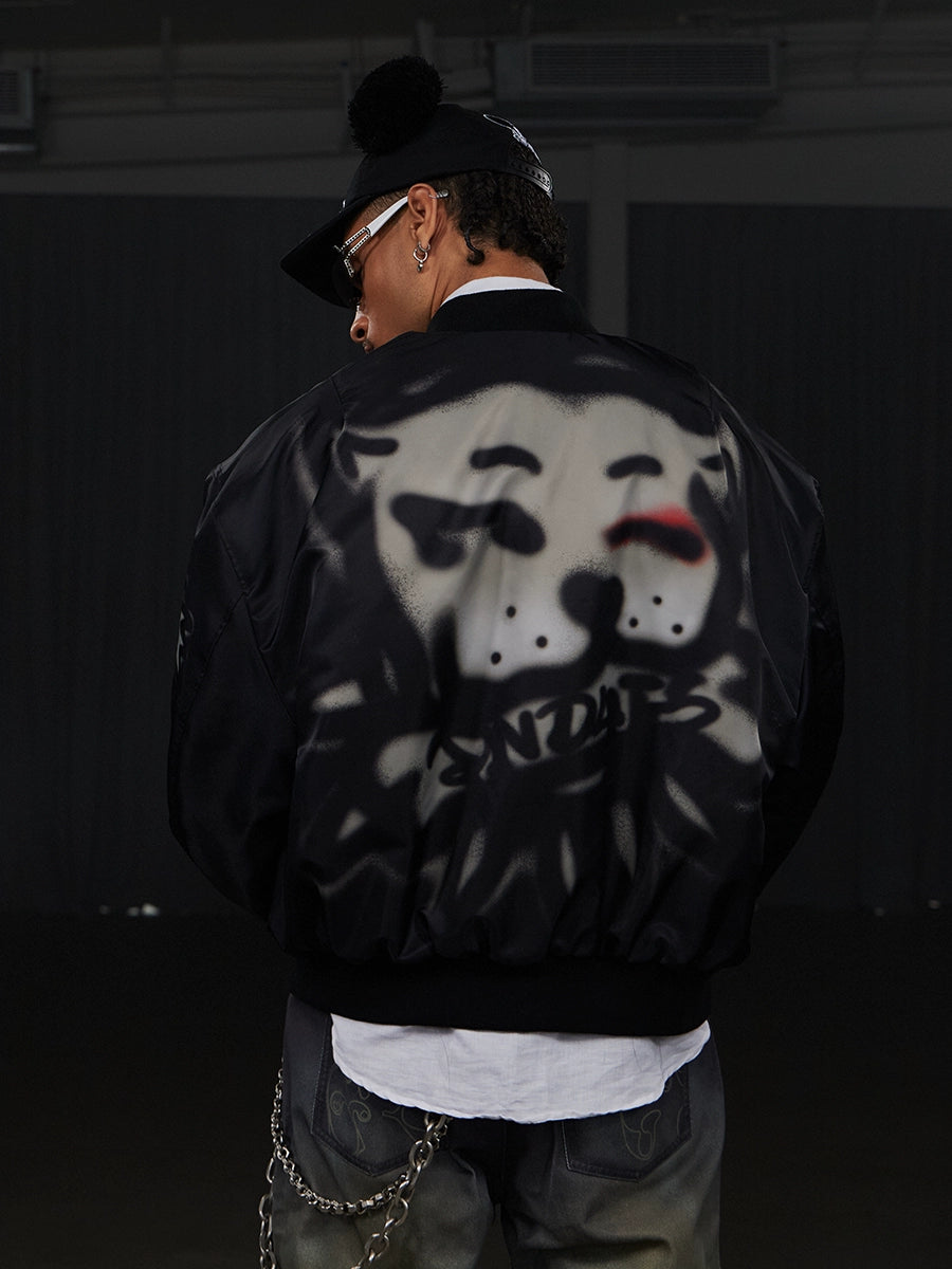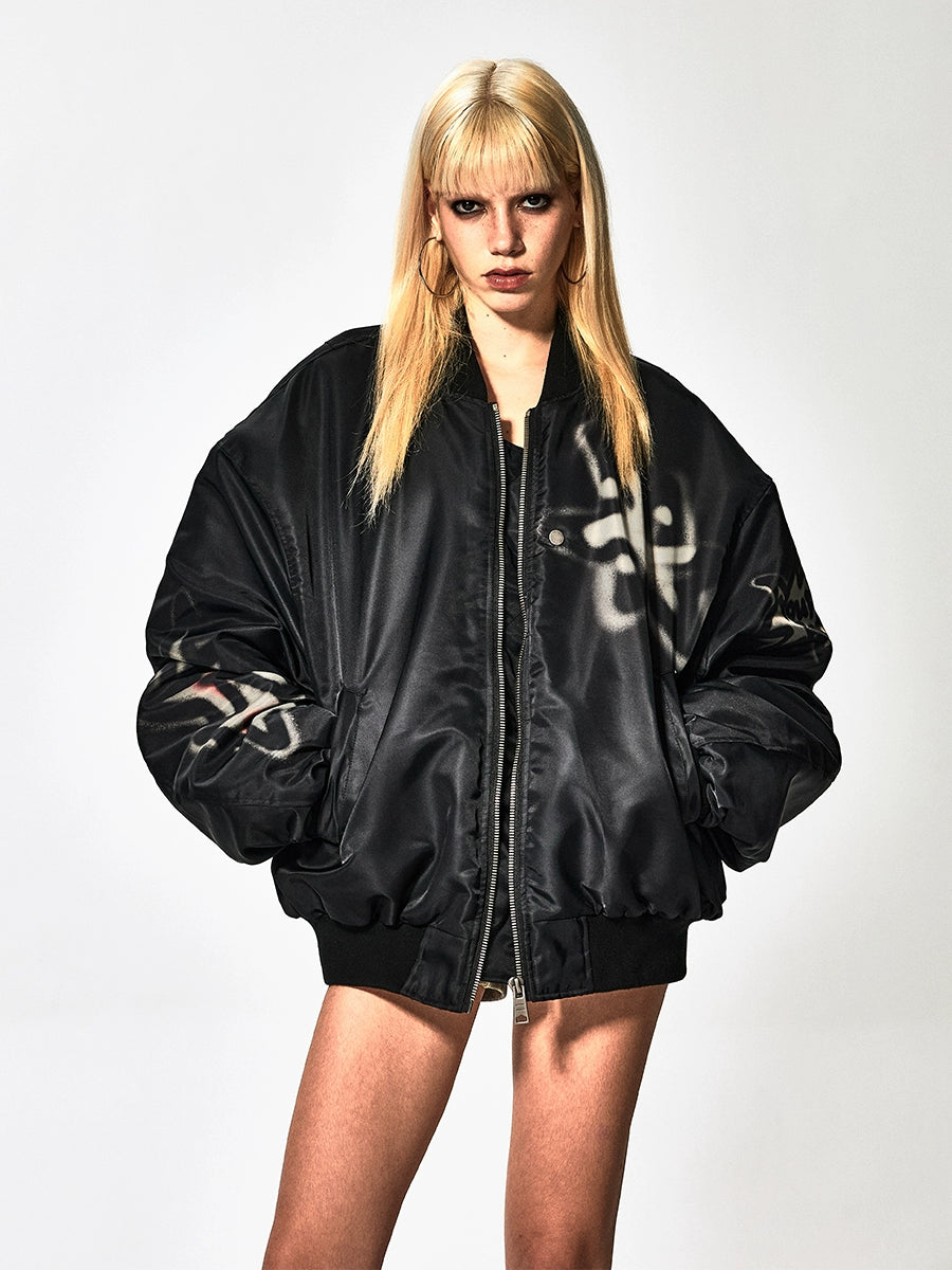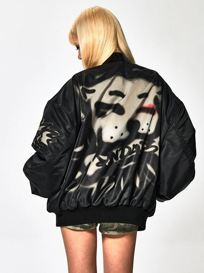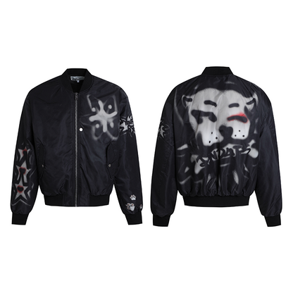 Graffiti Dog Print Oversize Zipper Jacket WN17086