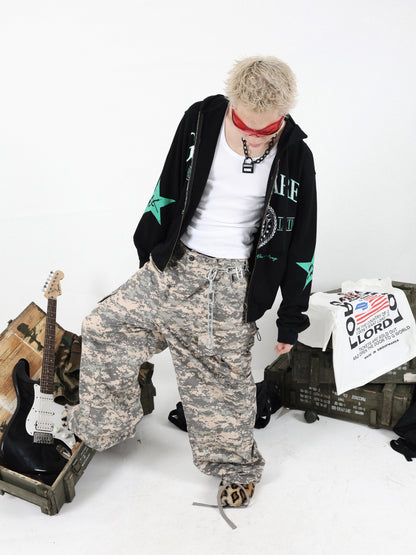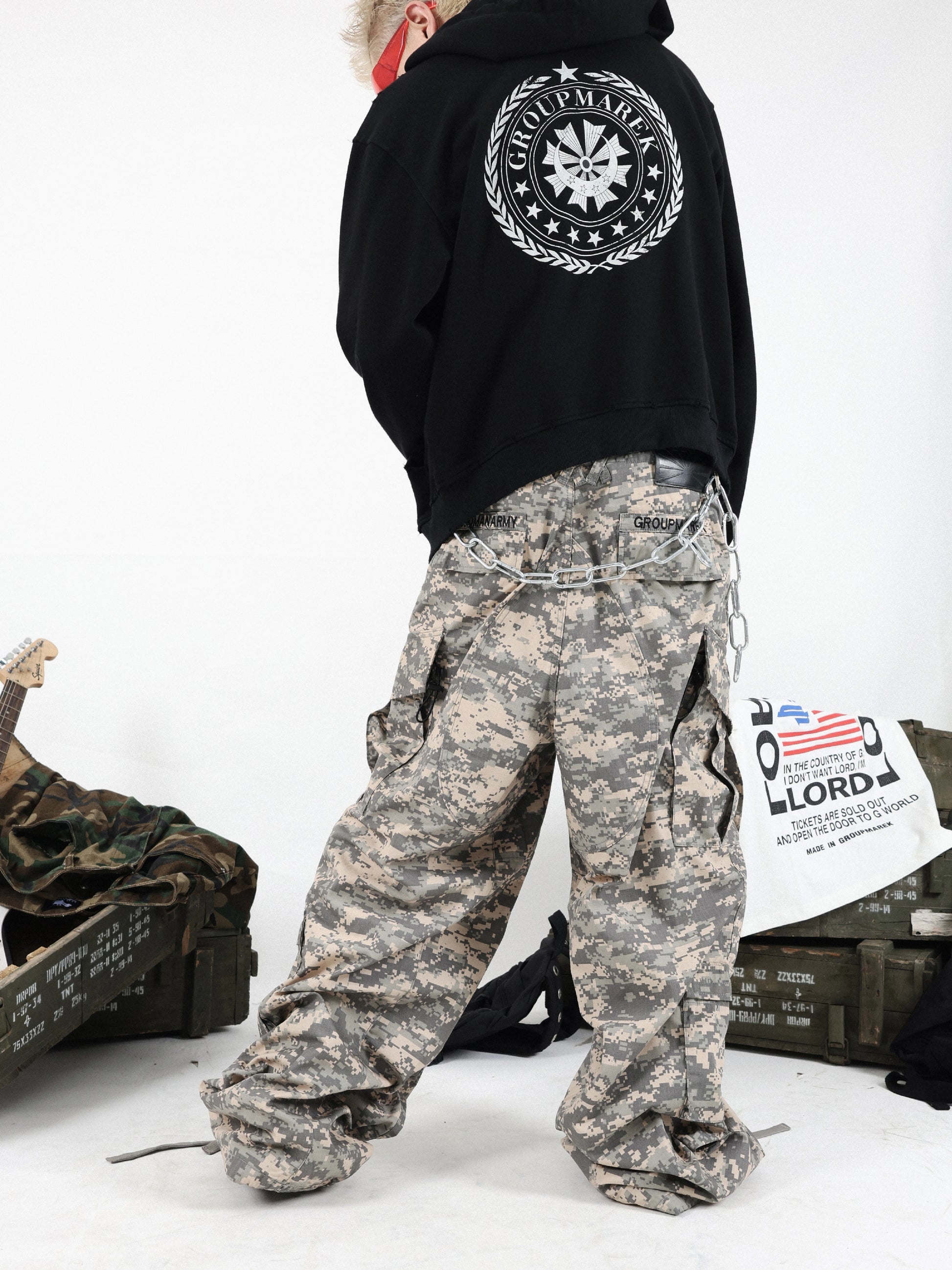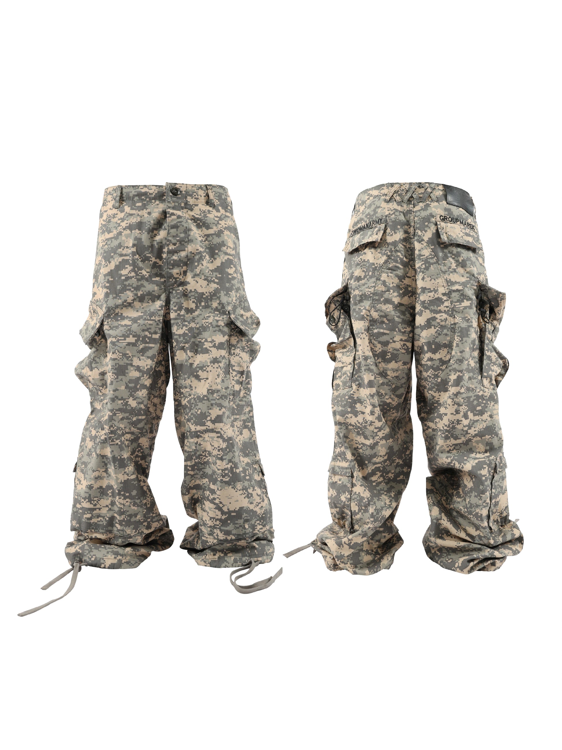 Camouflage Drawstring Wide Leg Cargo Pants WN17204