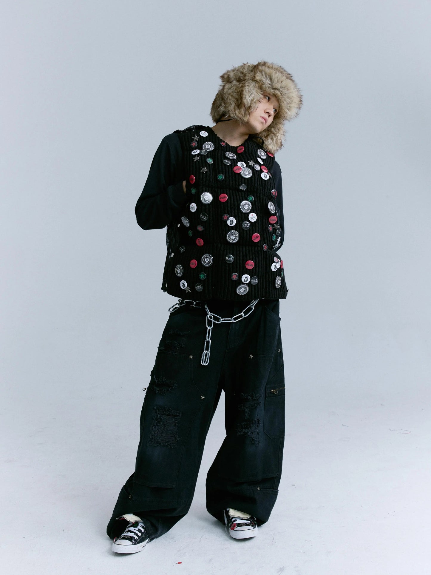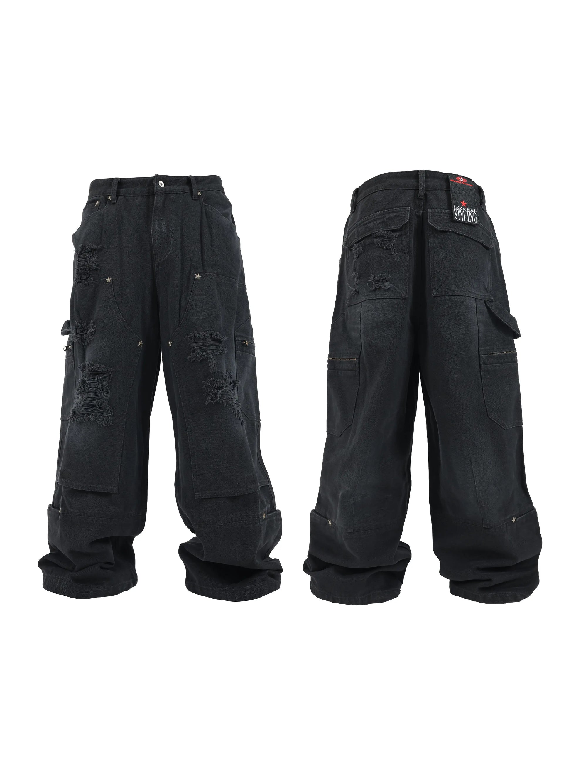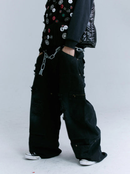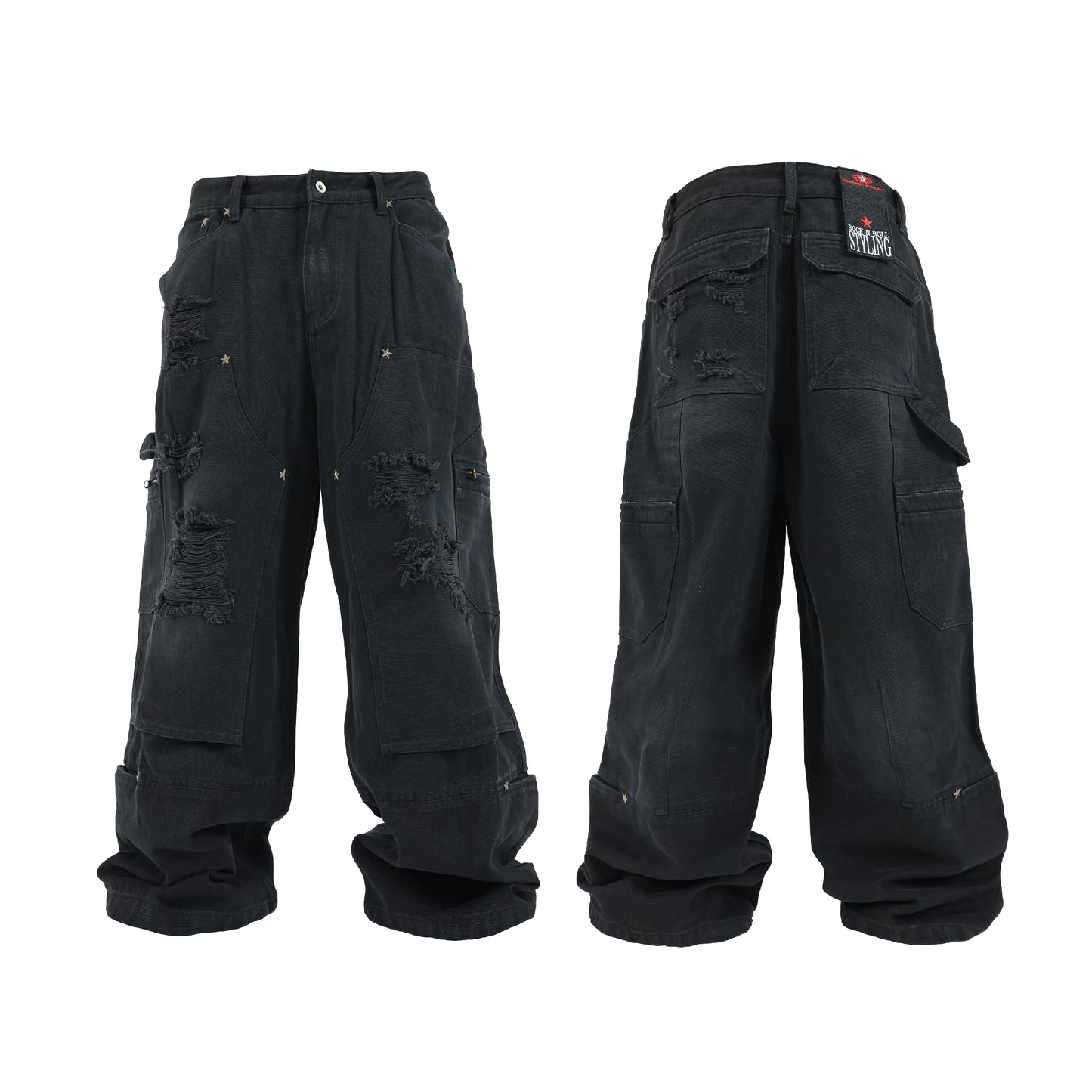 Damage Design Multi-Pocket Wide Leg Cargo Pants WN17240