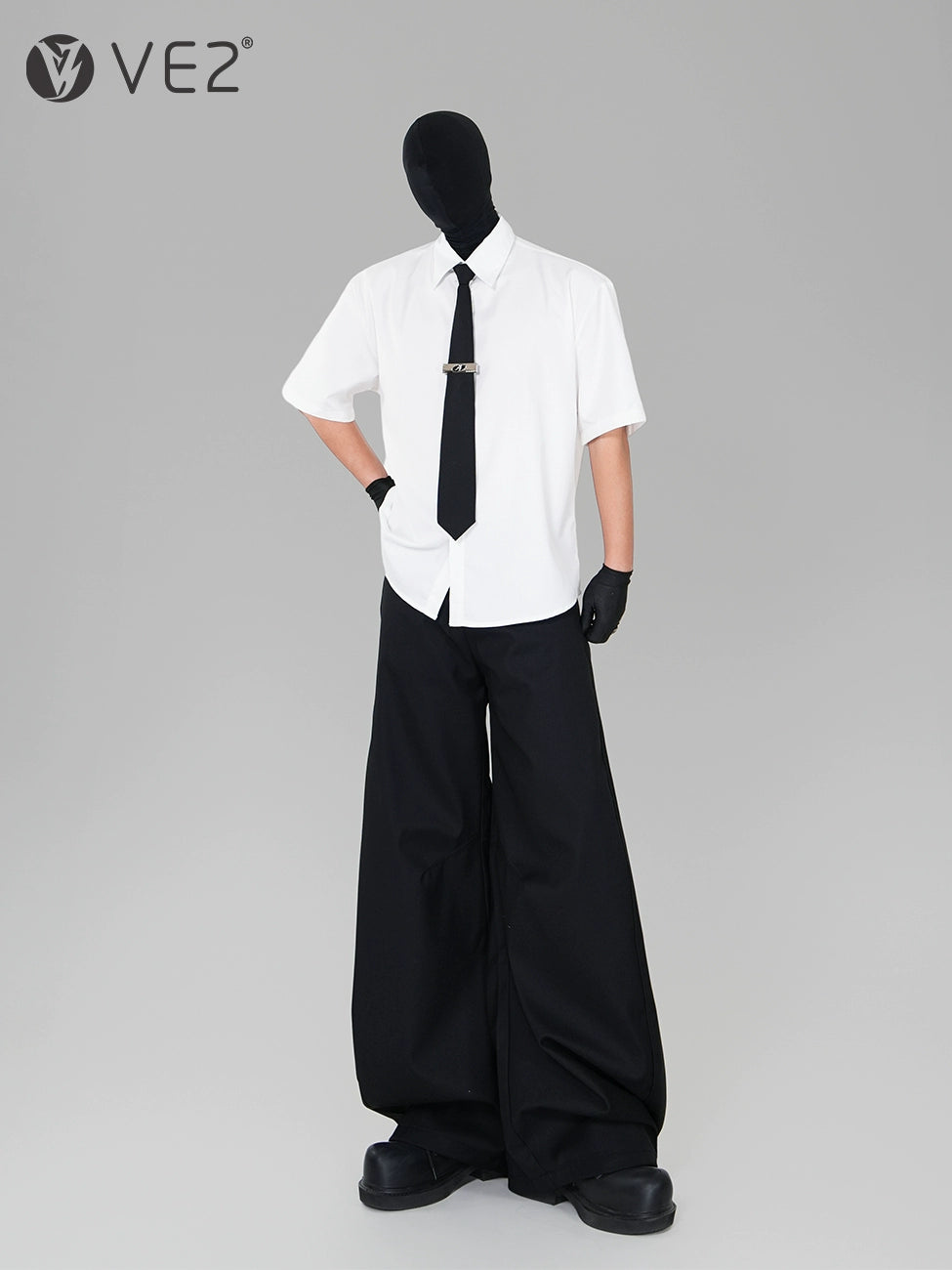 Short Sleeve Shirt & Tie & Curved Blade Wide Leg Trousers Setup WN17364