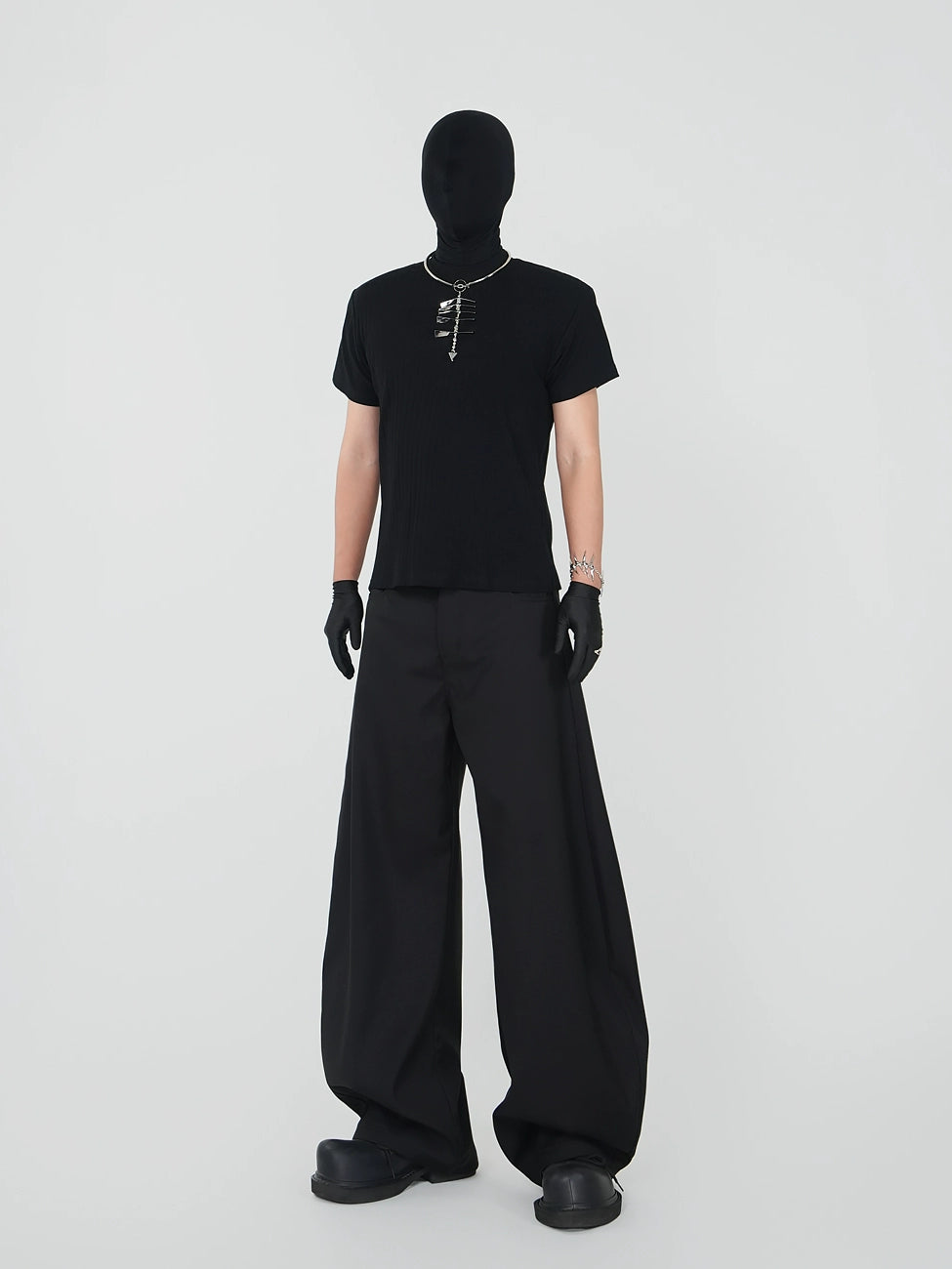 Stretch Slim Short Sleeve T-Shirt & Curved Blade Wide Leg Trousers Setup WN17370
