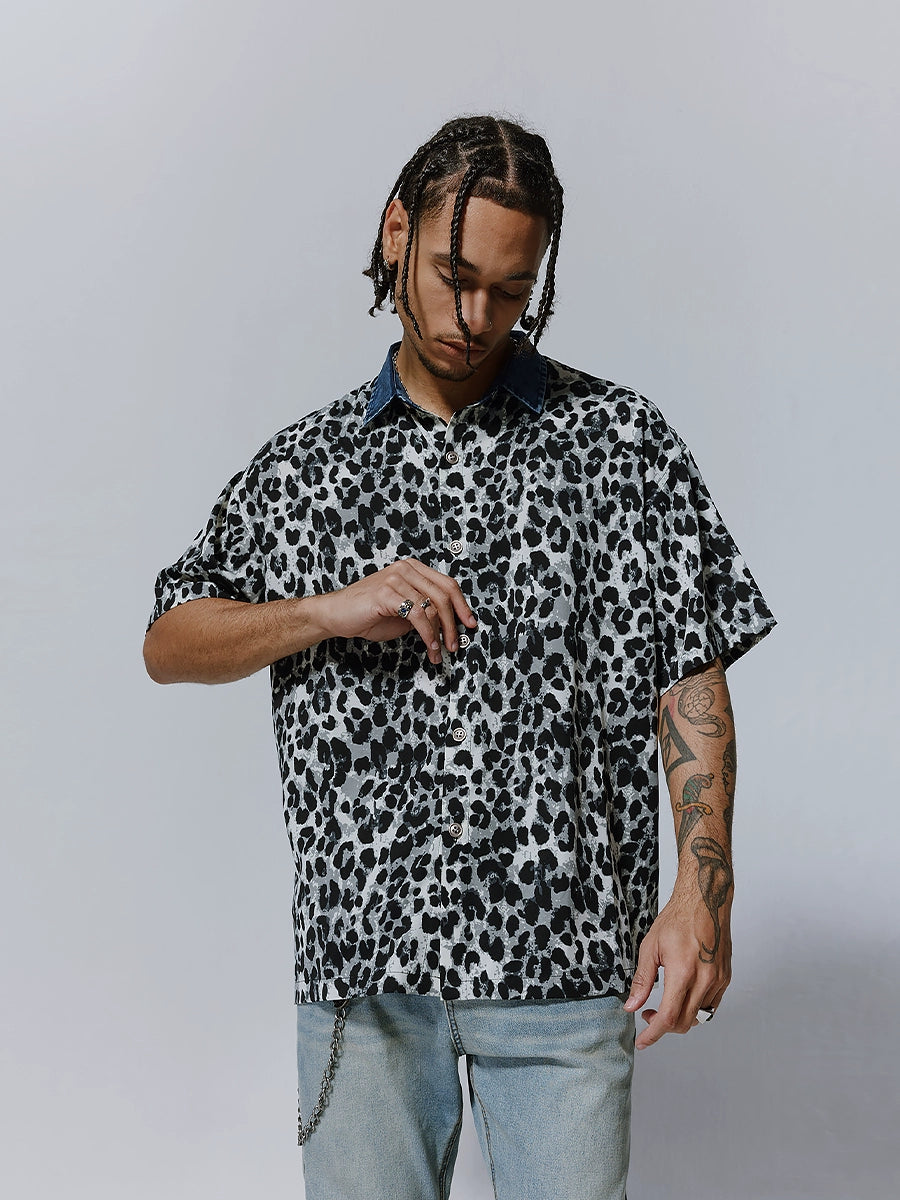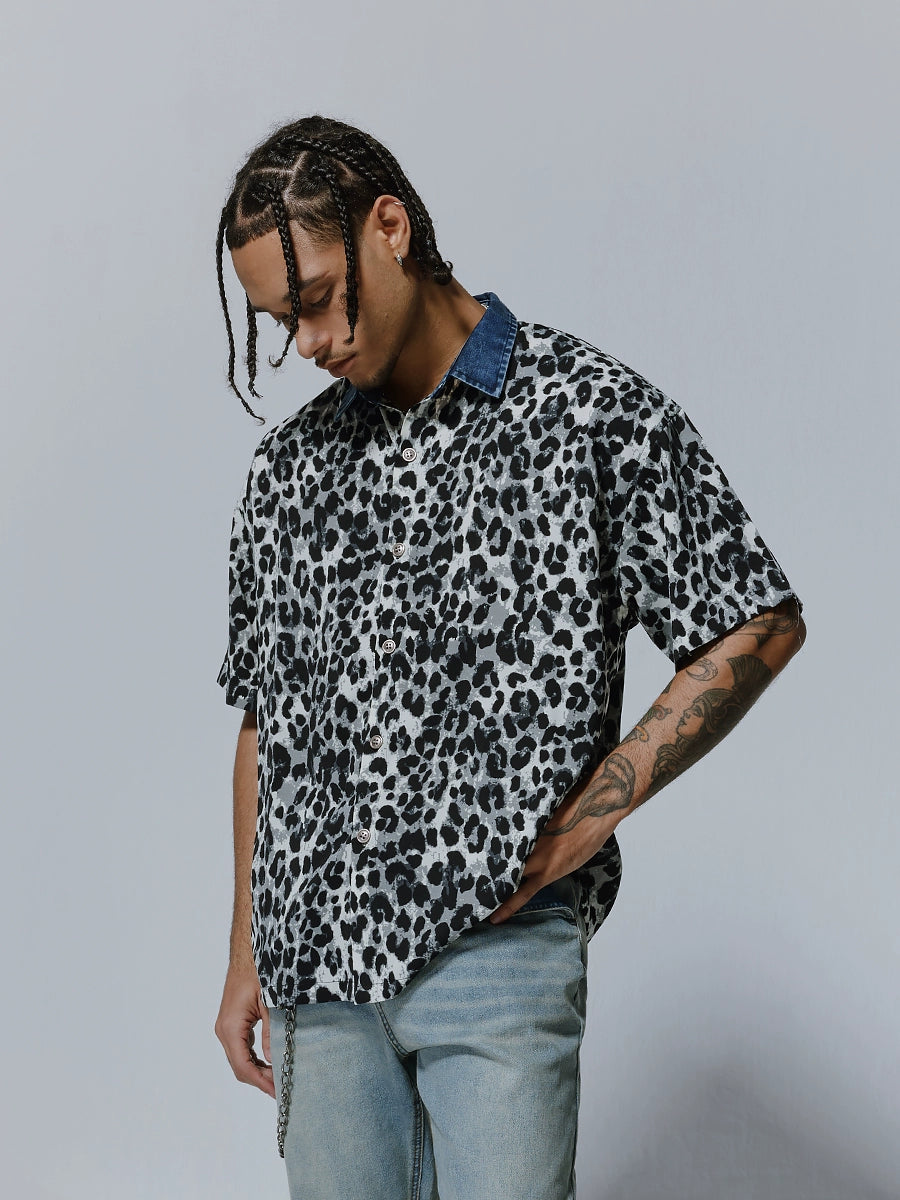 Leopard Print Spread-Collar Short Sleeve Shirt WN17500