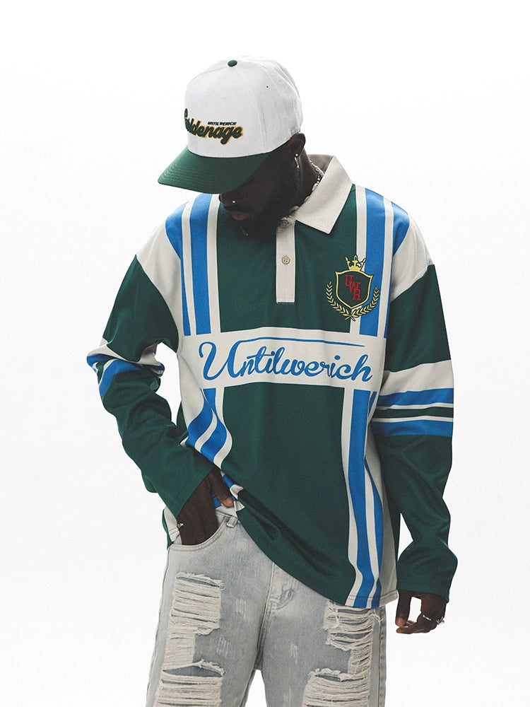 Color Block Vertical Stripe Long Sleeve Polo Shirt WN17773