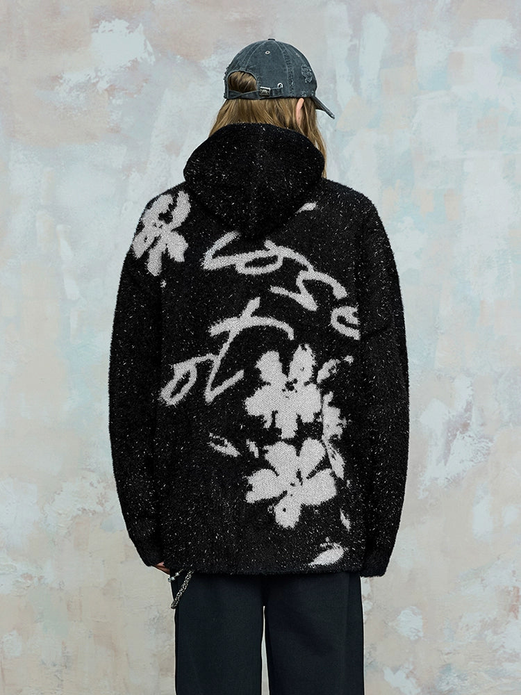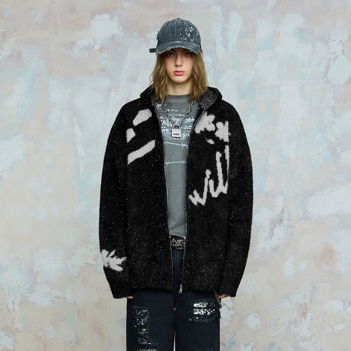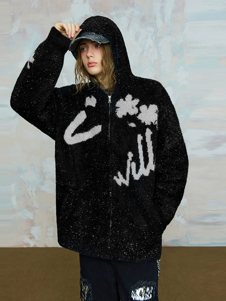 Jacquard Organza Graphic Letter Oversize Zipper Hoodie WN17865