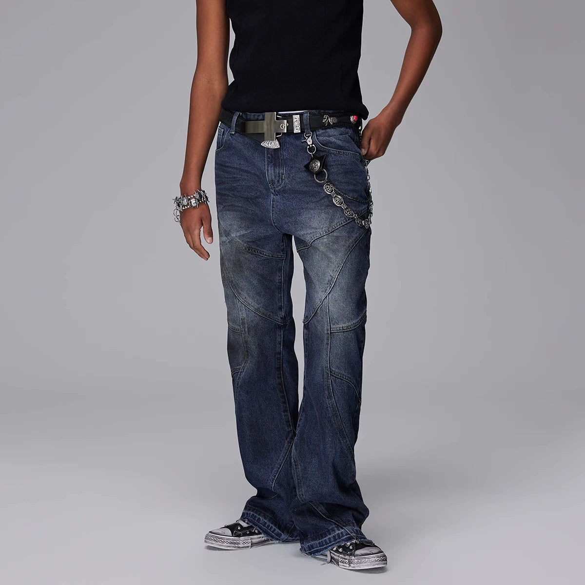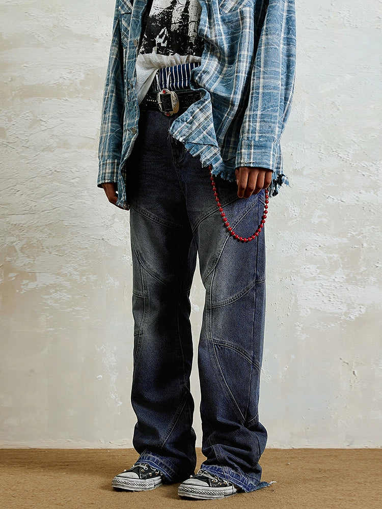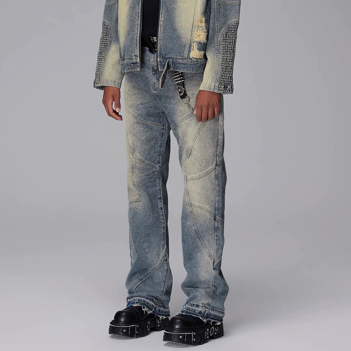 Dirty Wash Patchwork Flare Denim Jeans WN17976