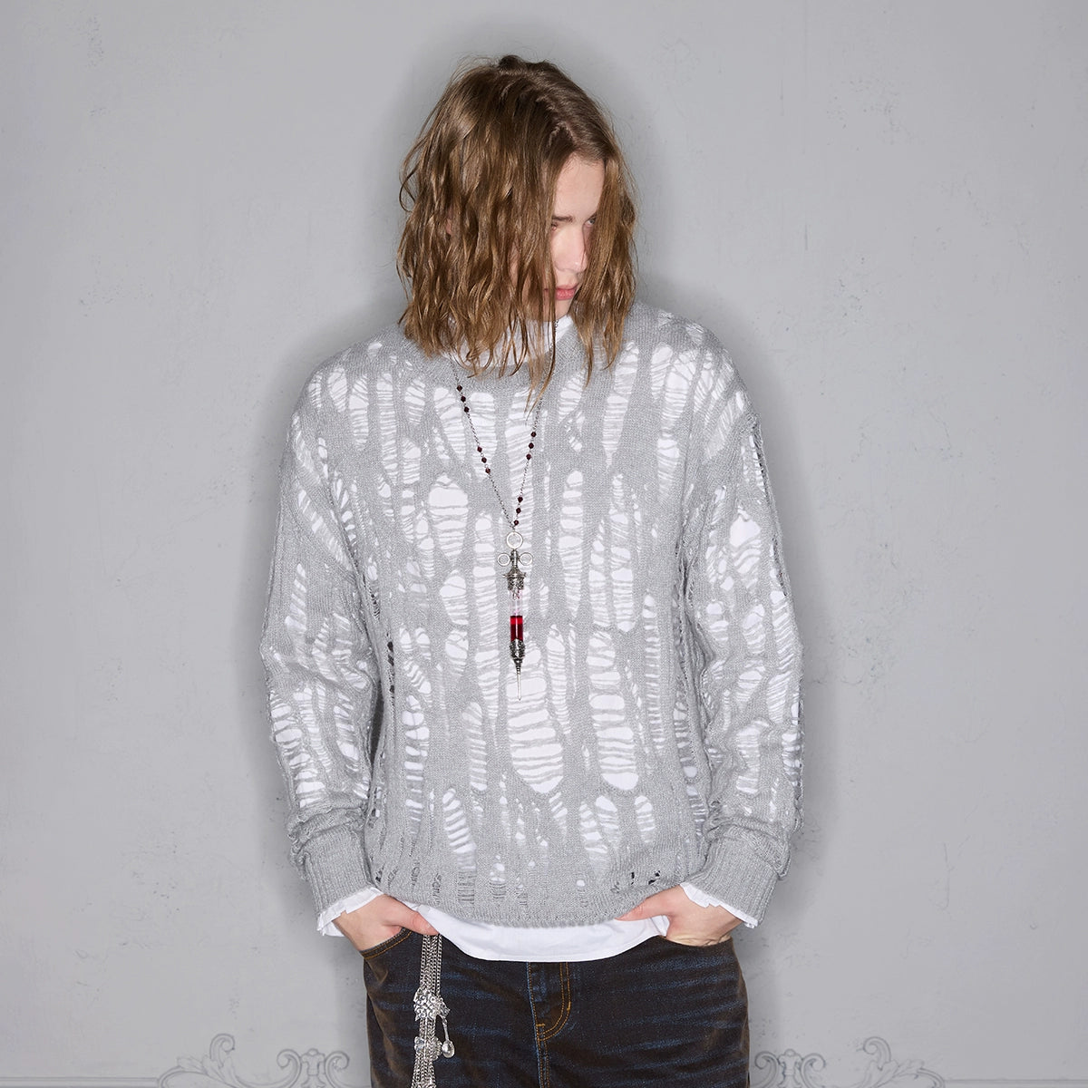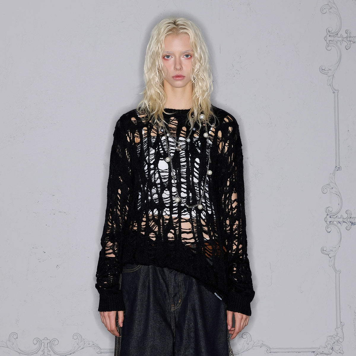 Lightweight Spider Web Hollow Pullover Knit Sweater WN18022