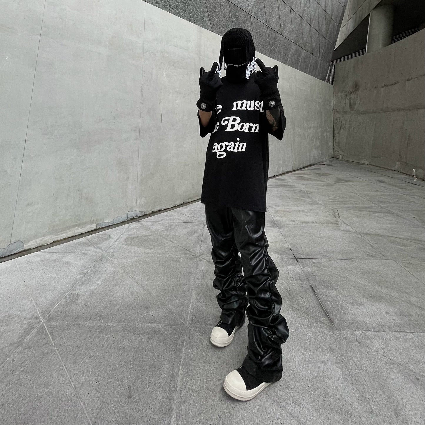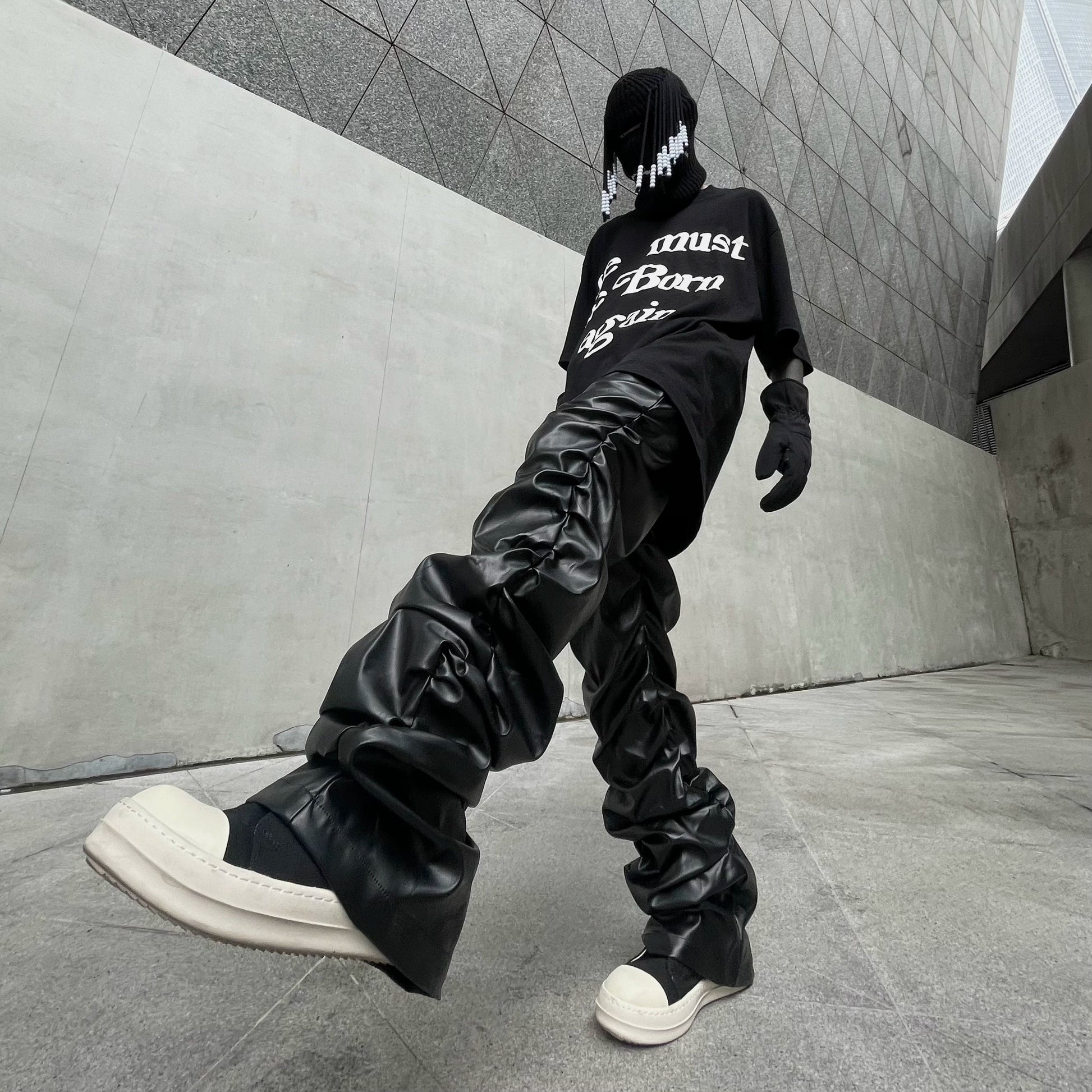 Wrinkle Stacked Glossy PU Leather Wide Leg Pants WN18123