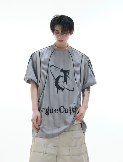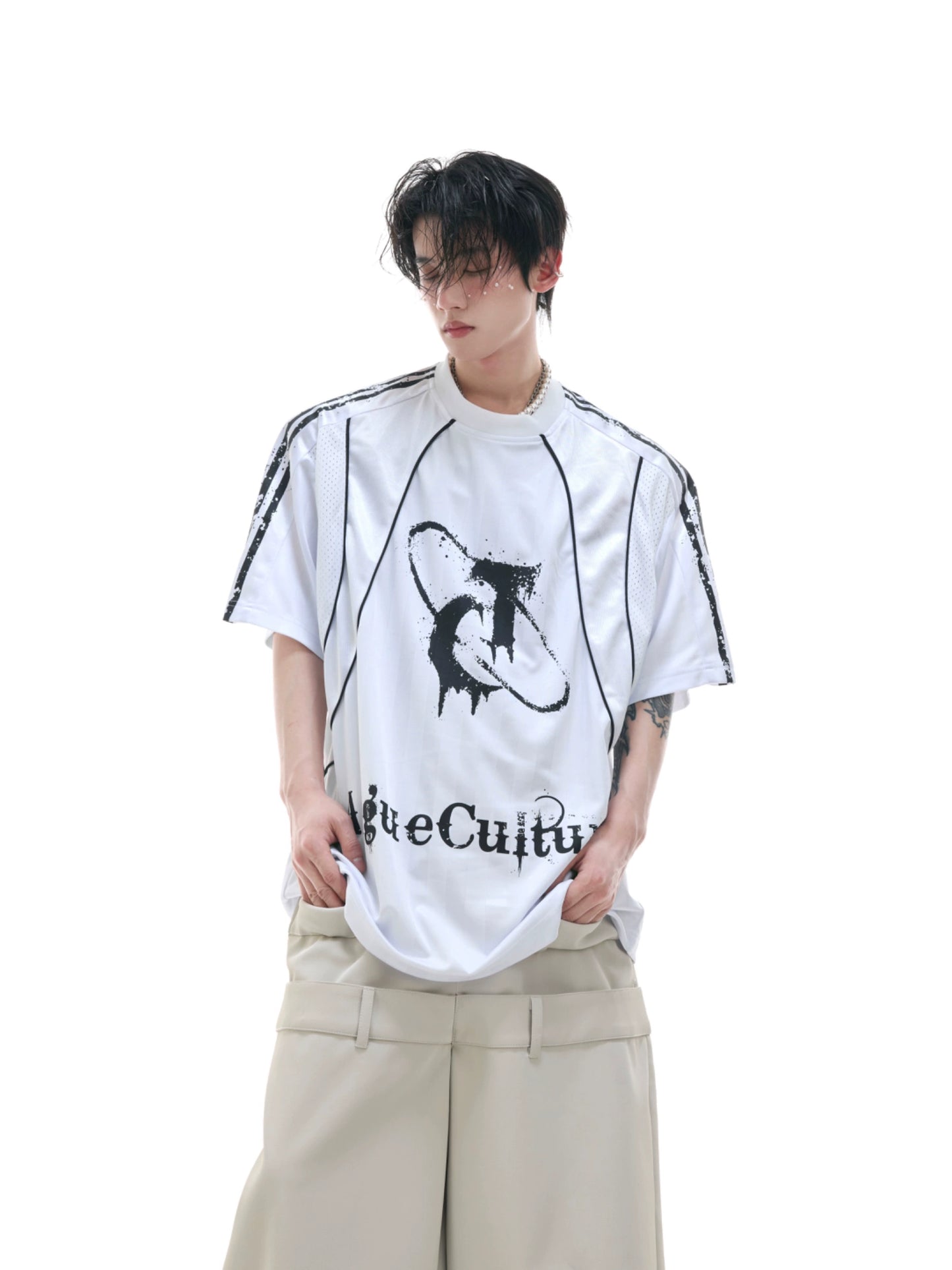 Patchwork Washed Graphic Letter Print Short Sleeve T-Shirt WN18398