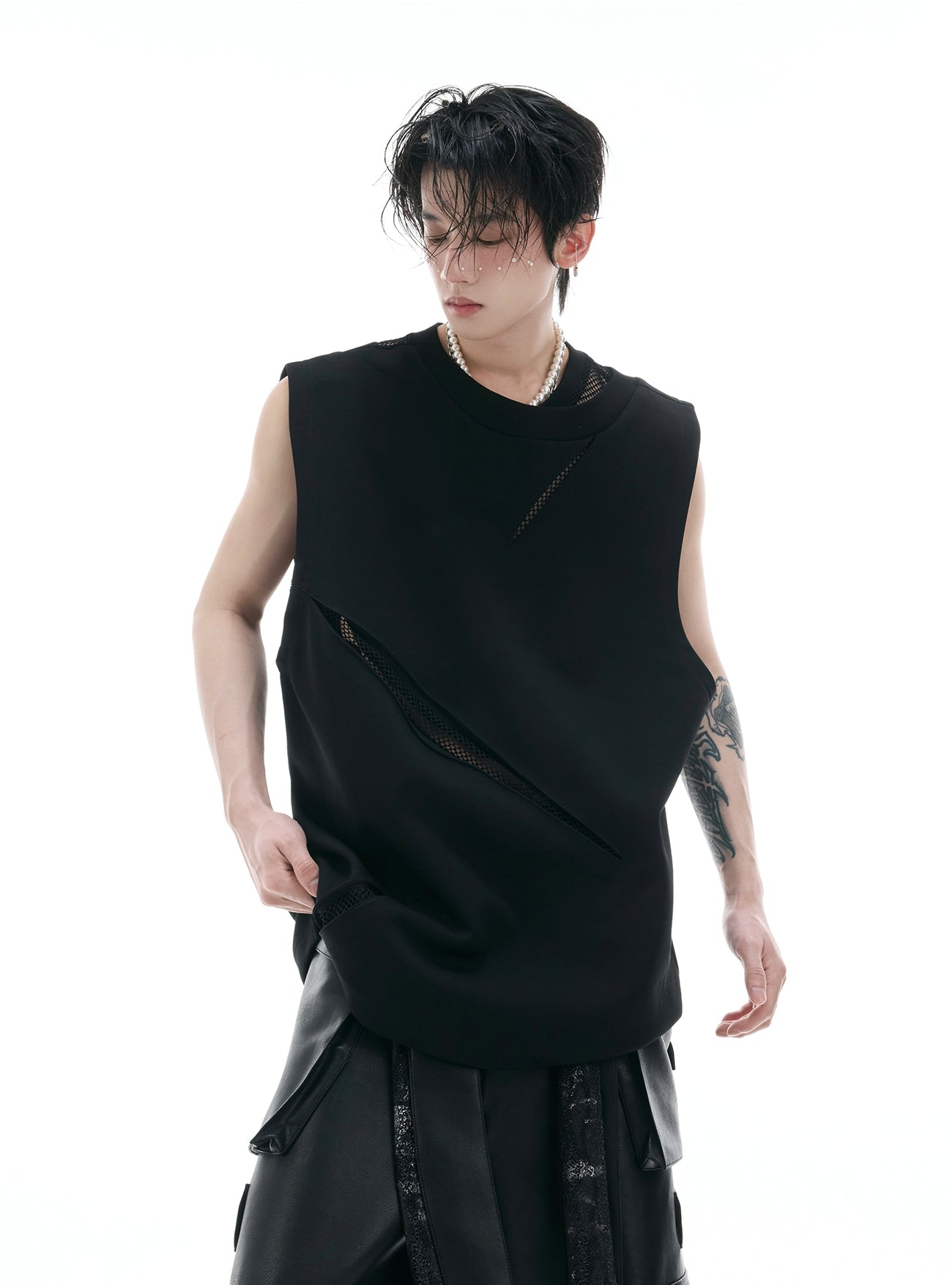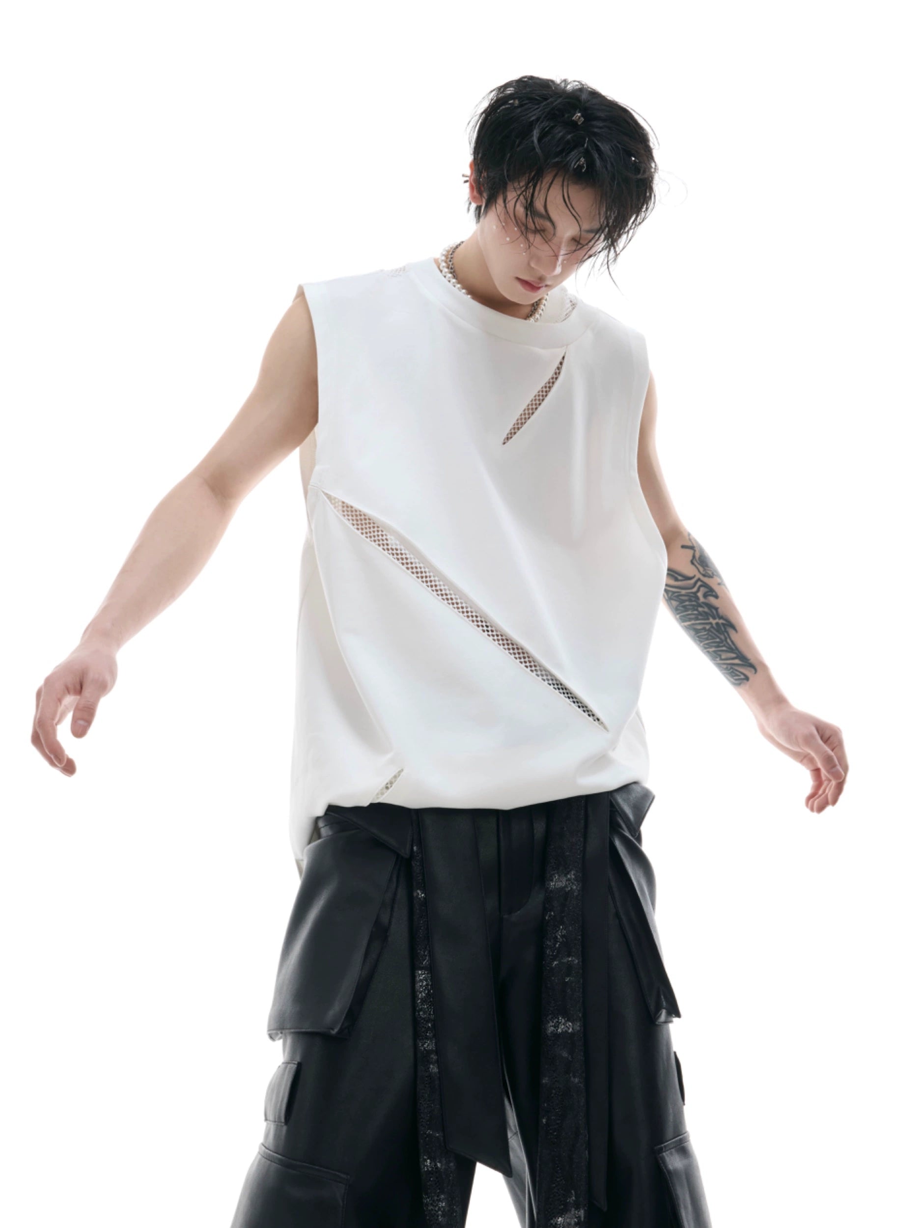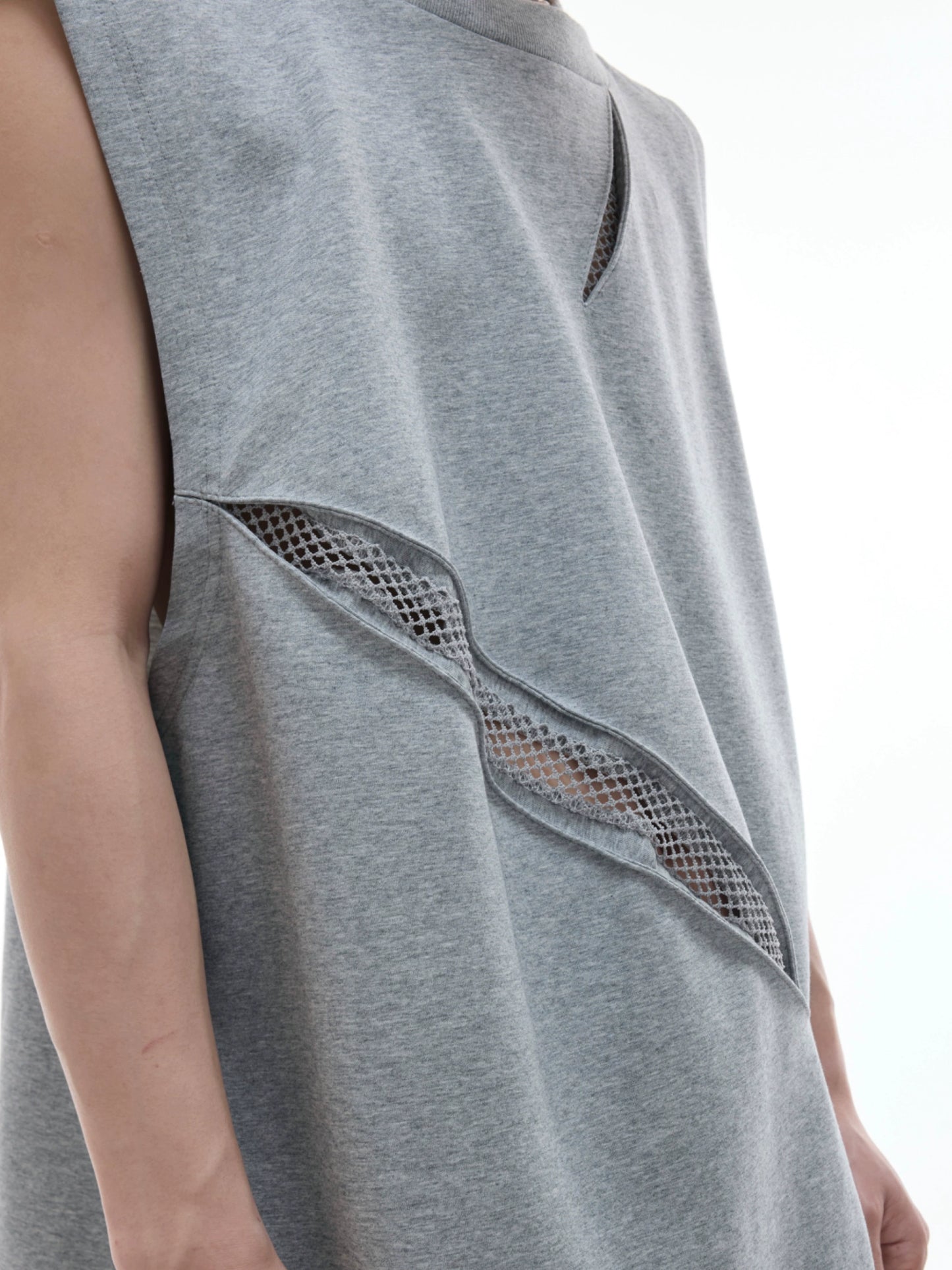 Patch Embroidery Mesh Sleeveless T-Shirt WN18403