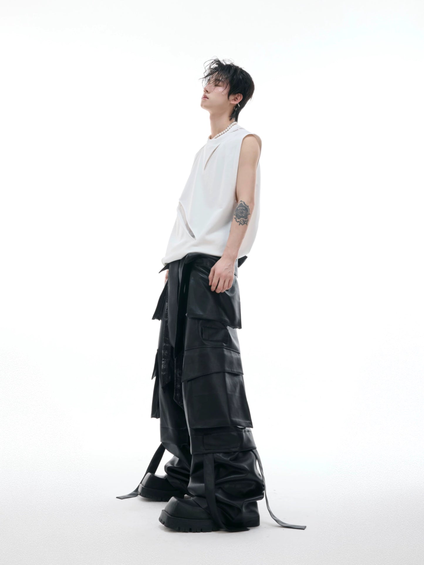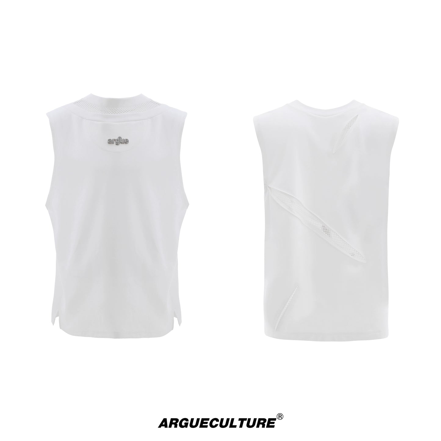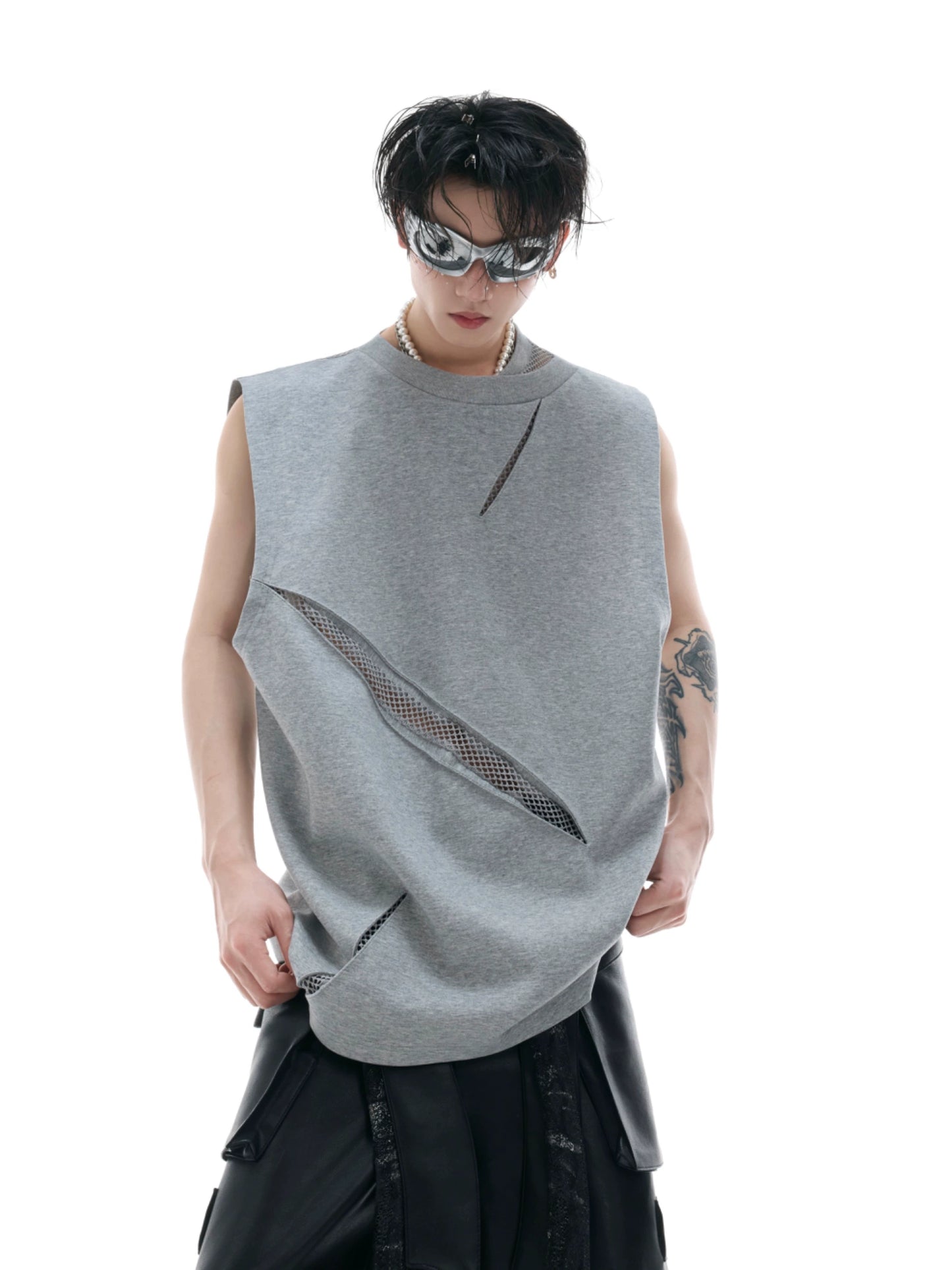 Patch Embroidery Mesh Sleeveless T-Shirt WN18403