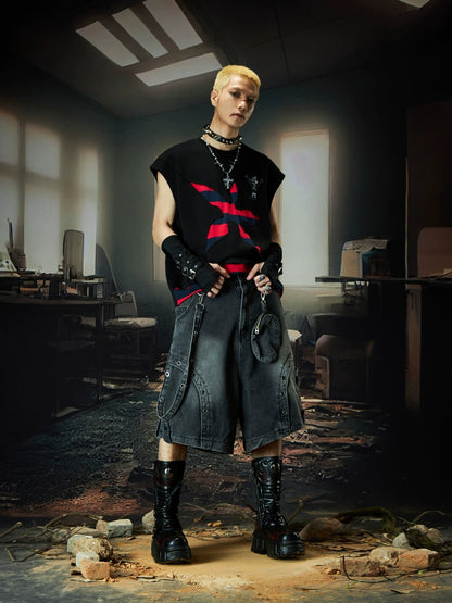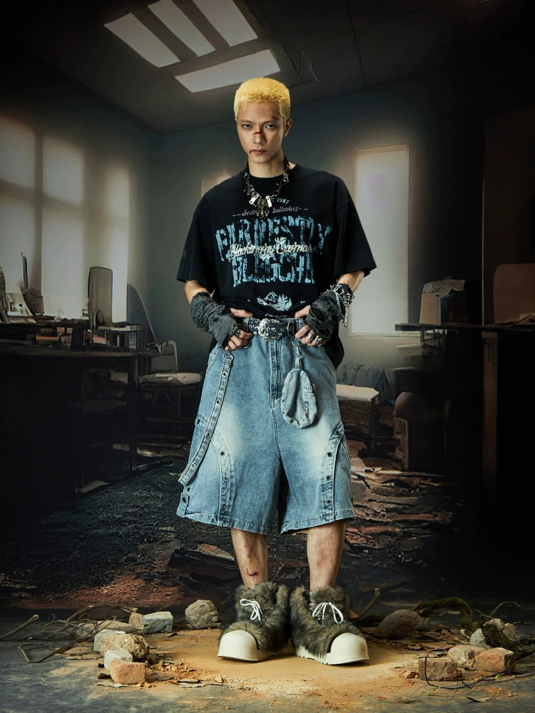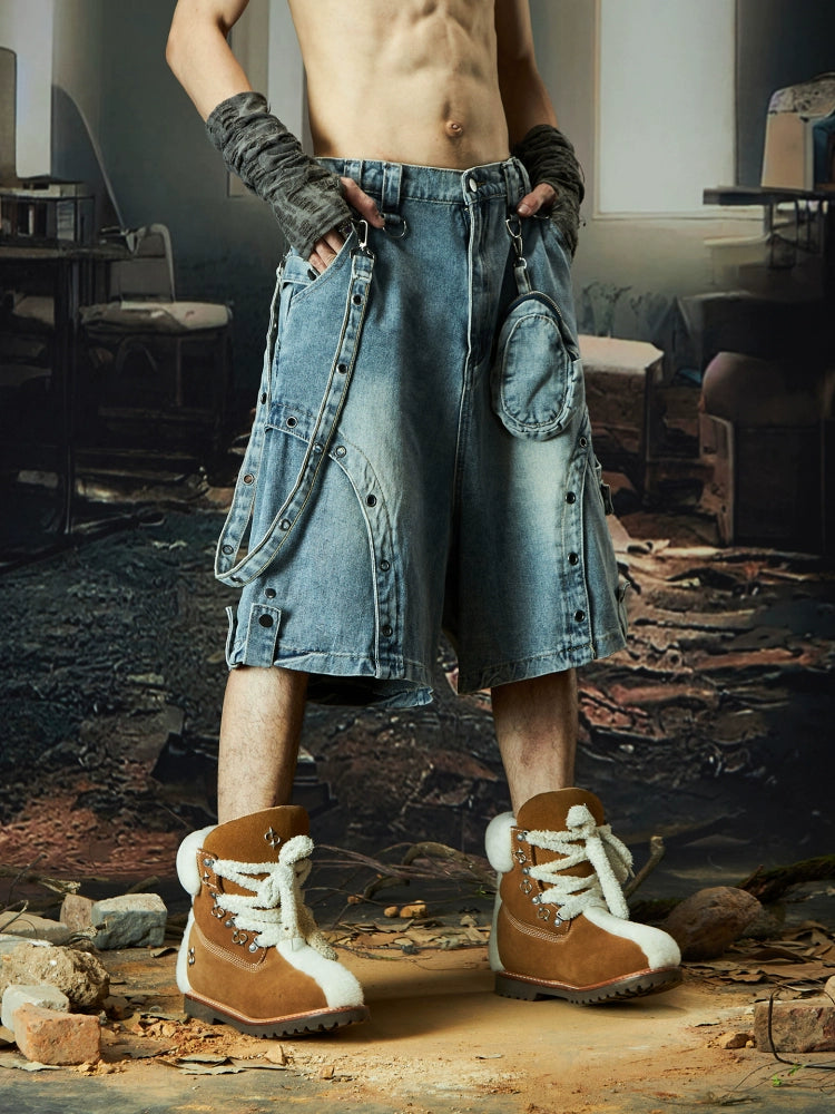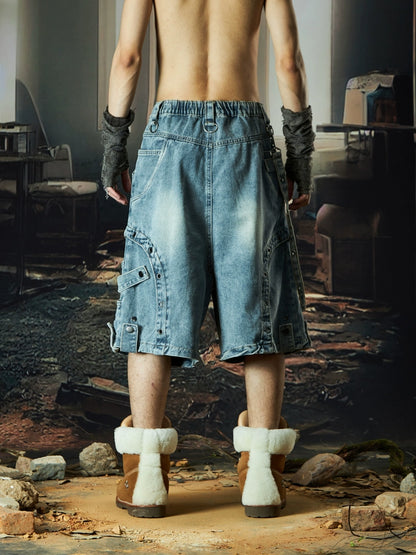 Deconstructed Patchwork Strap Denim Half Pants WN18505