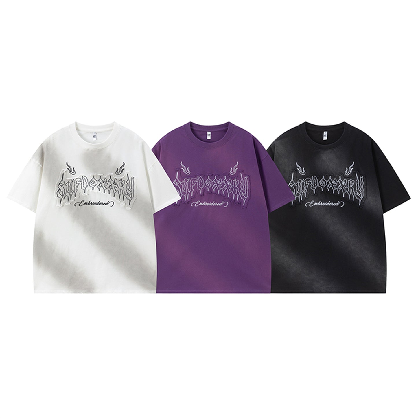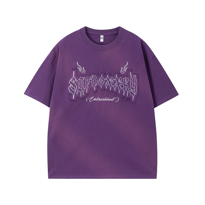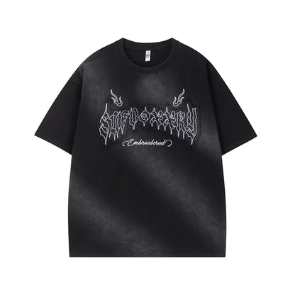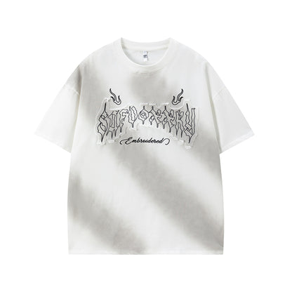 Heavyweight Letter Patch Embroidery Short Sleeve T-Shirt WN18544