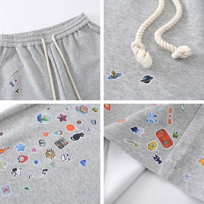 Cartoon Print Sporty Wide Leg Swaetpants WN18545