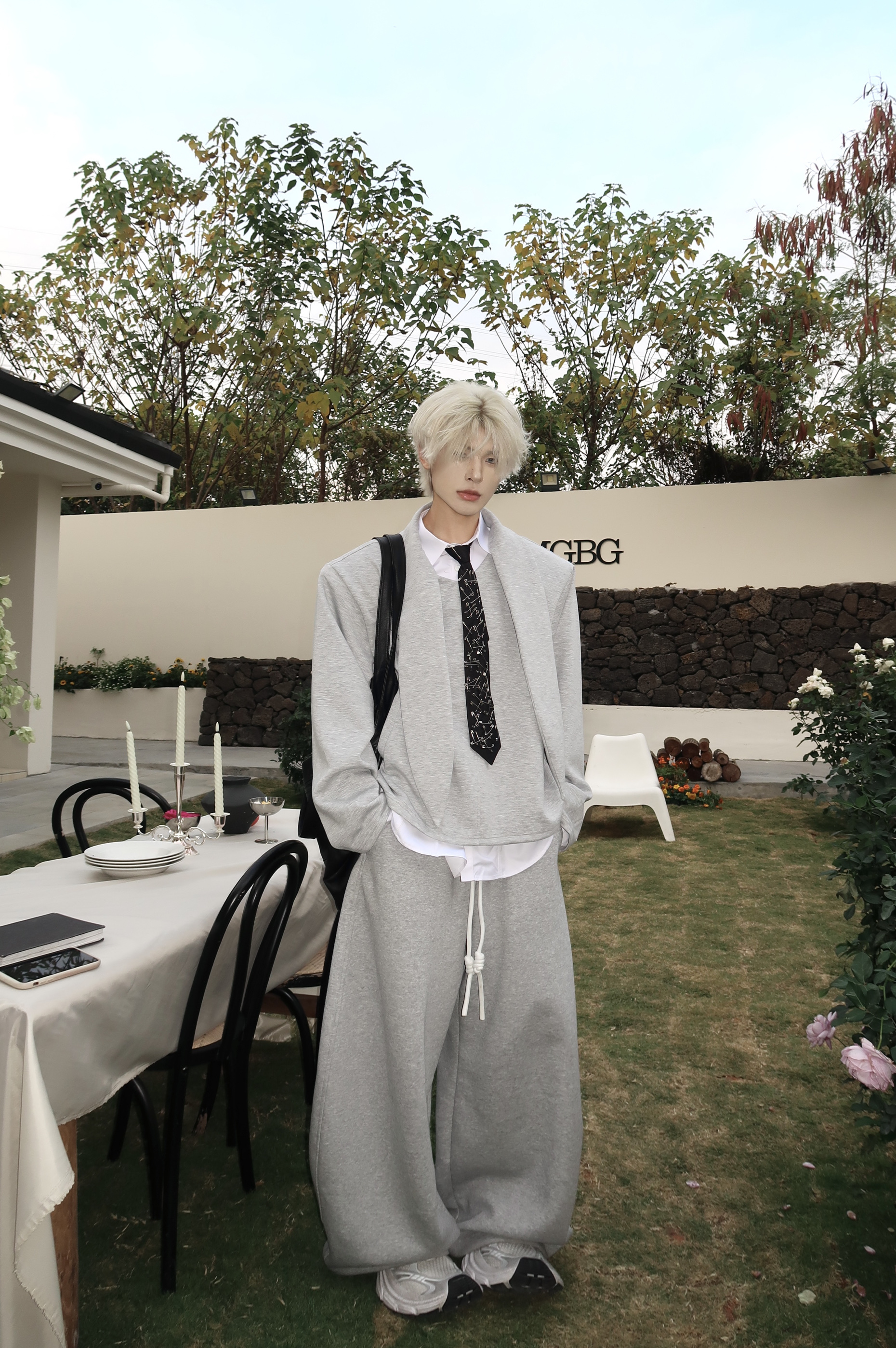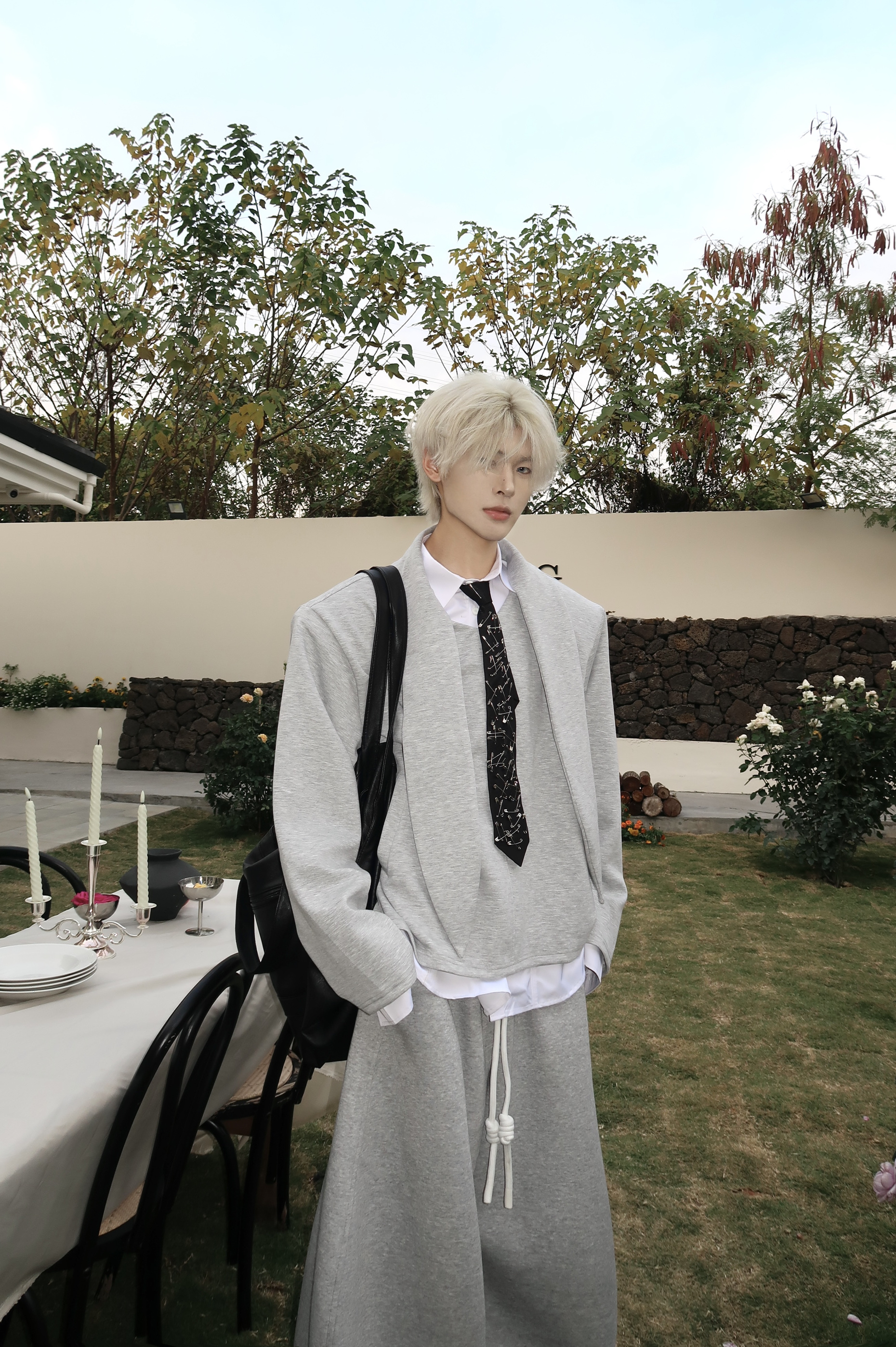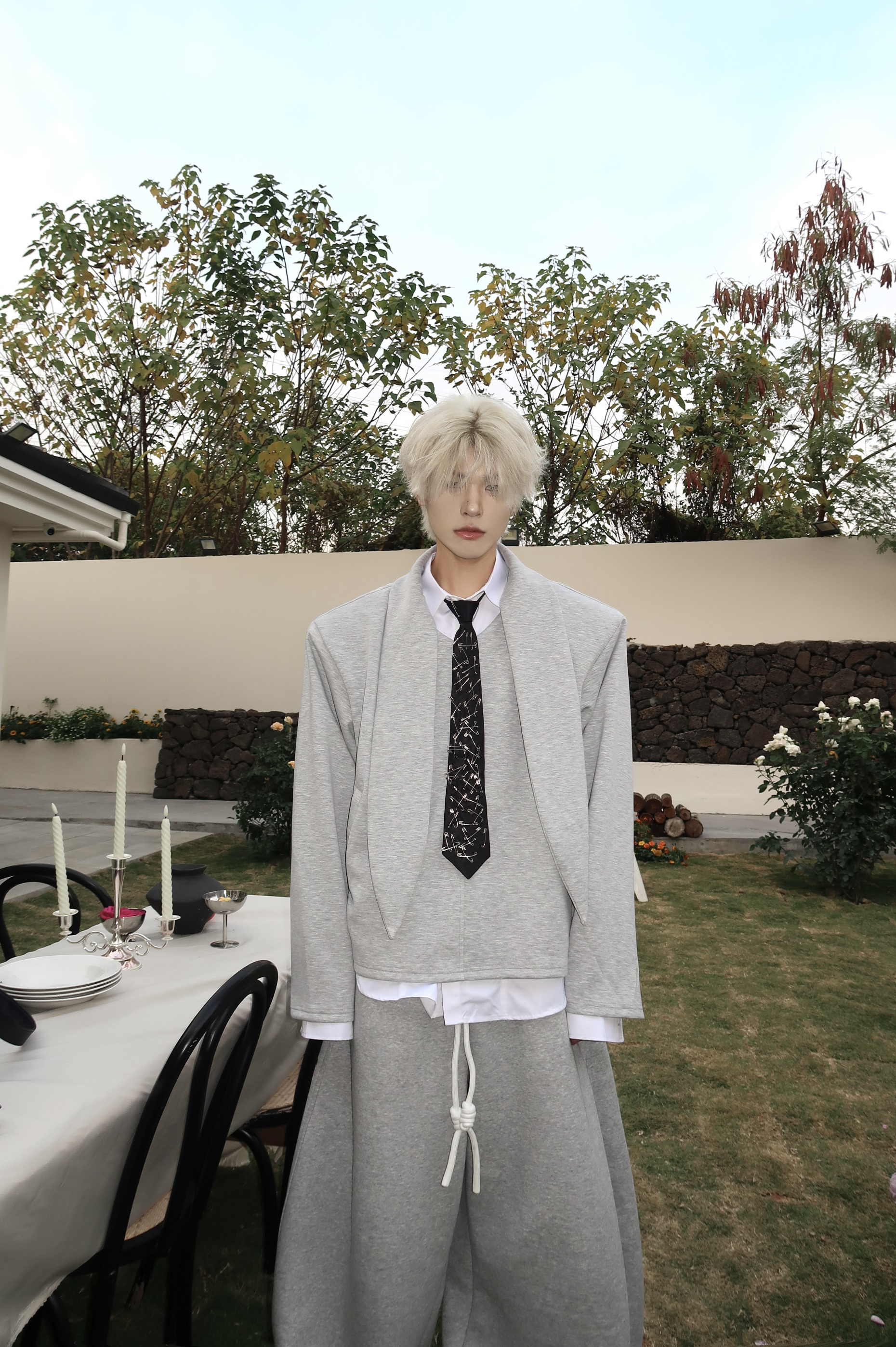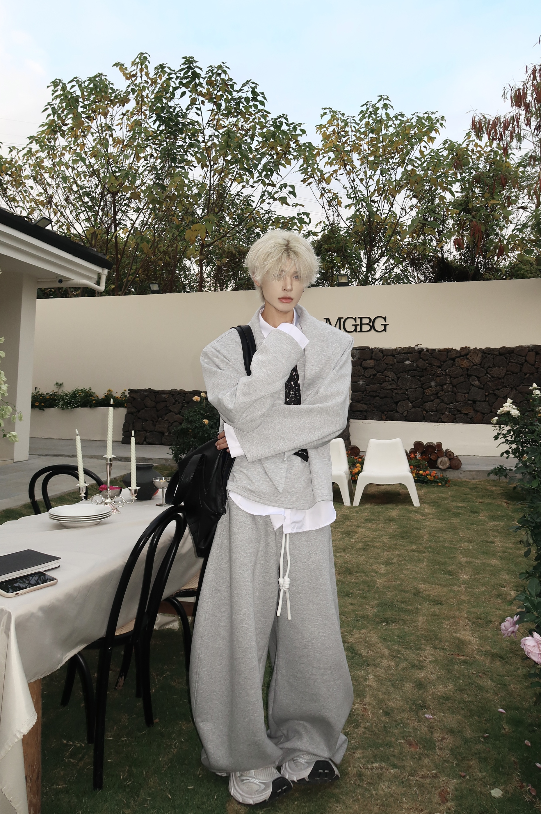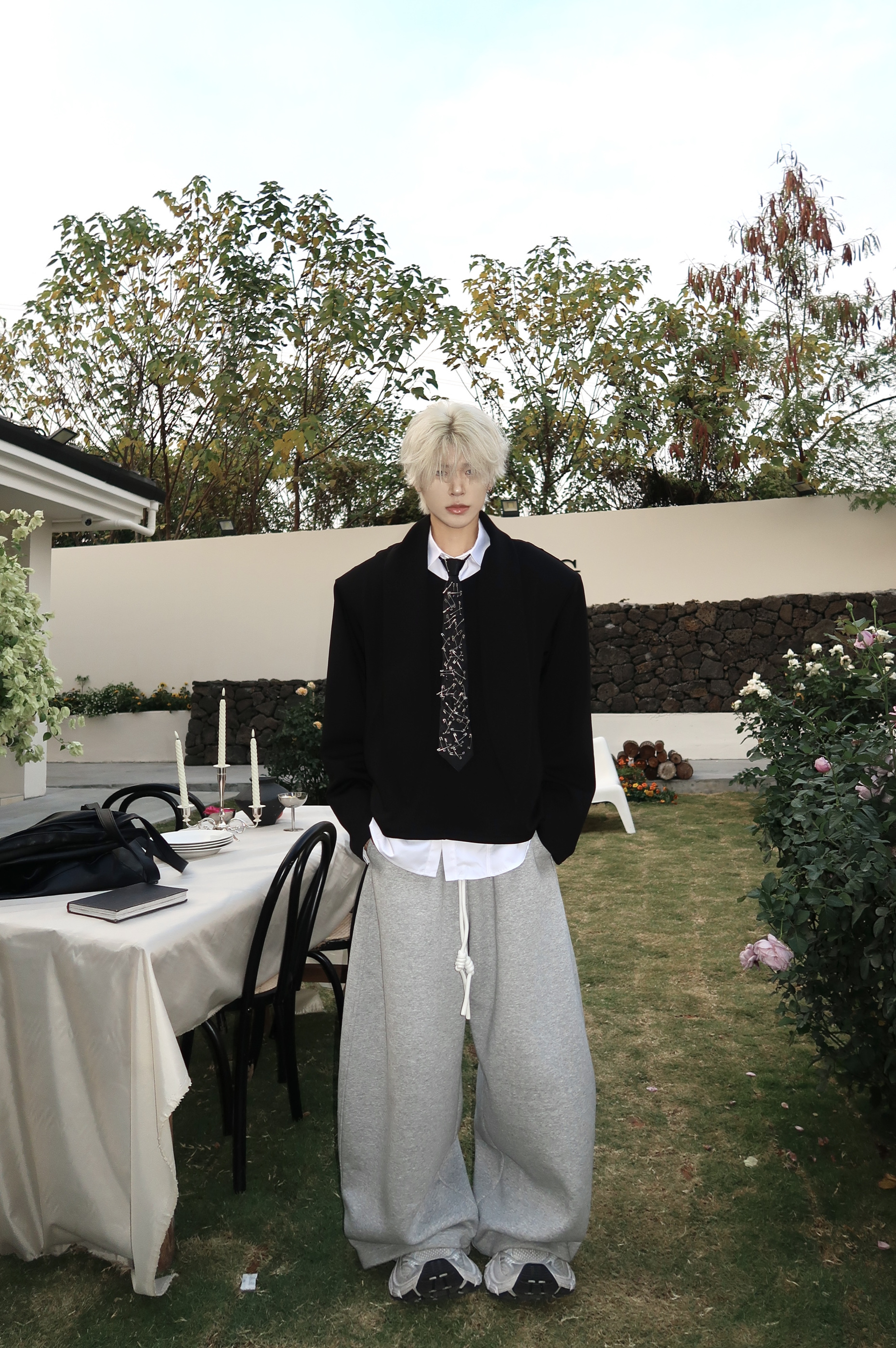 Double Collar Tie Shoulder-Pad Pullover Sweatshirt WN19920