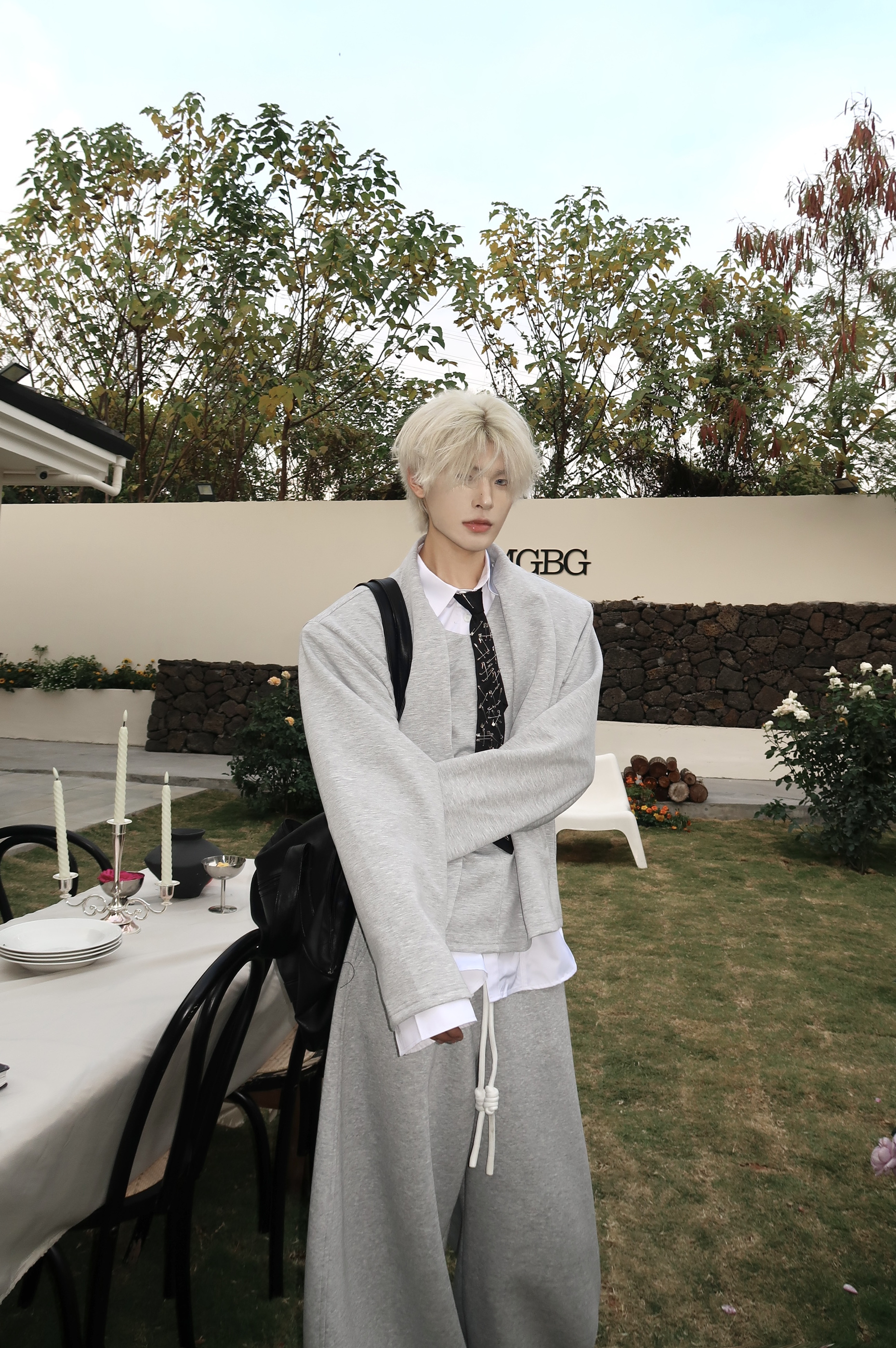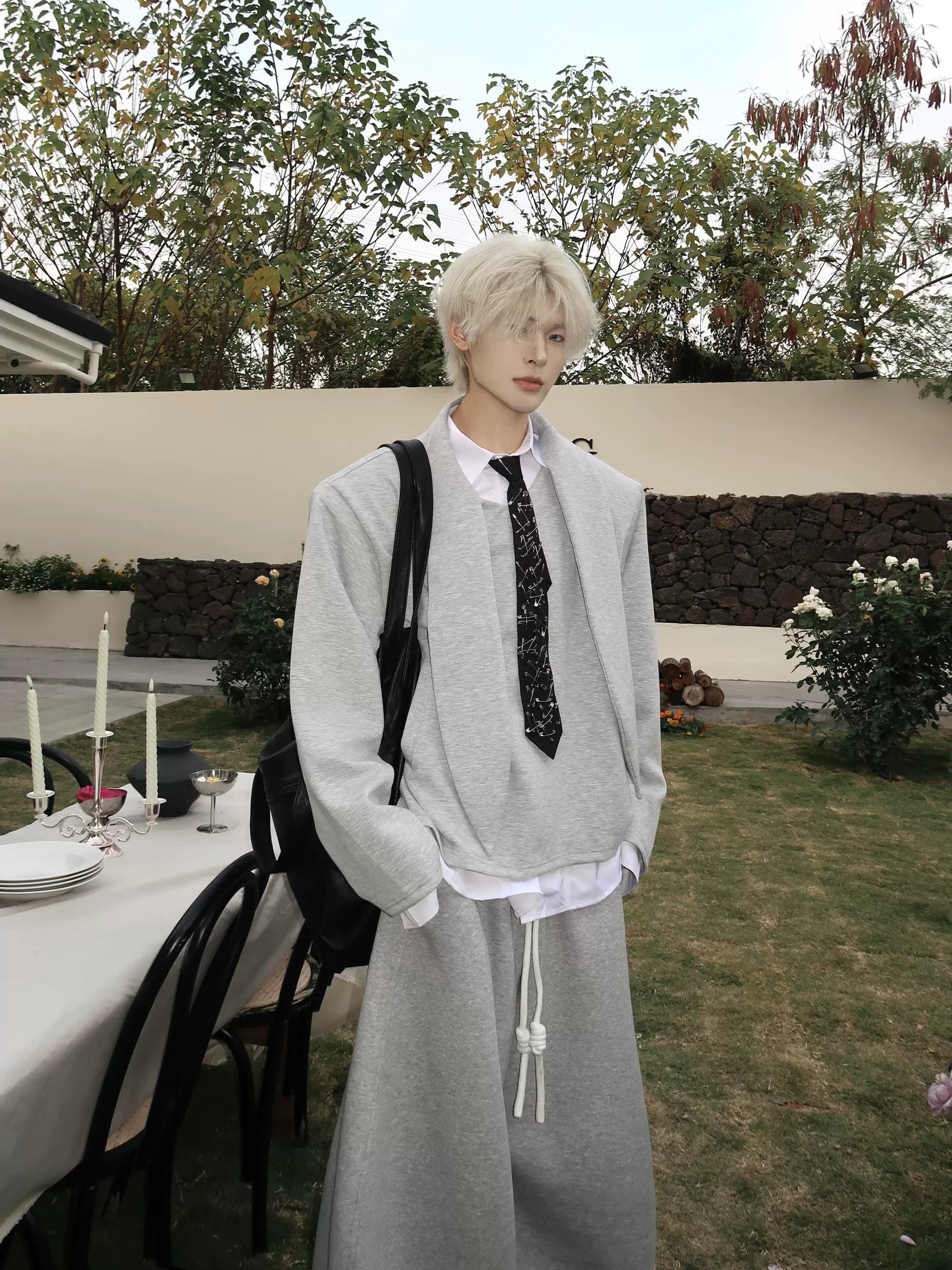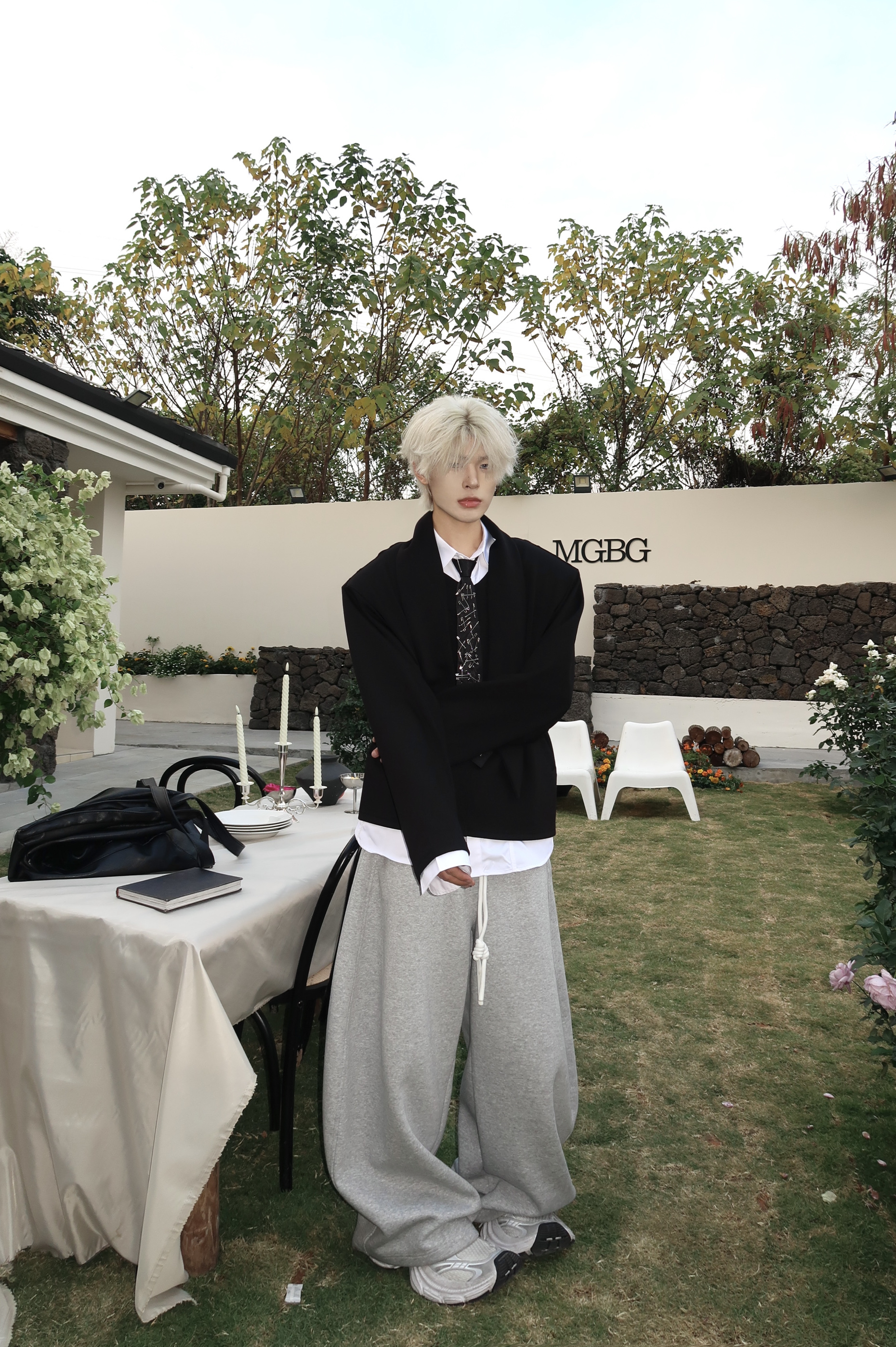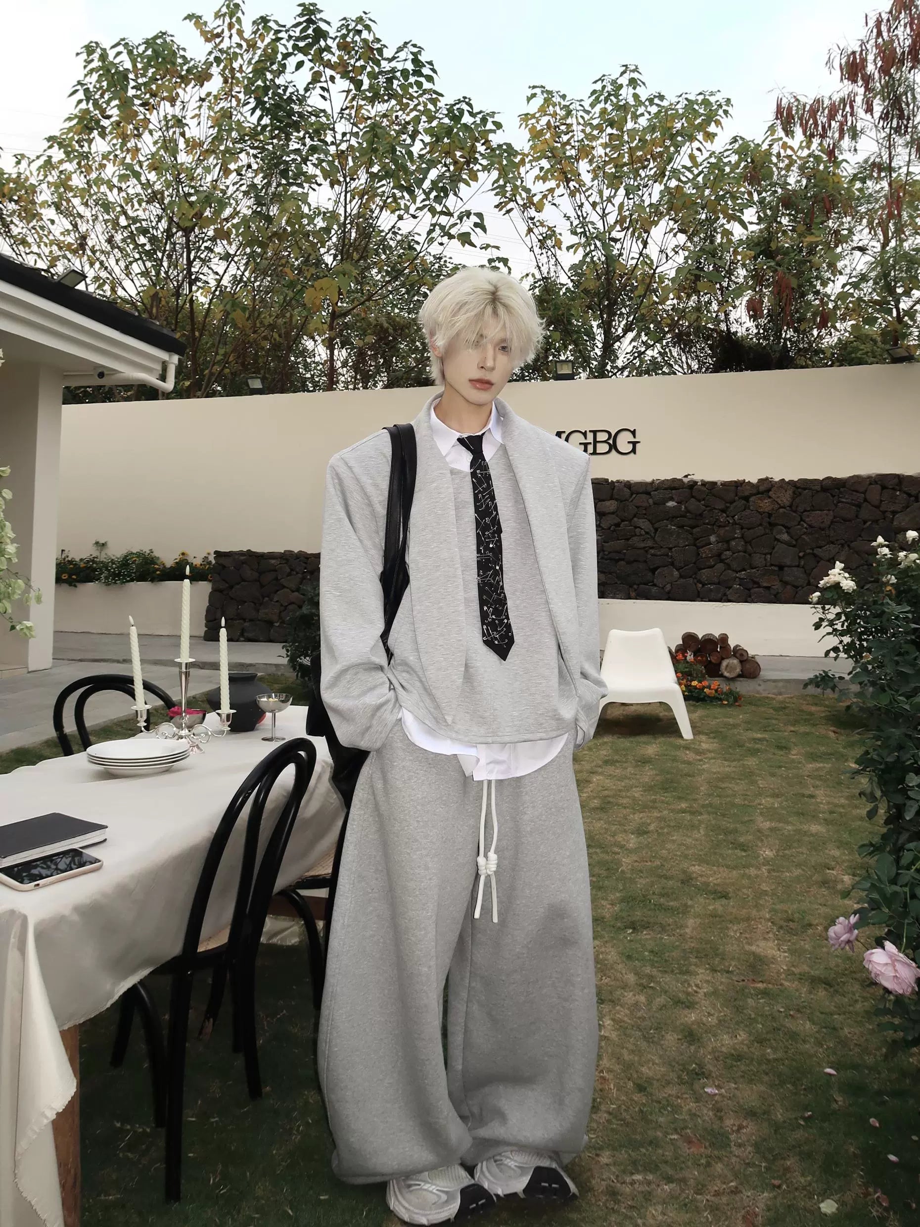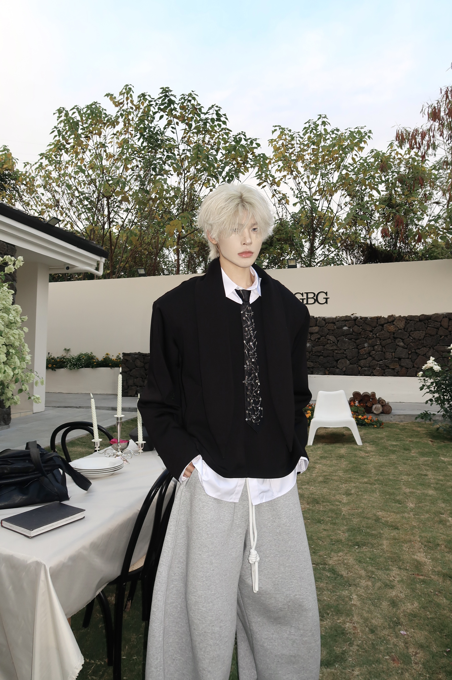 Double Collar Tie Shoulder-Pad Pullover Sweatshirt WN19920