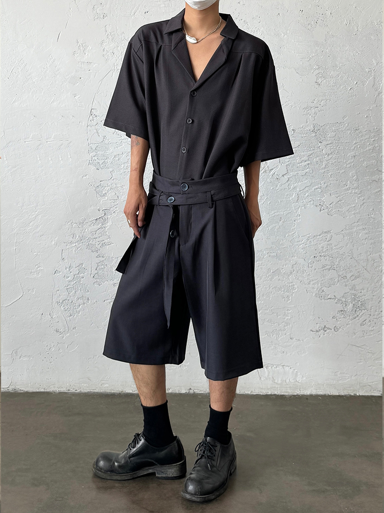 Cuban Collar Pleats Structured Short Sleeve Shirt WN19989