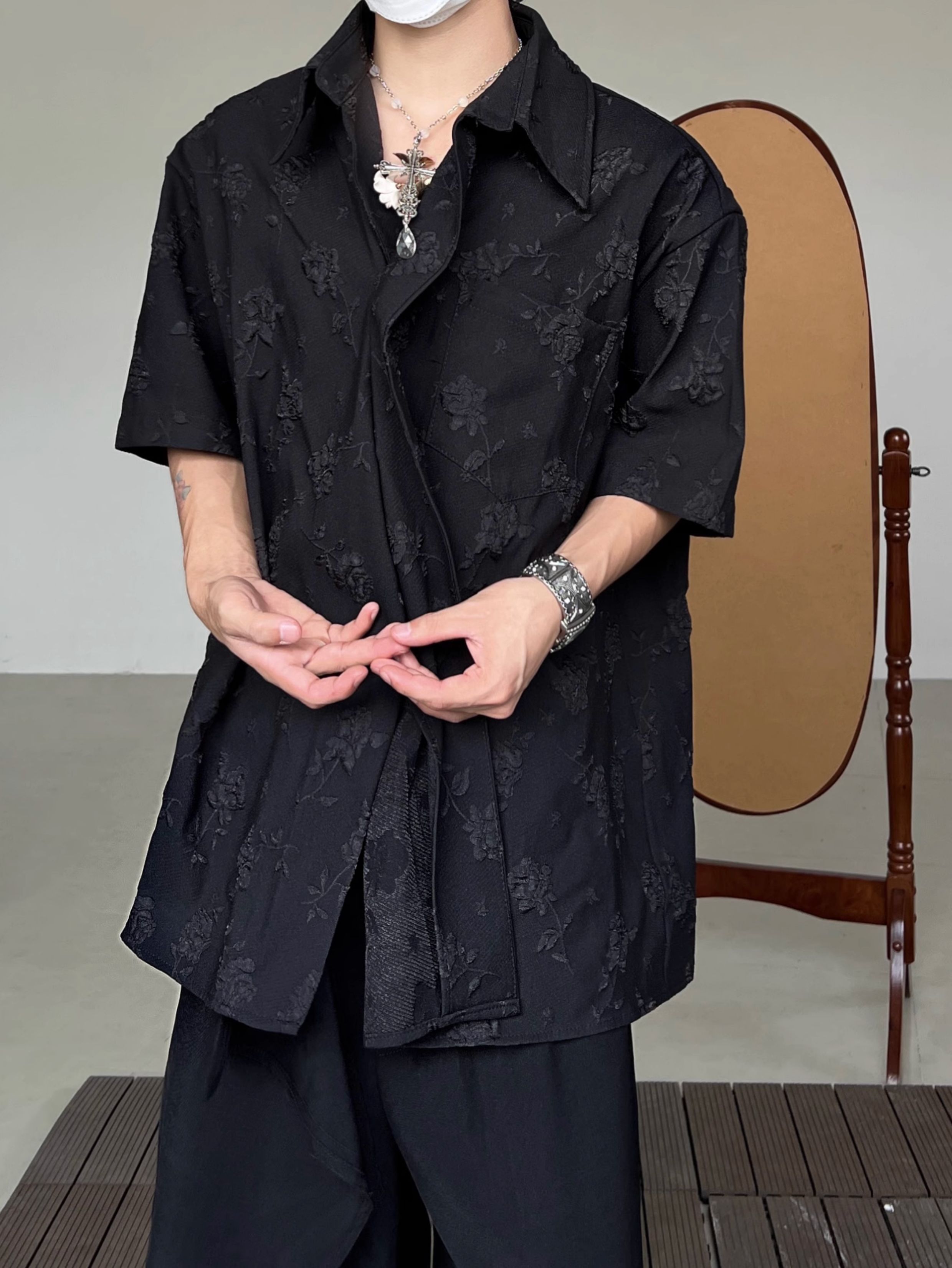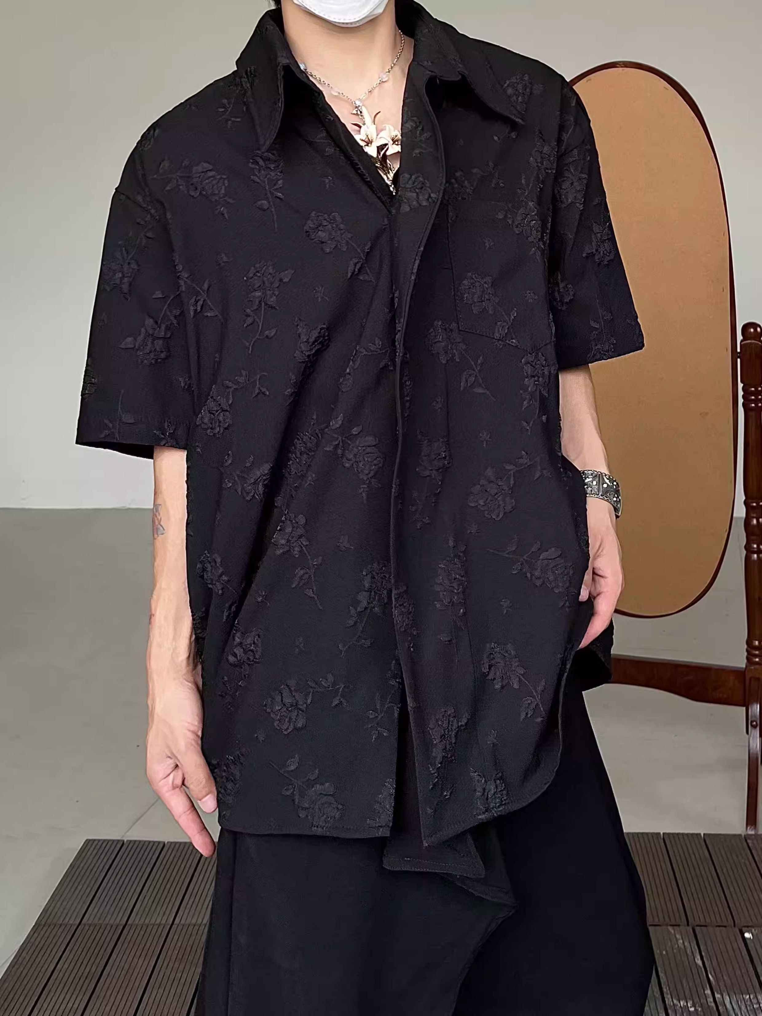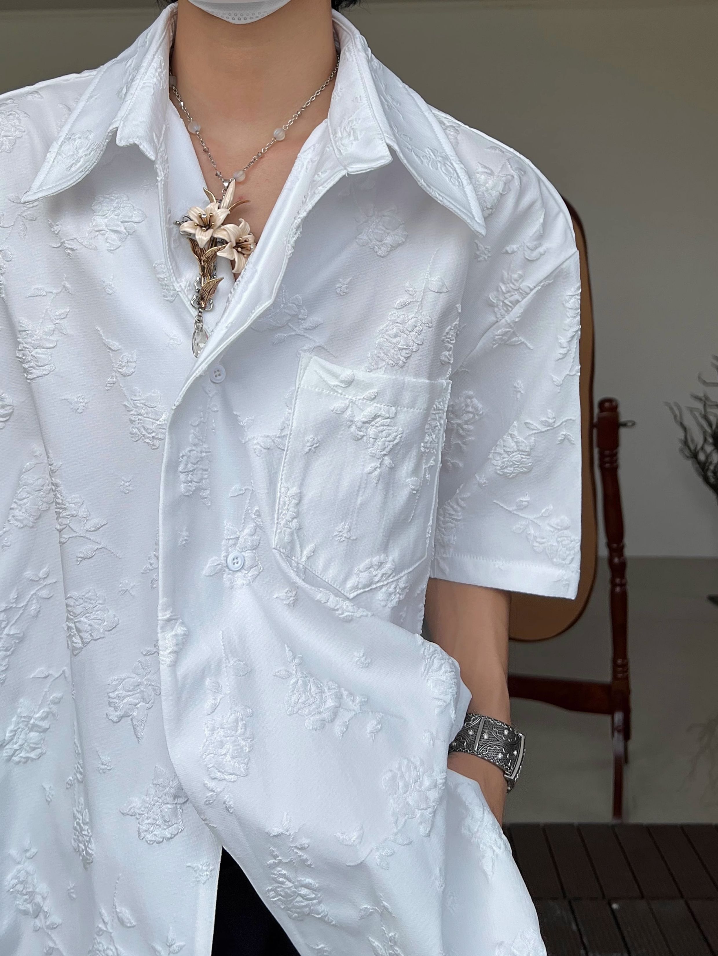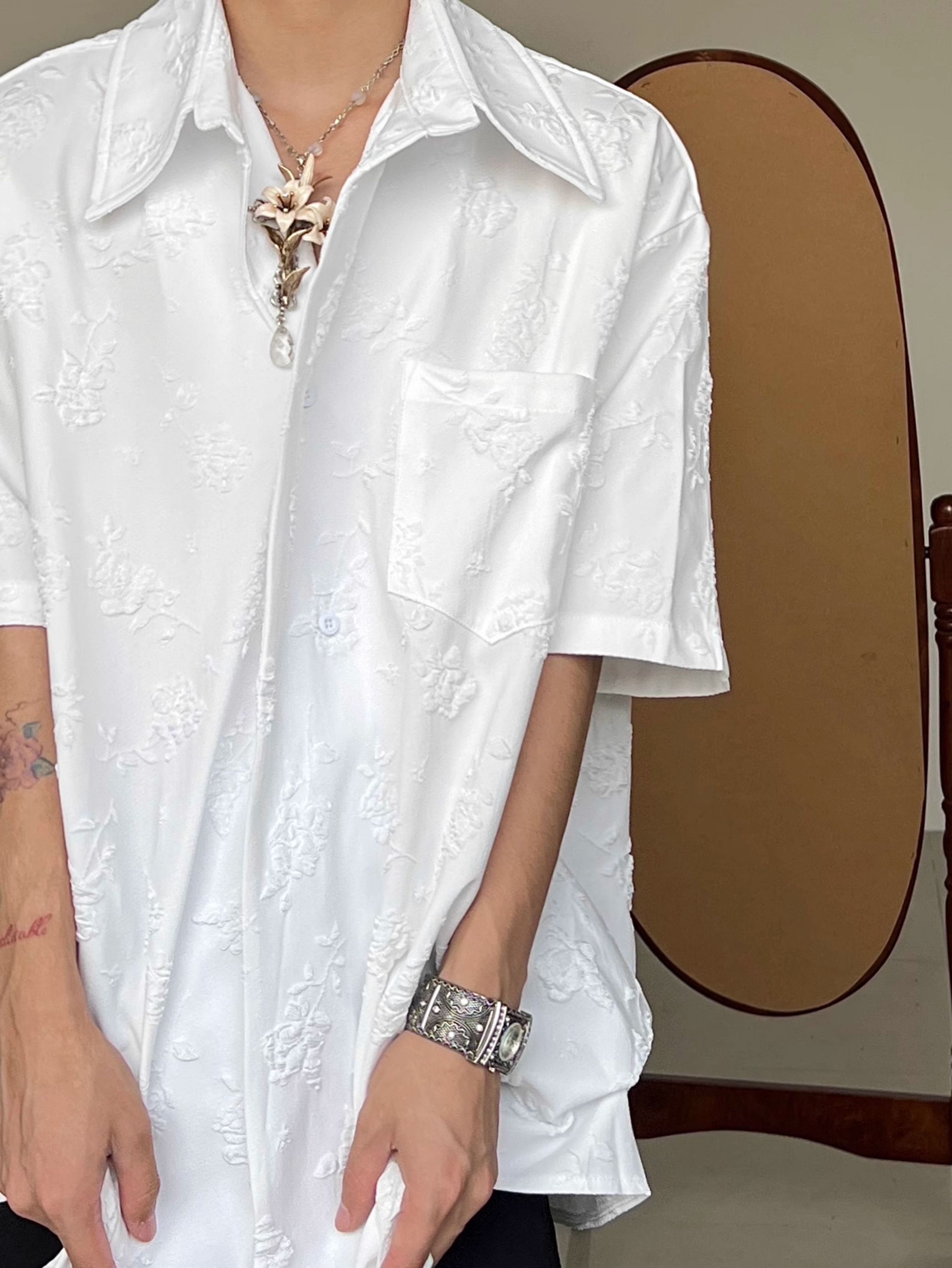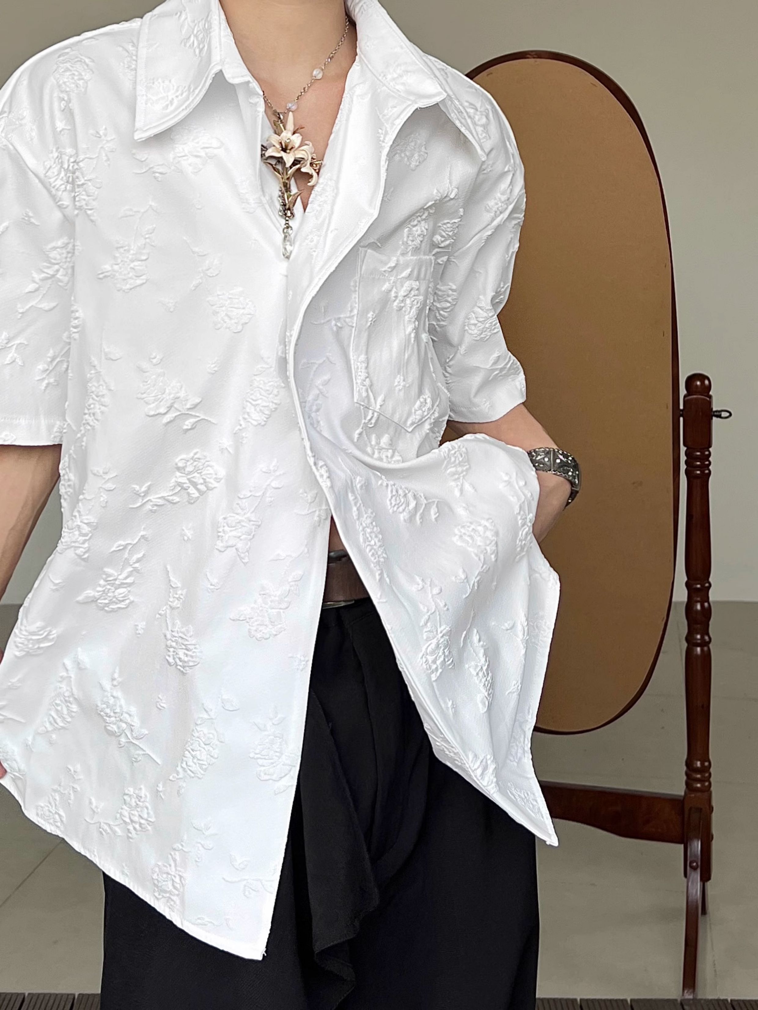 Embroidery Floral Two-Button Jacquard Short Sleeve Shirt WN20018