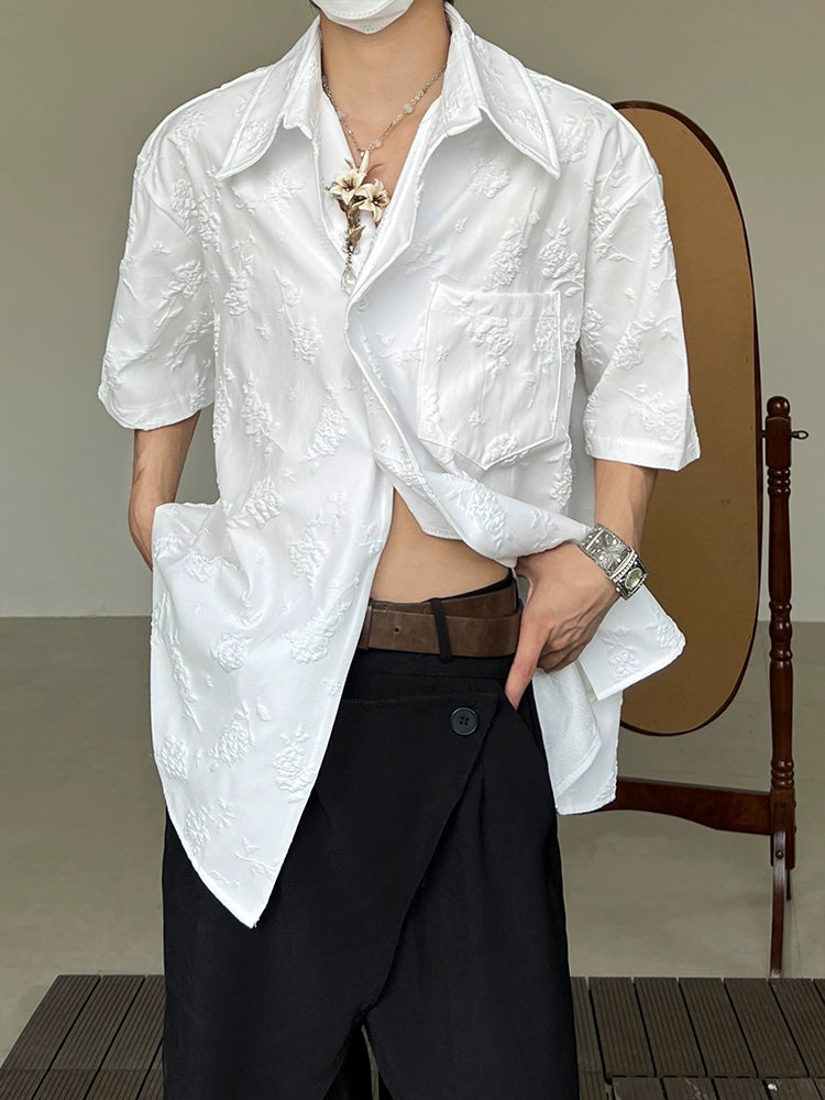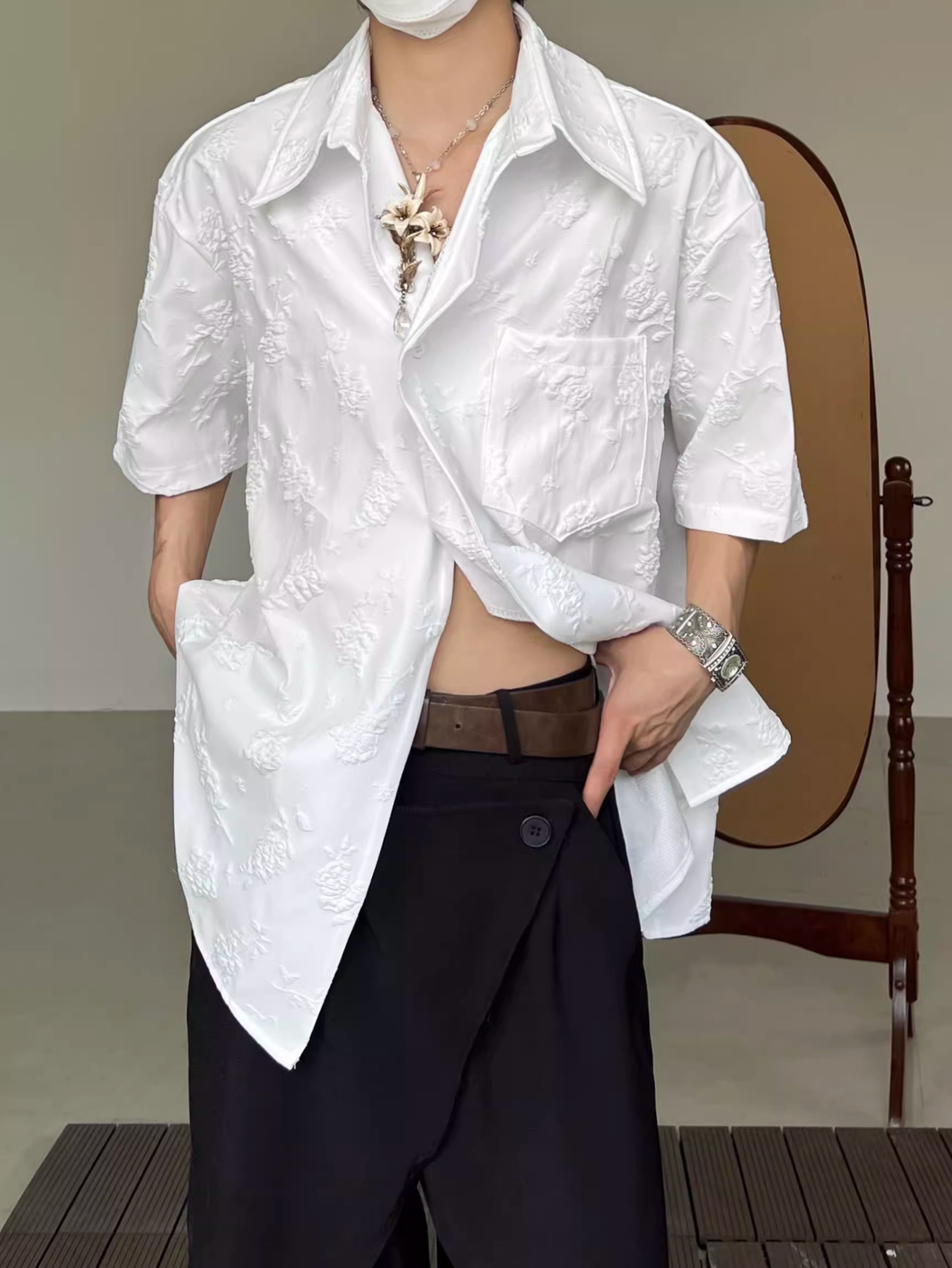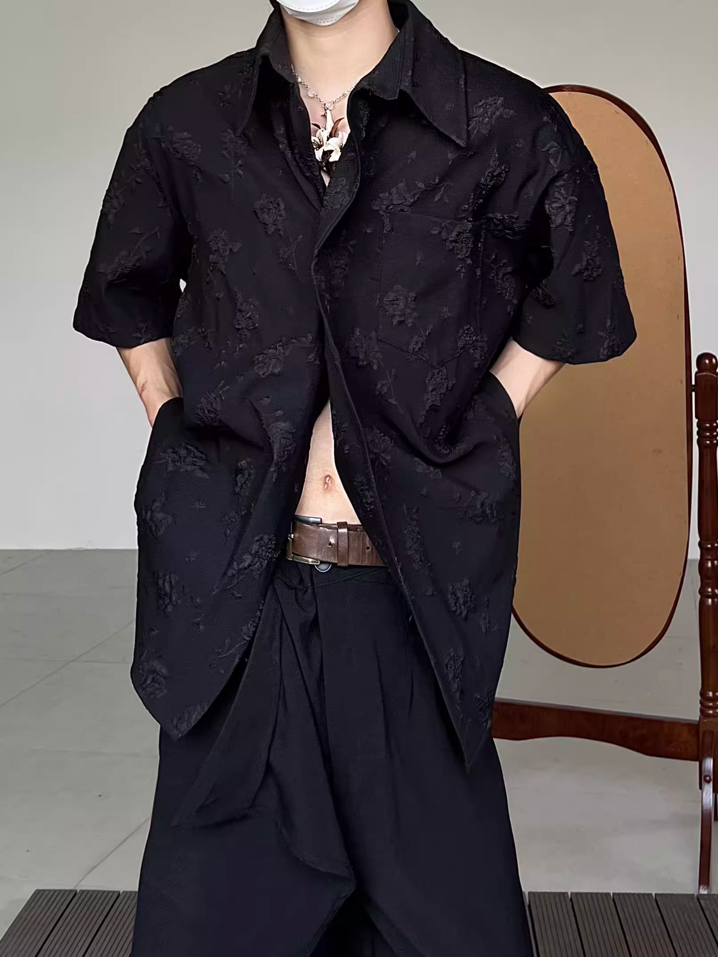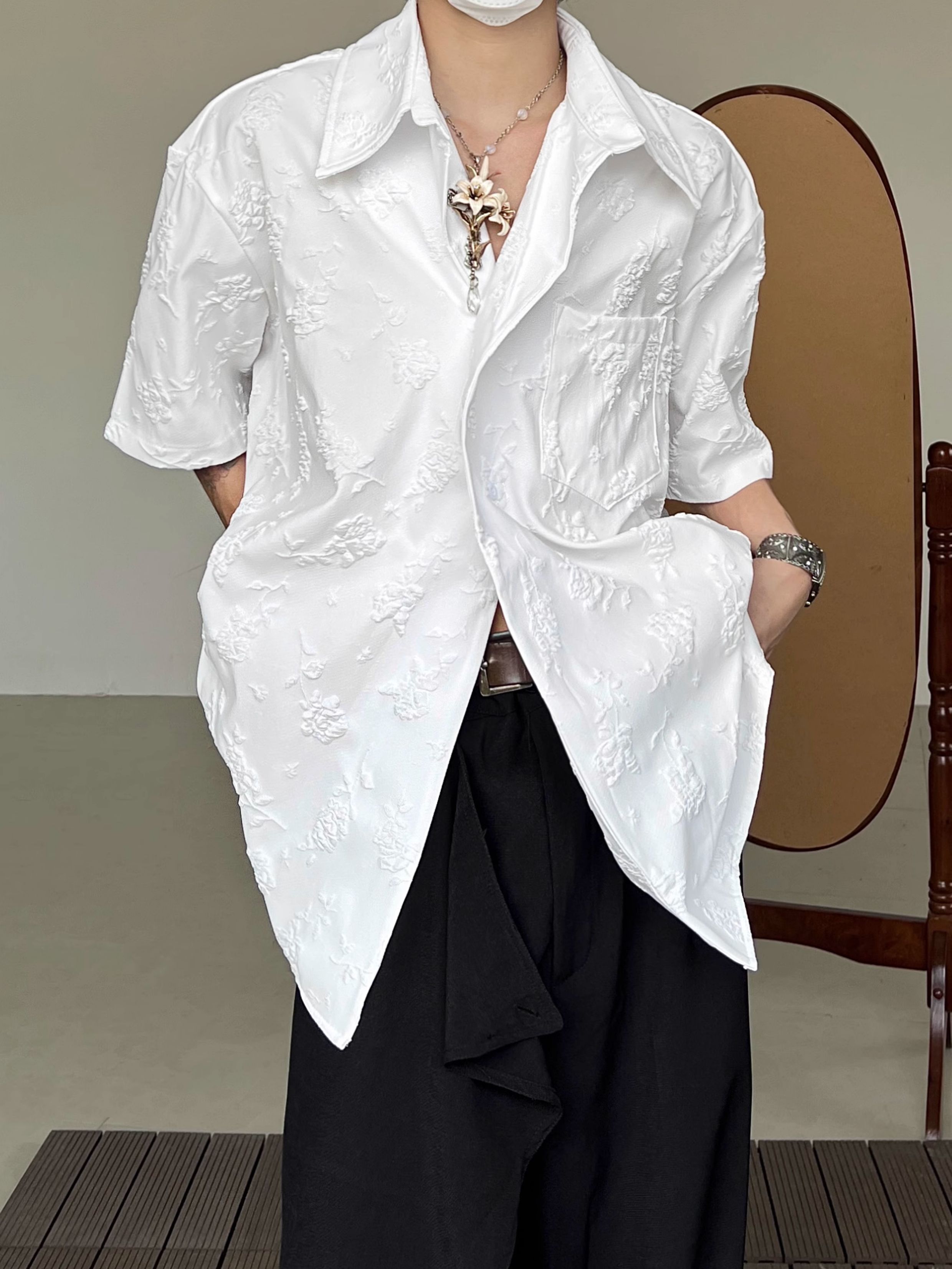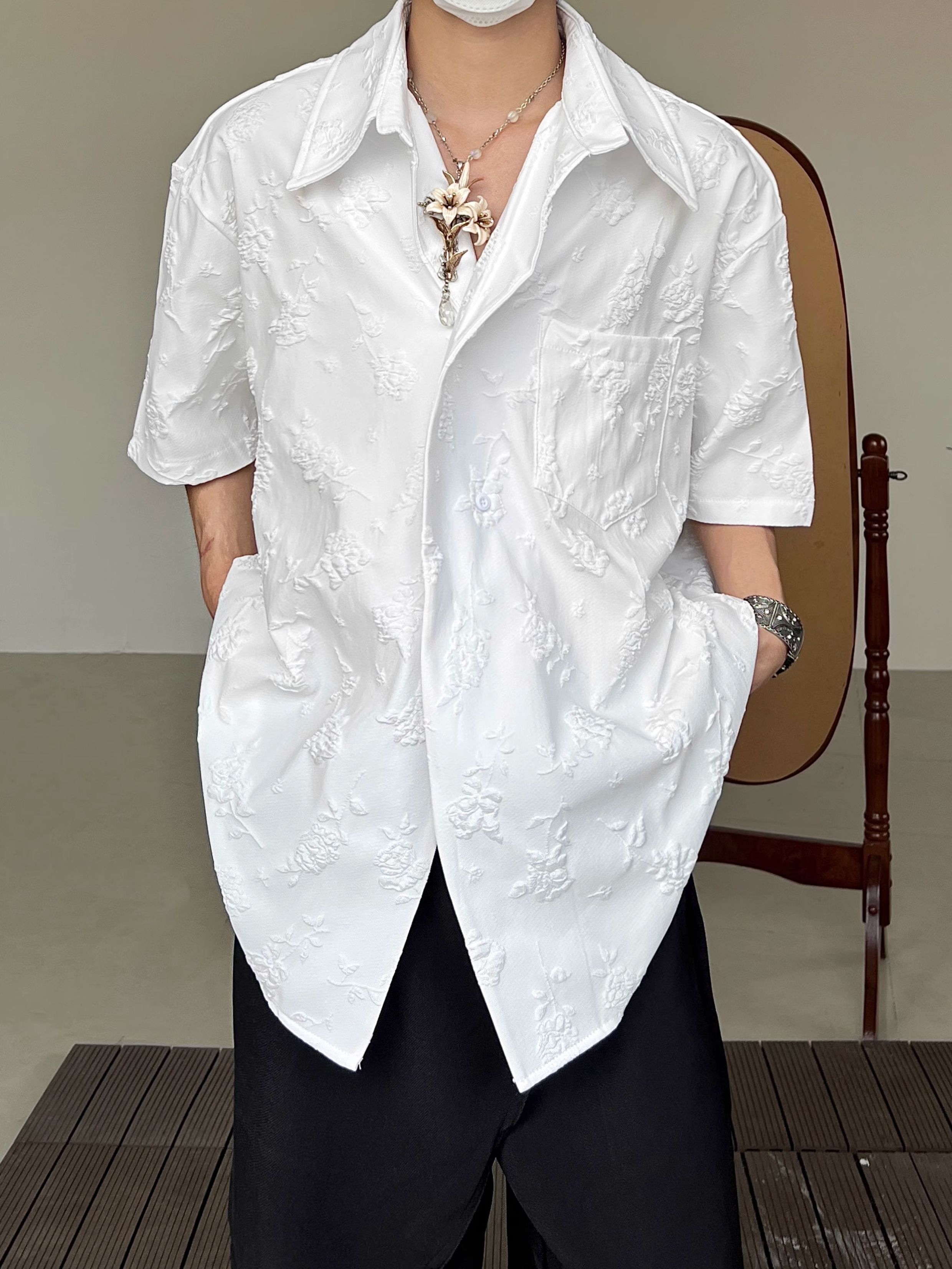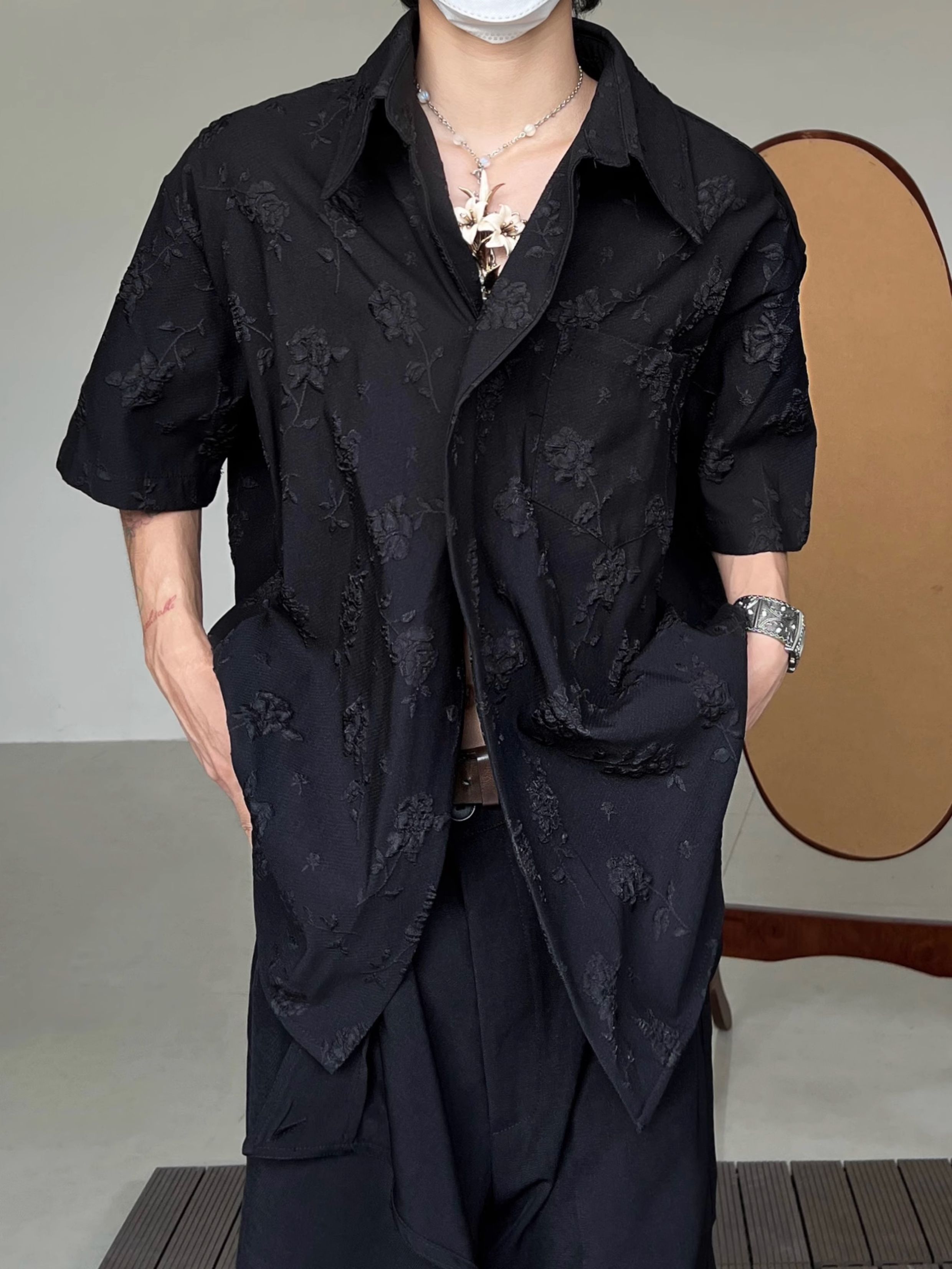 Embroidery Floral Two-Button Jacquard Short Sleeve Shirt WN20018